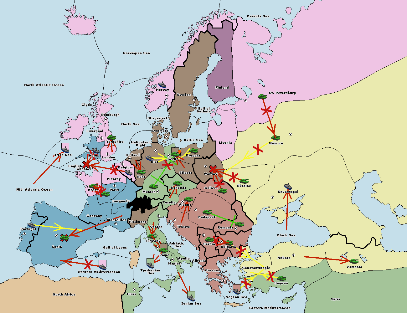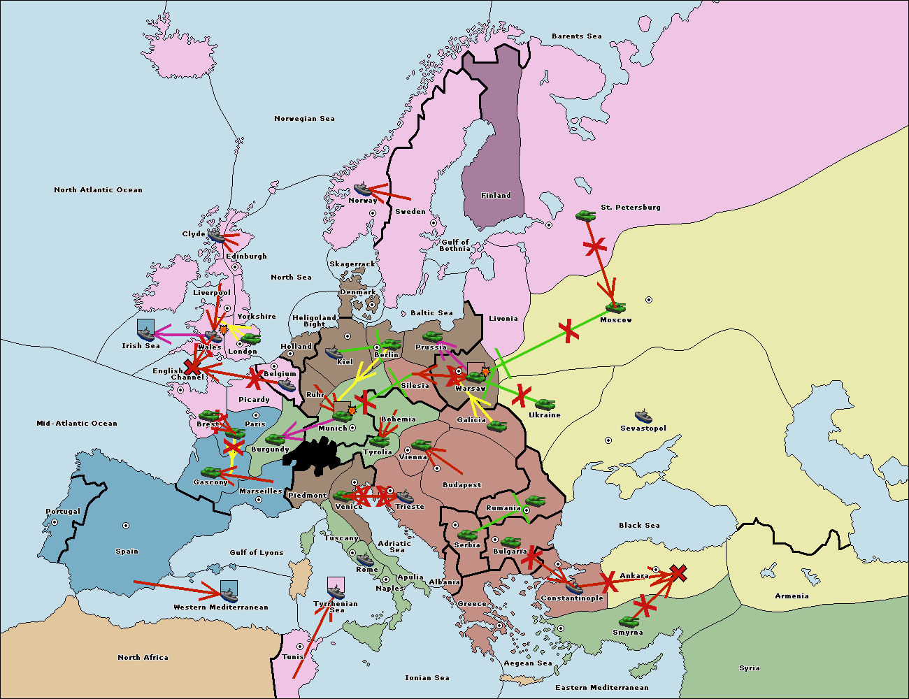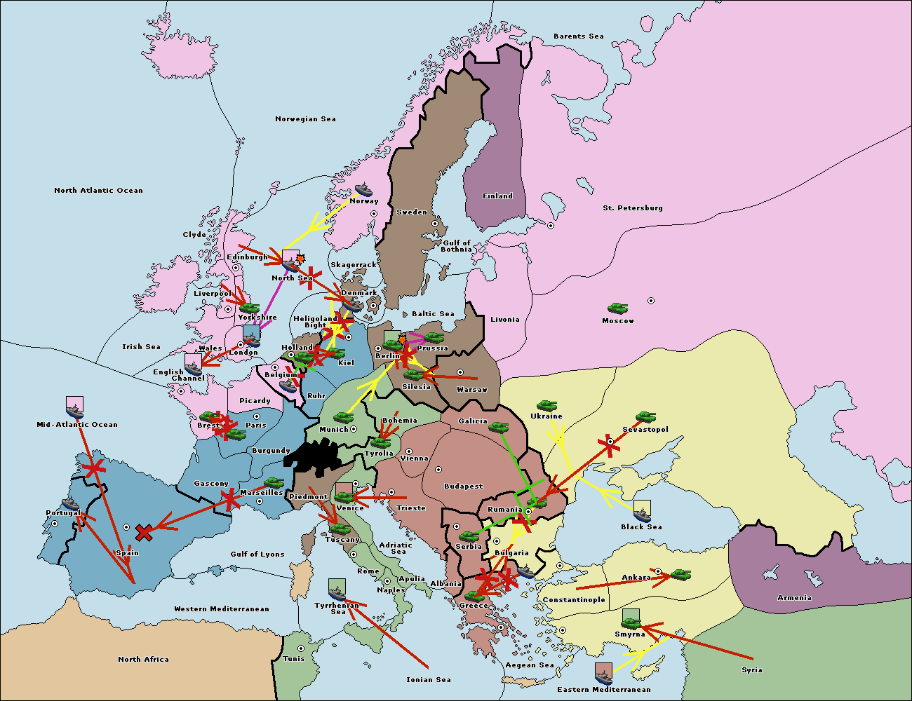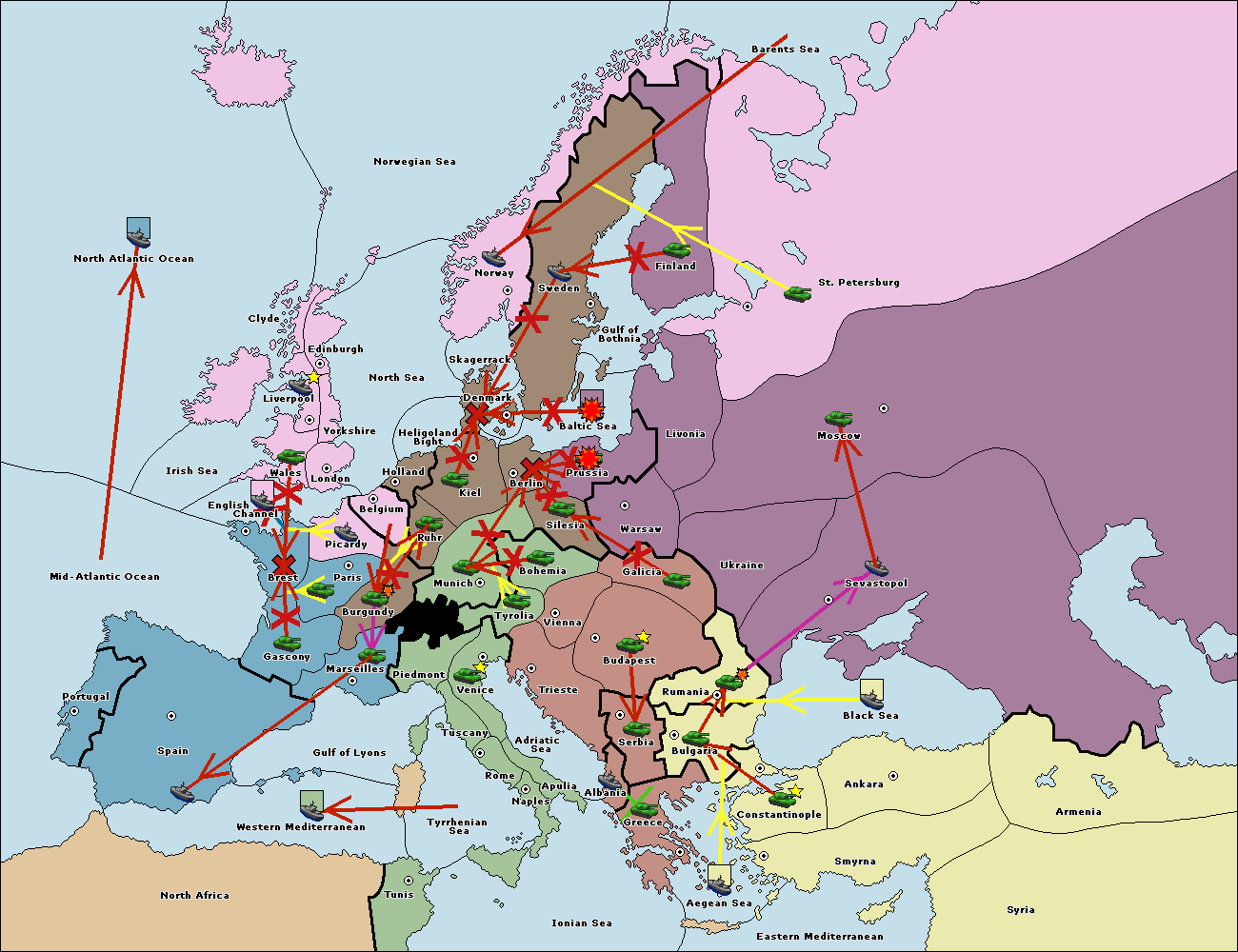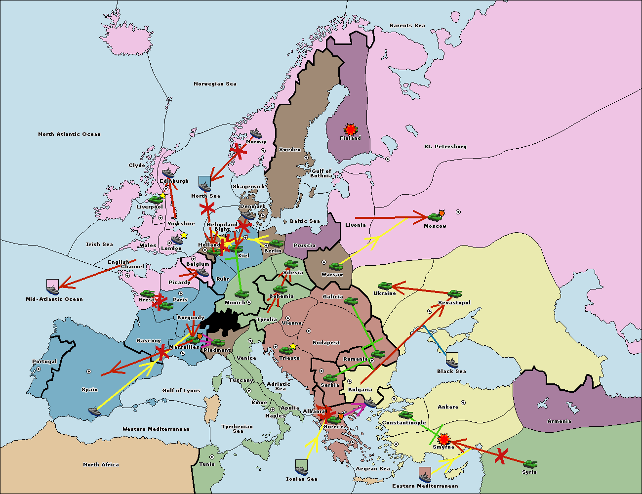 The fleet at Black Sea support move to Bulgaria from Constantinople.