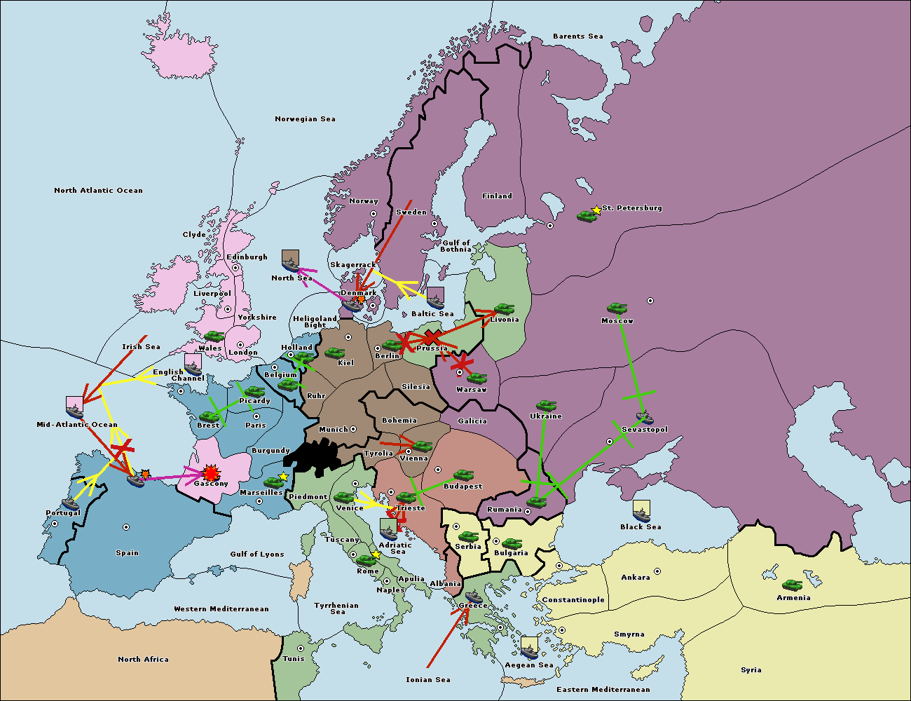 The fleet at Tunis support move to Ionian Sea from Aegean Sea.