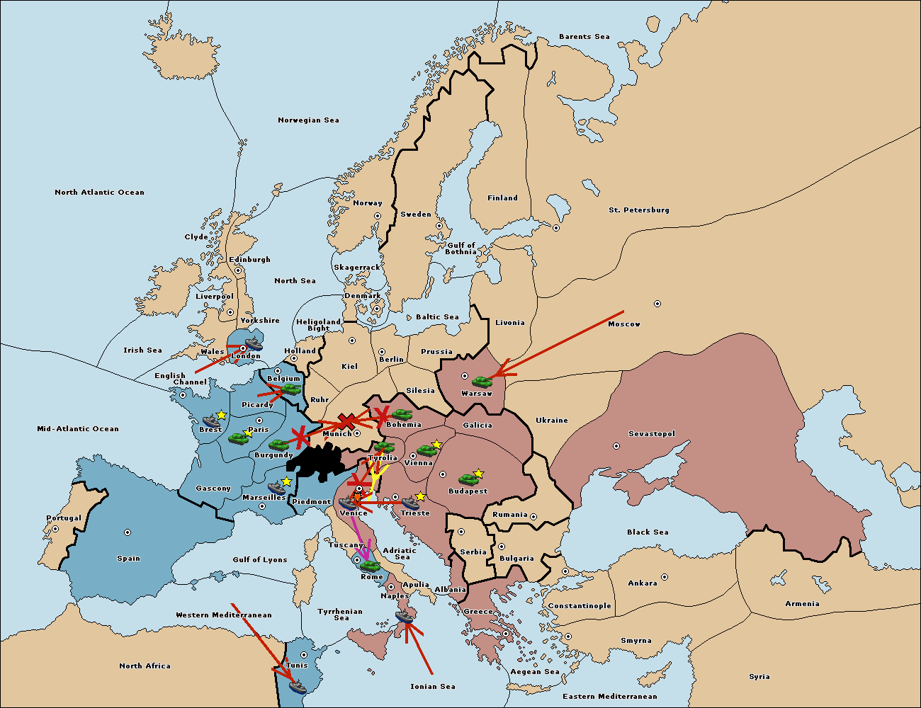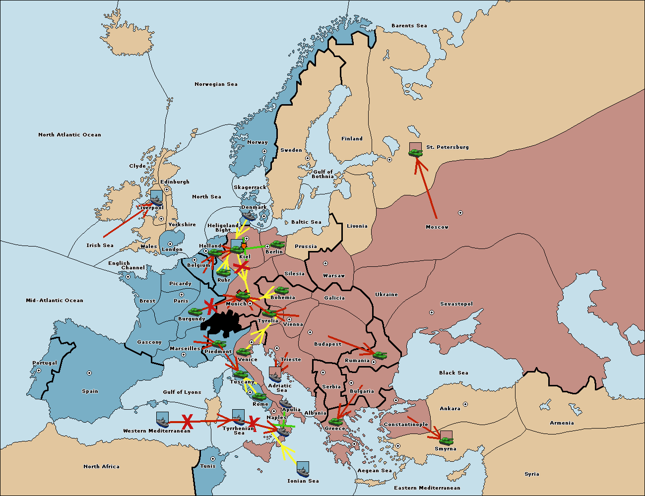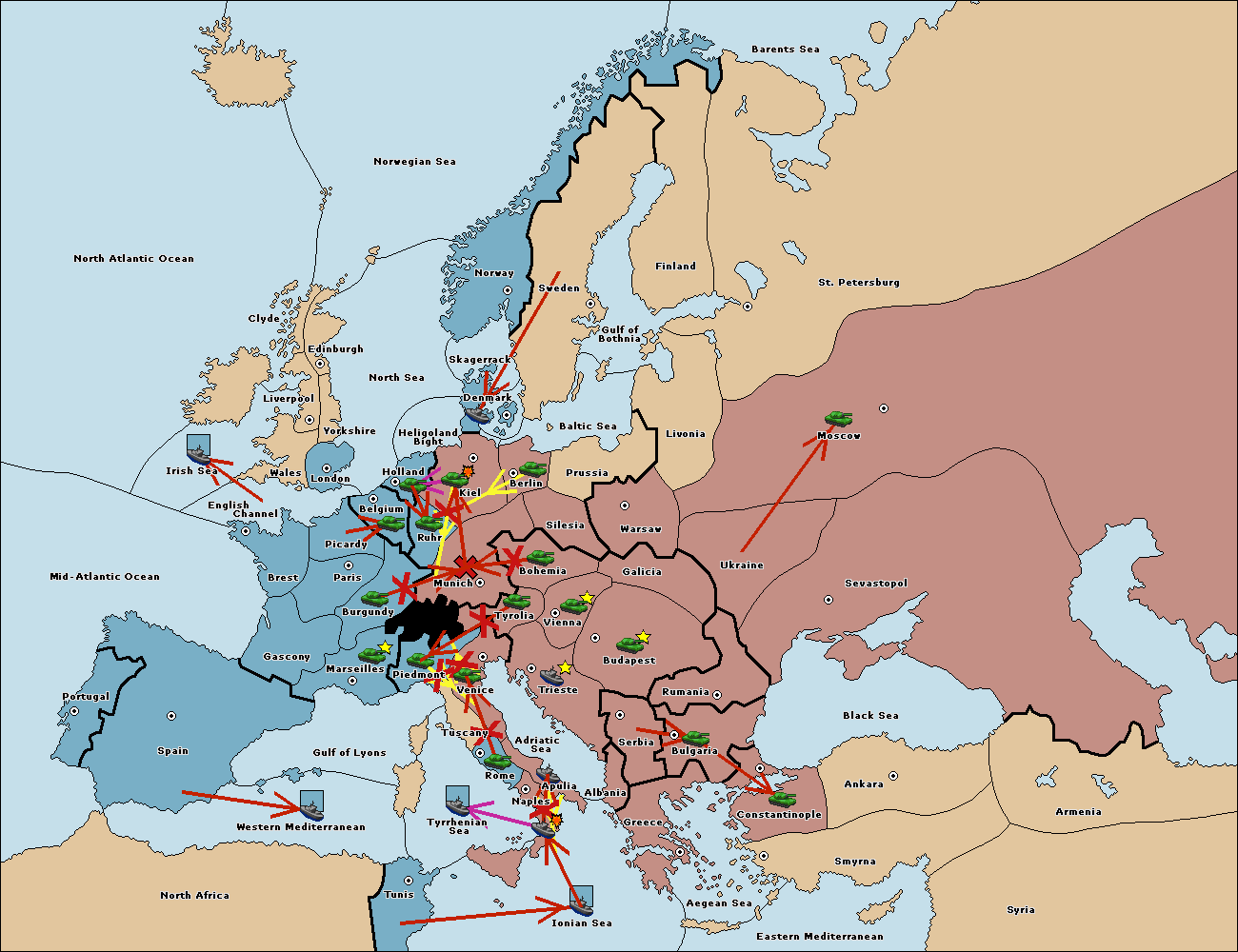 The army at Kiel support move to Munich from Tyrolia.