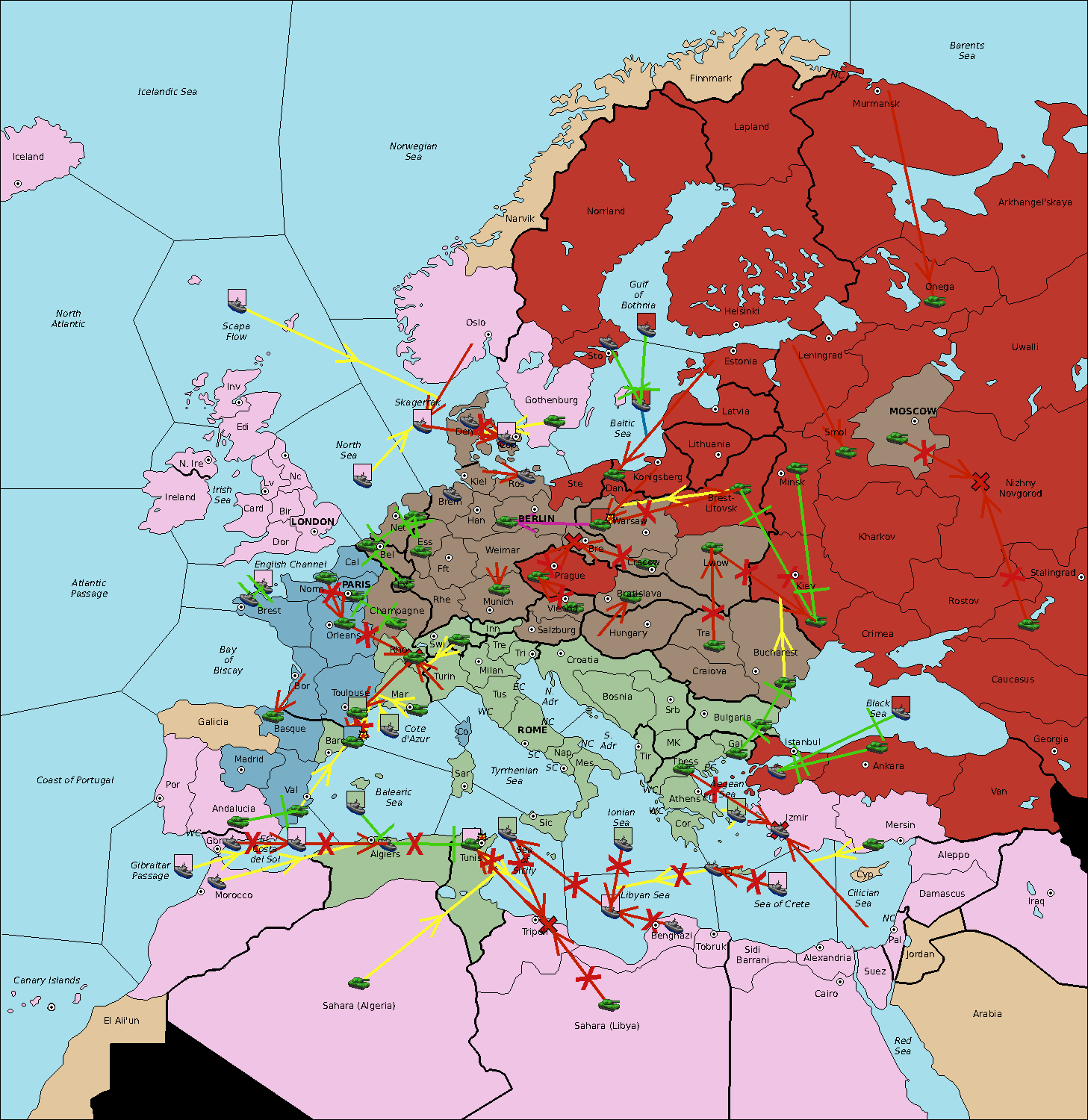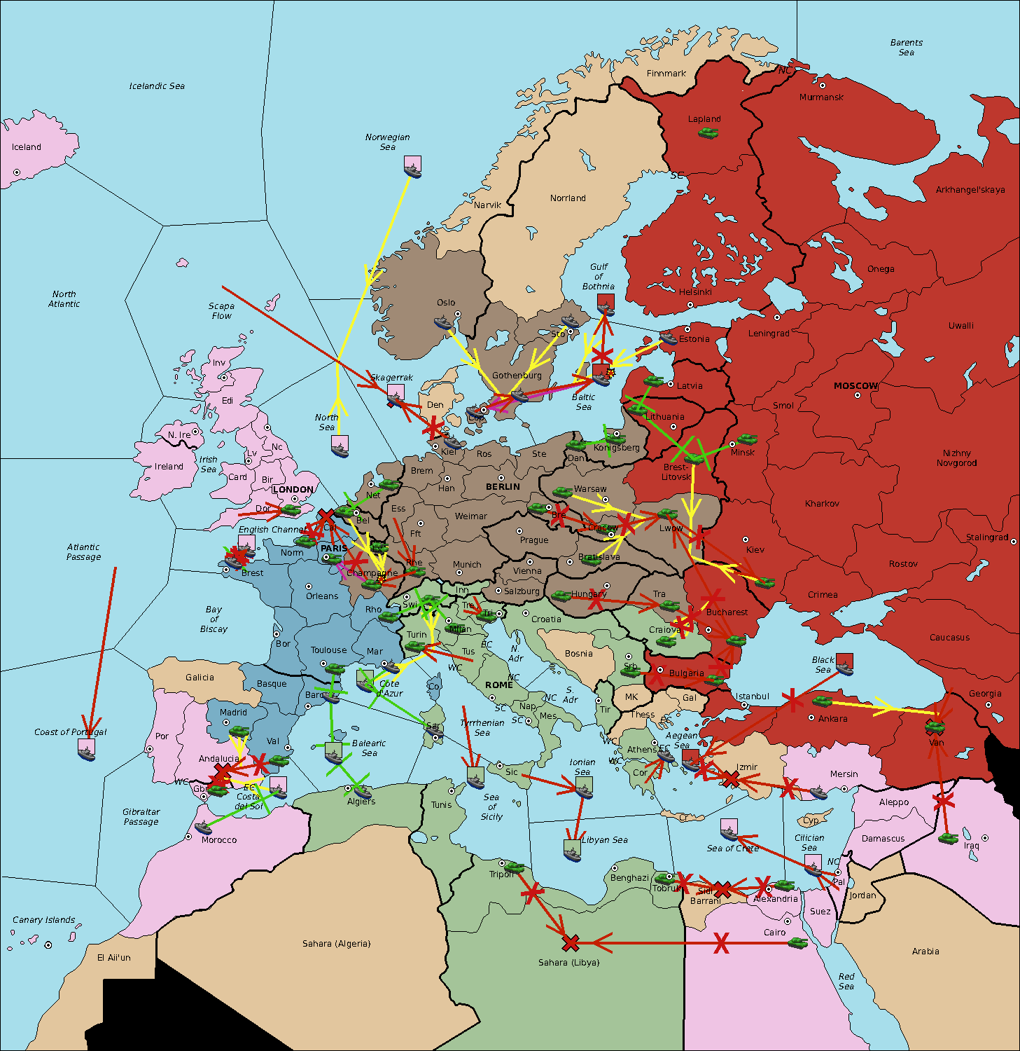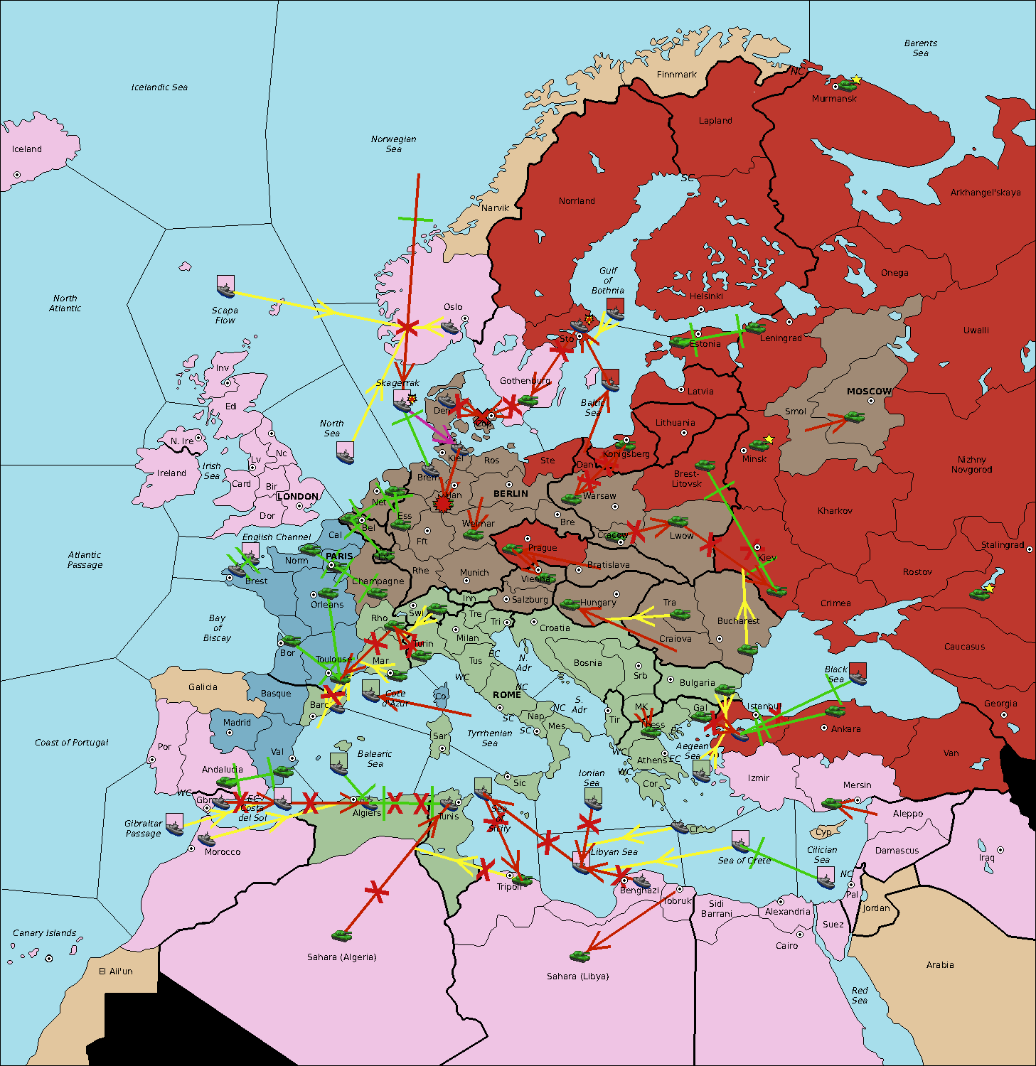The fleet at Sea of Sicily support move to Algiers from Balearic Sea.
