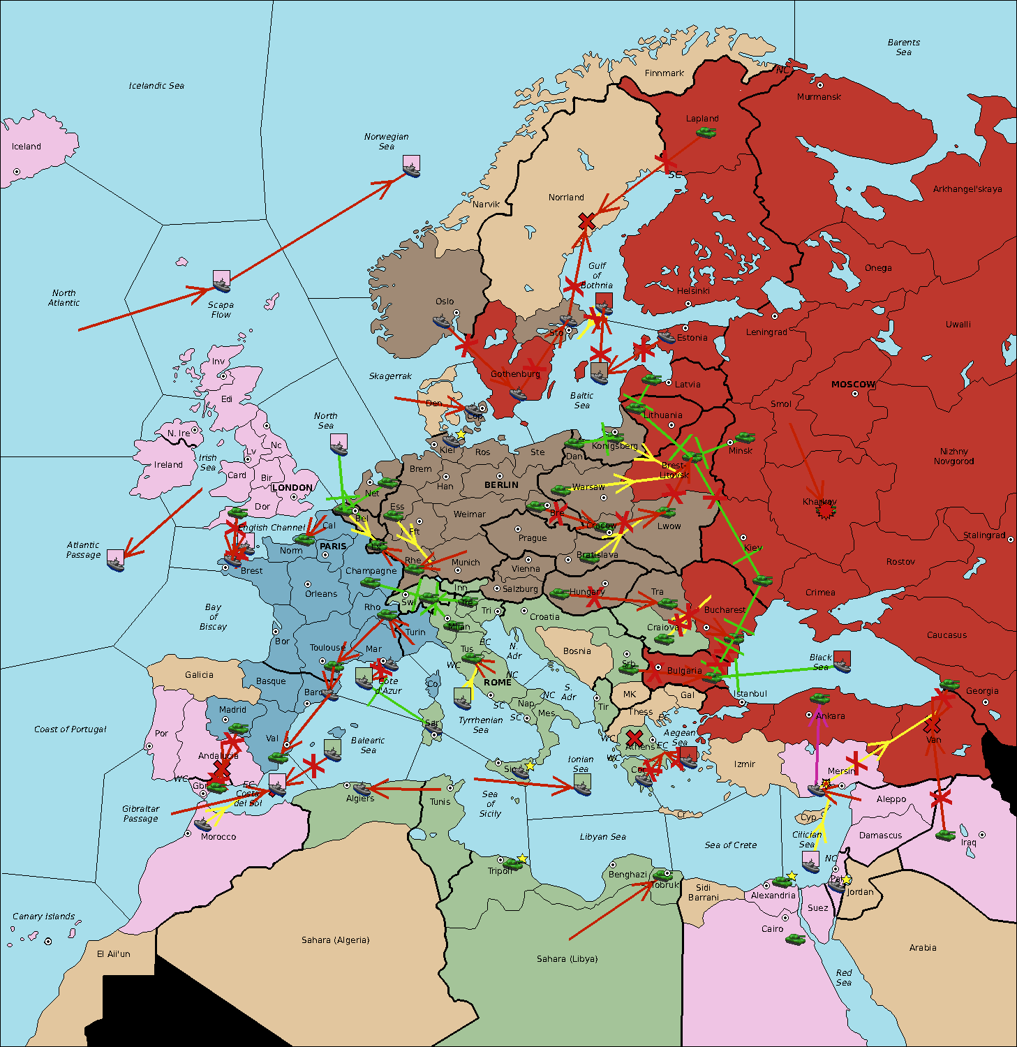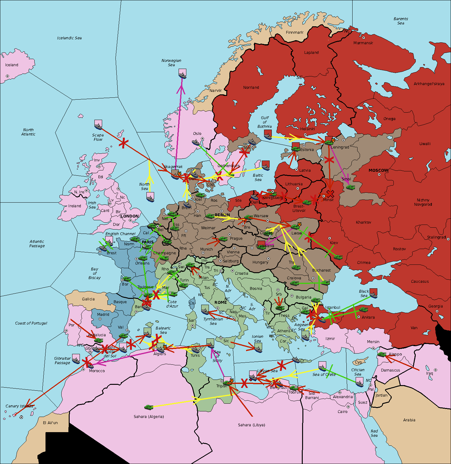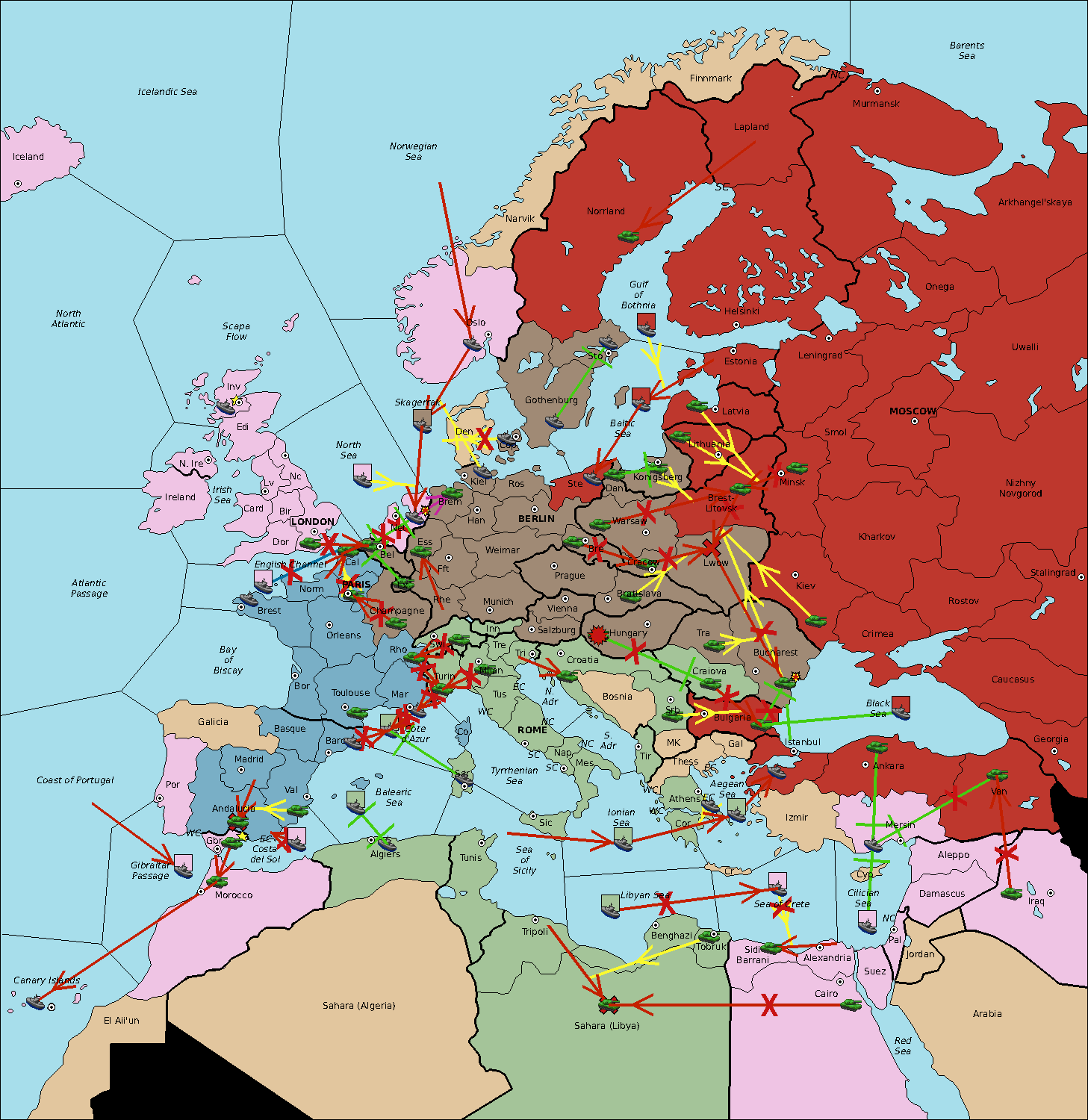 The fleet at Sea of Sicily support move to Algiers from Balearic Sea.