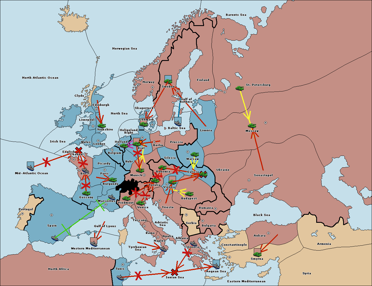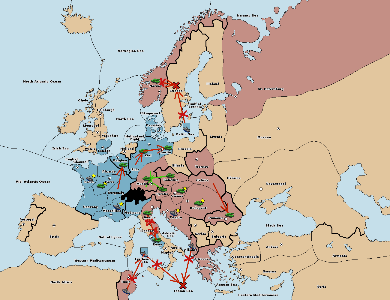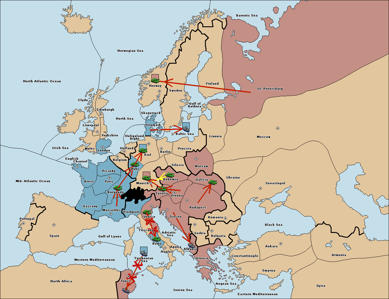 The fleet at Tunis support move to Tyrrhenian Sea from Ionian Sea.