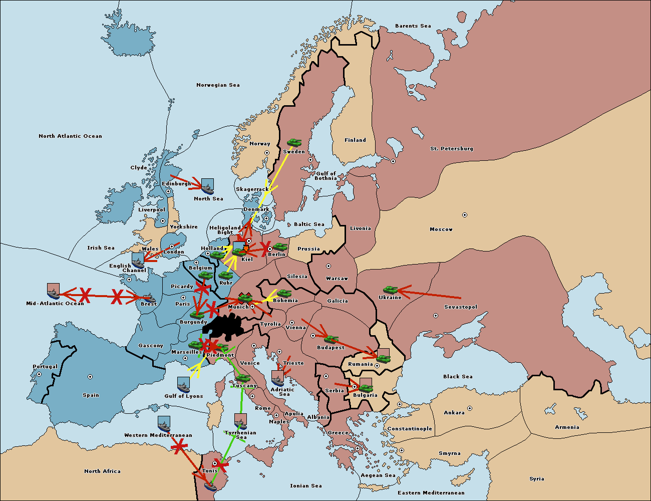 The fleet at Spain (South Coast) move to Western Mediterranean.
