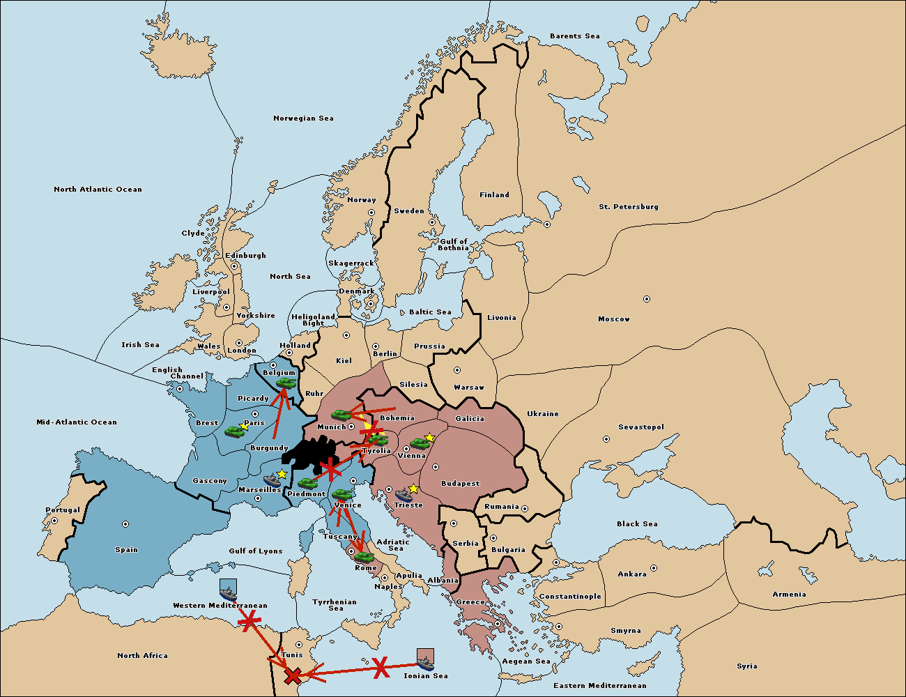 The fleet at Spain (South Coast) move to Western Mediterranean.