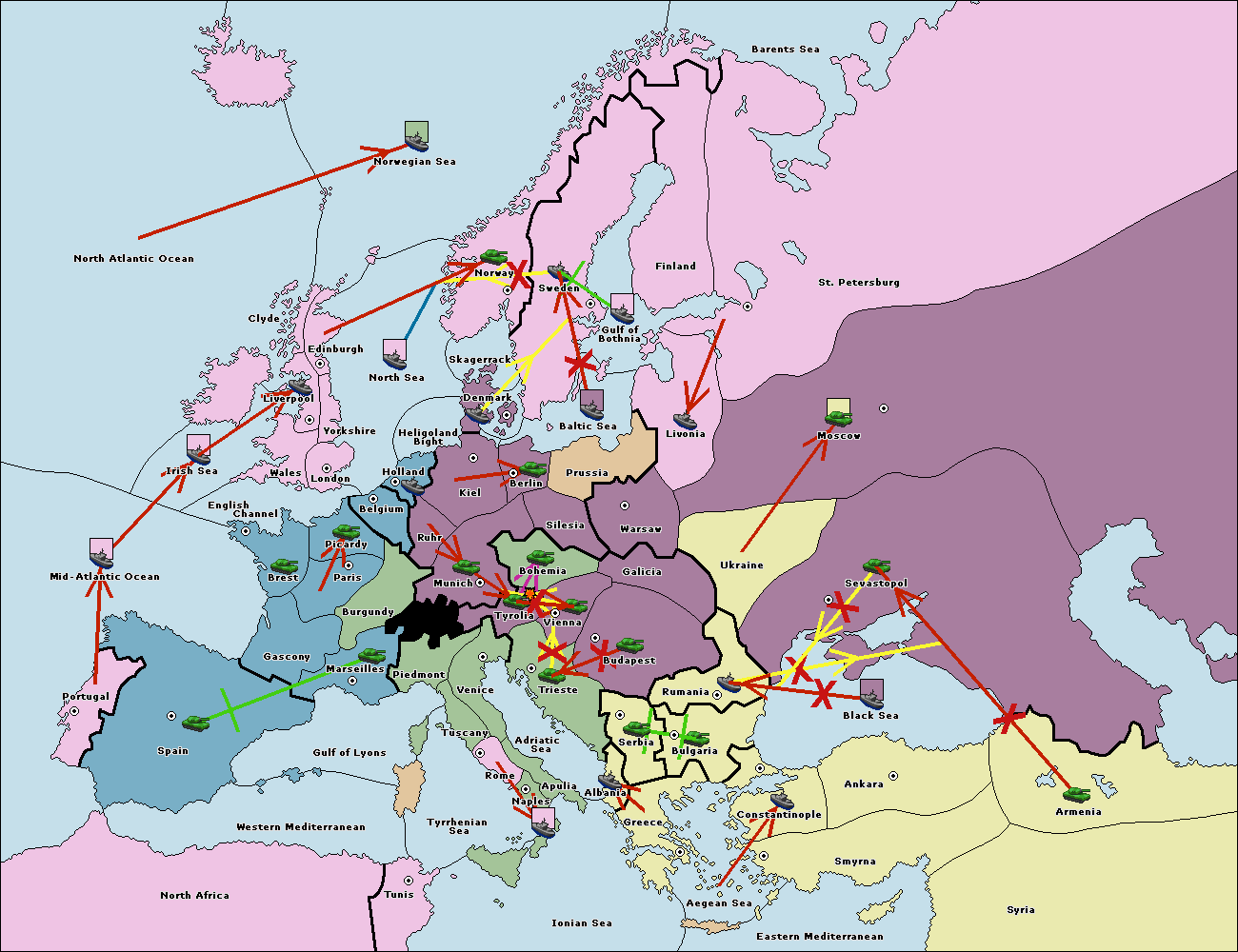 The fleet at Bulgaria (South Coast) move to Constantinople.