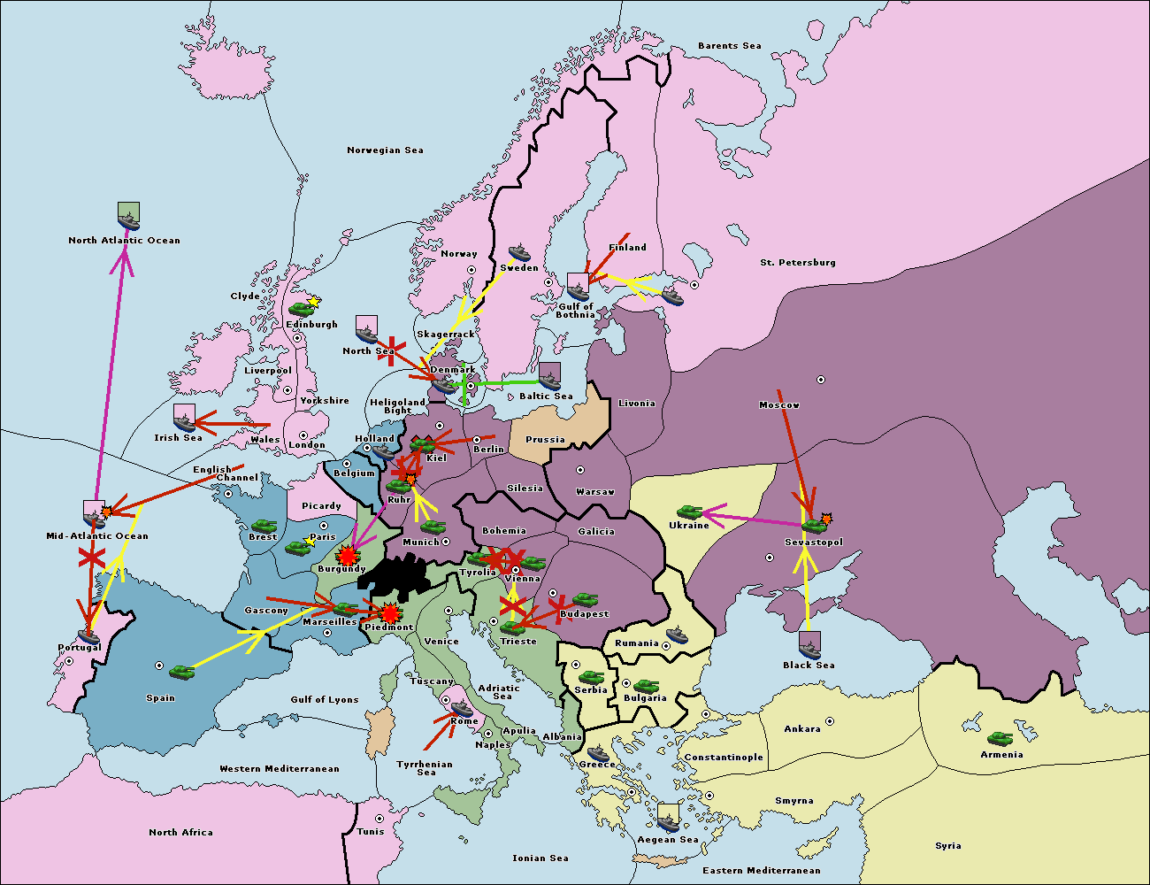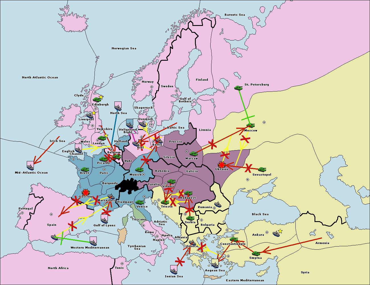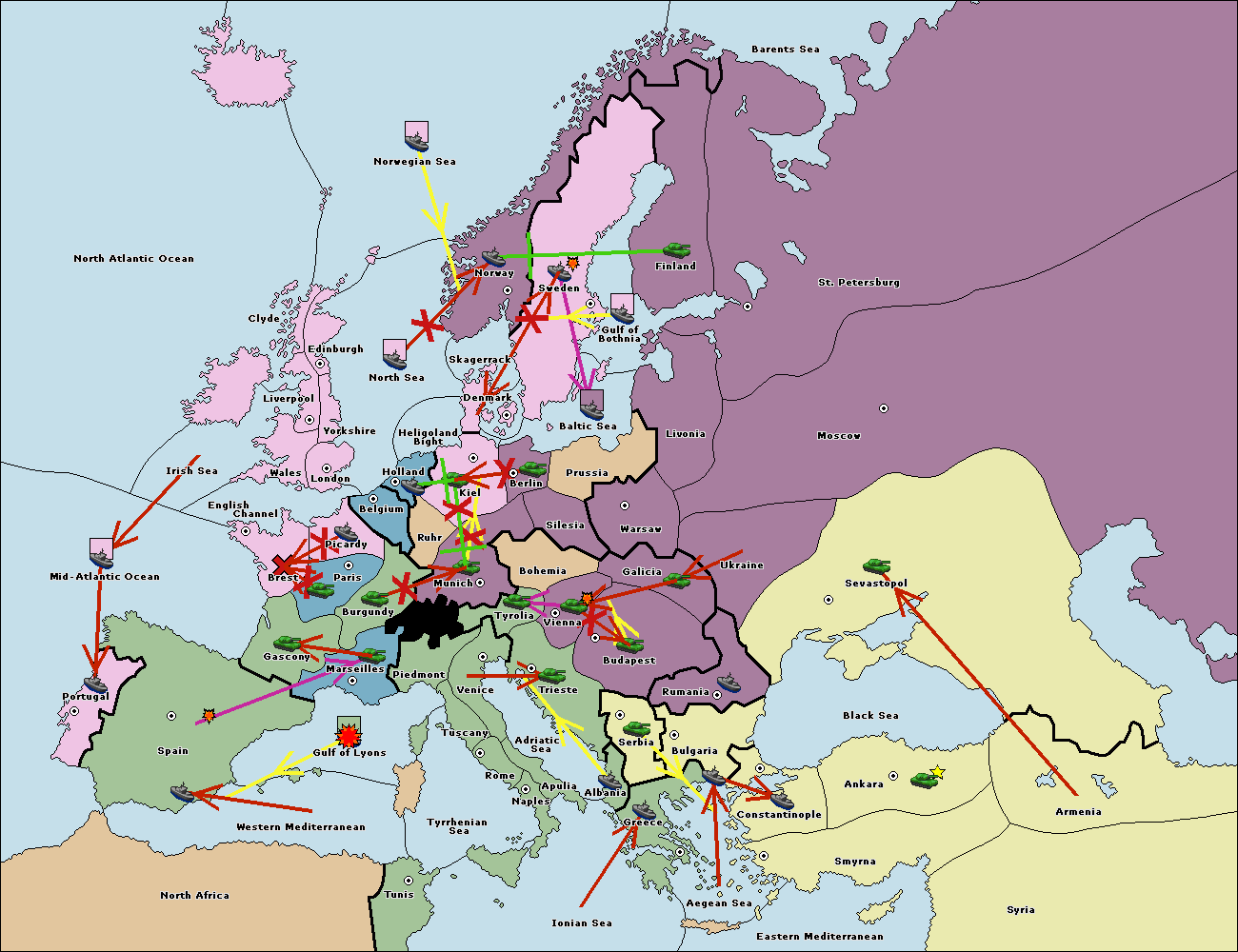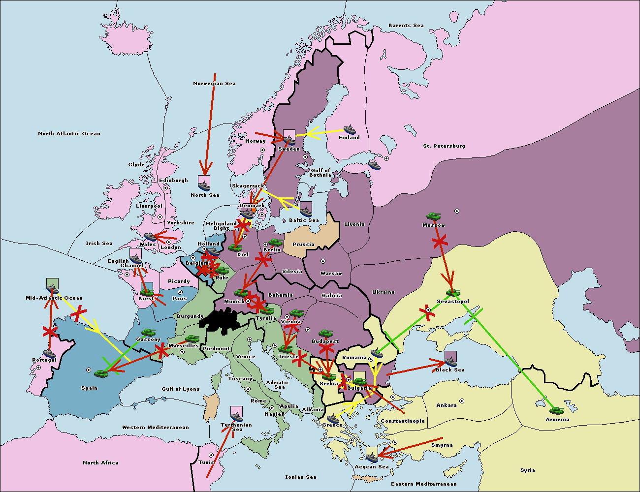 The fleet at Bulgaria (South Coast) support hold to Greece.