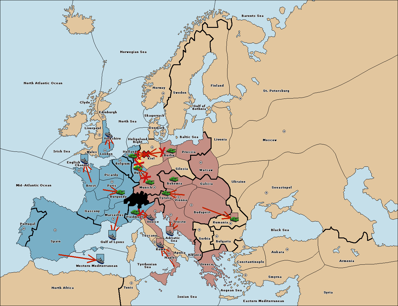 The fleet at Spain (South Coast) move to Western Mediterranean.