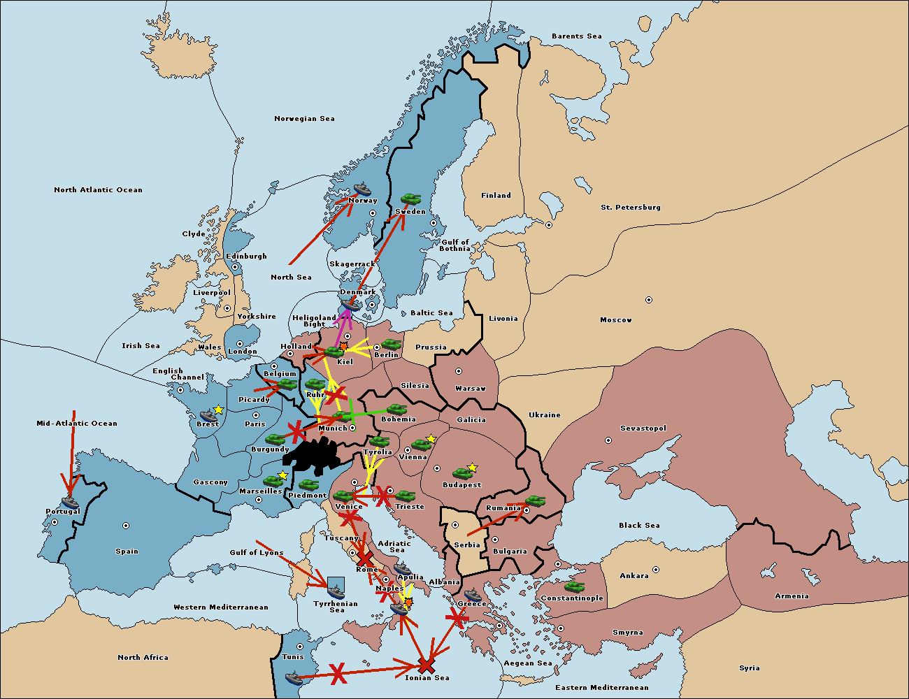 The fleet at Mid-Atlantic Ocean move to Western Mediterranean.