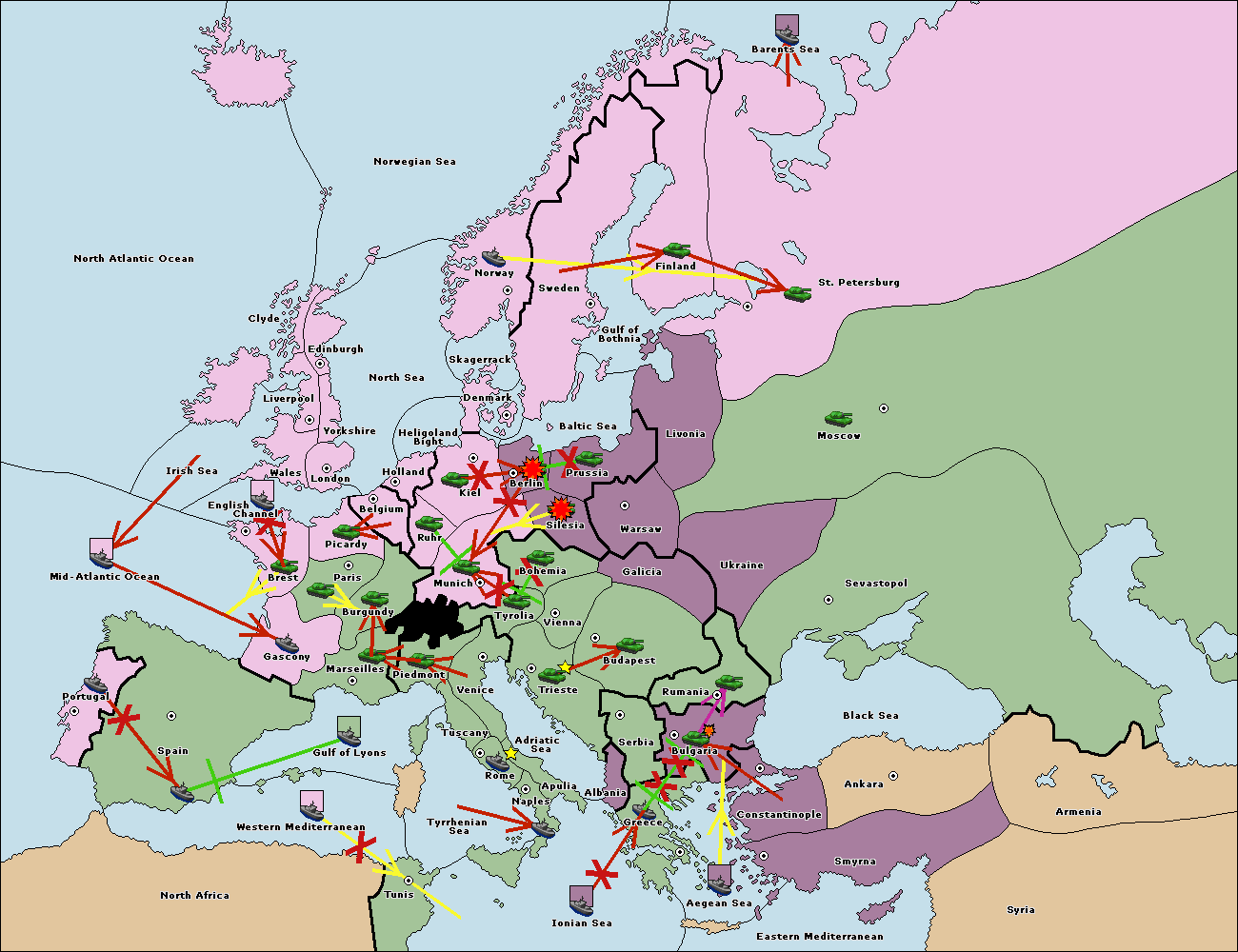 The fleet at Bulgaria (North Coast) move to Constantinople.