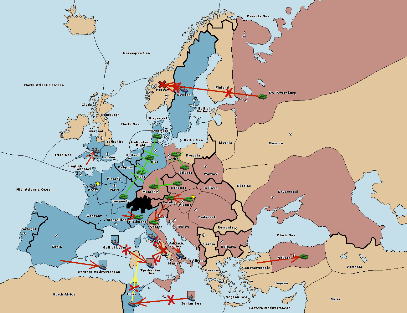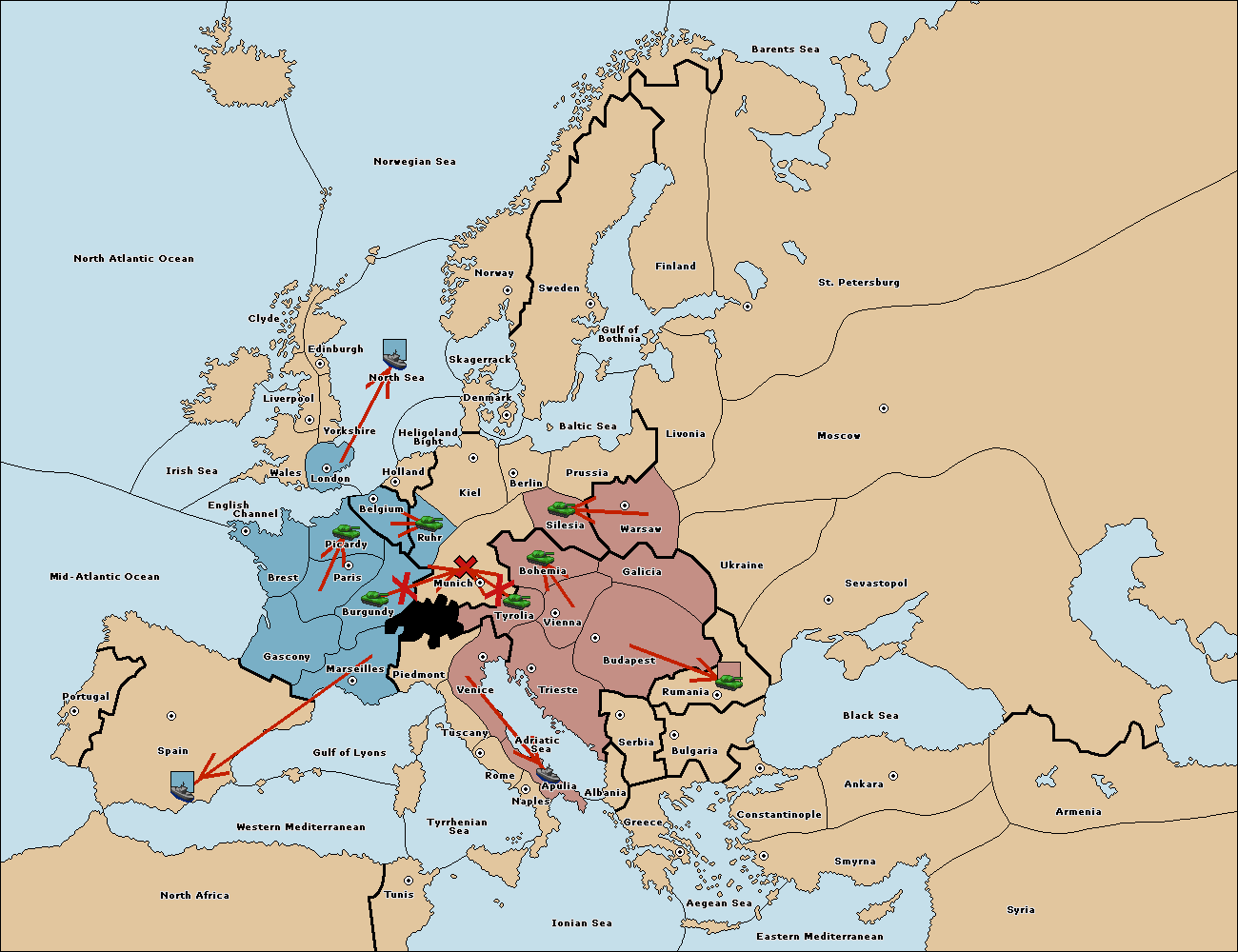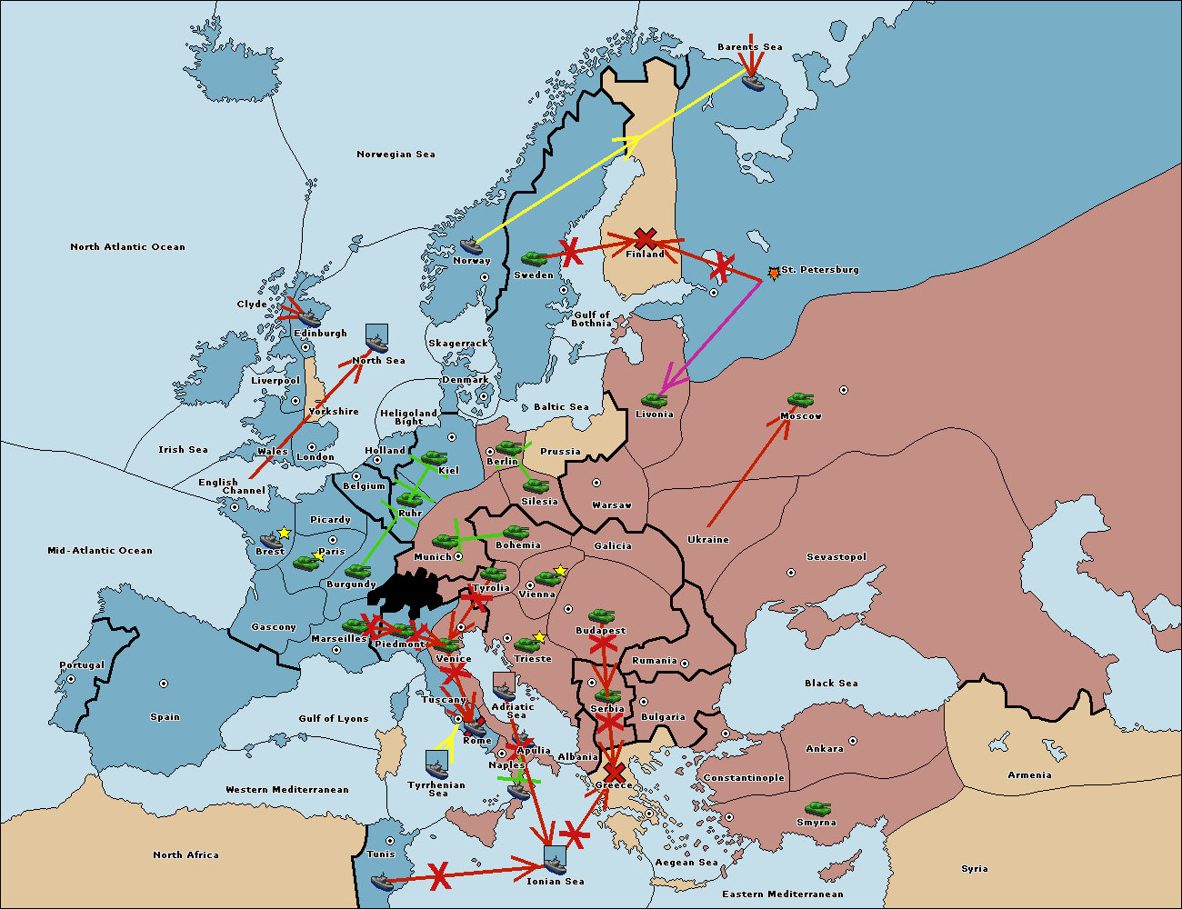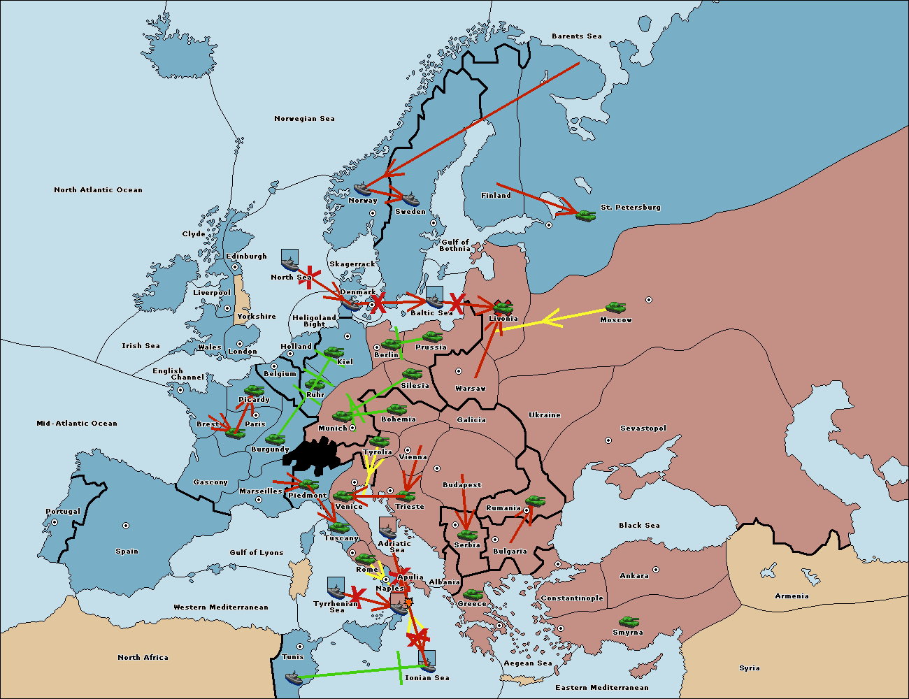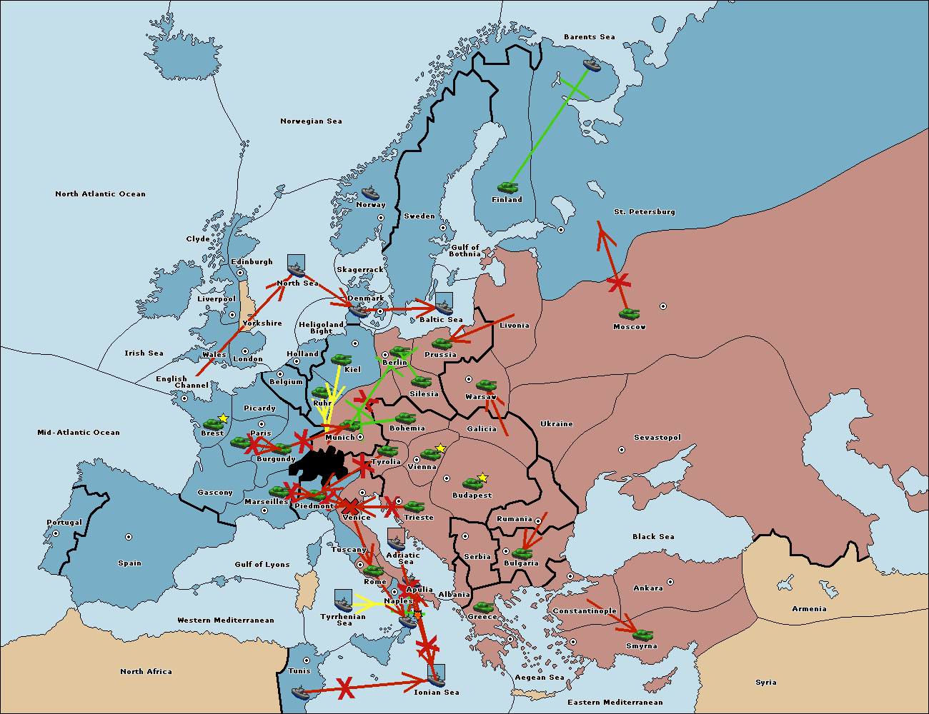 The fleet at Prussia support move to Berlin from Baltic Sea.