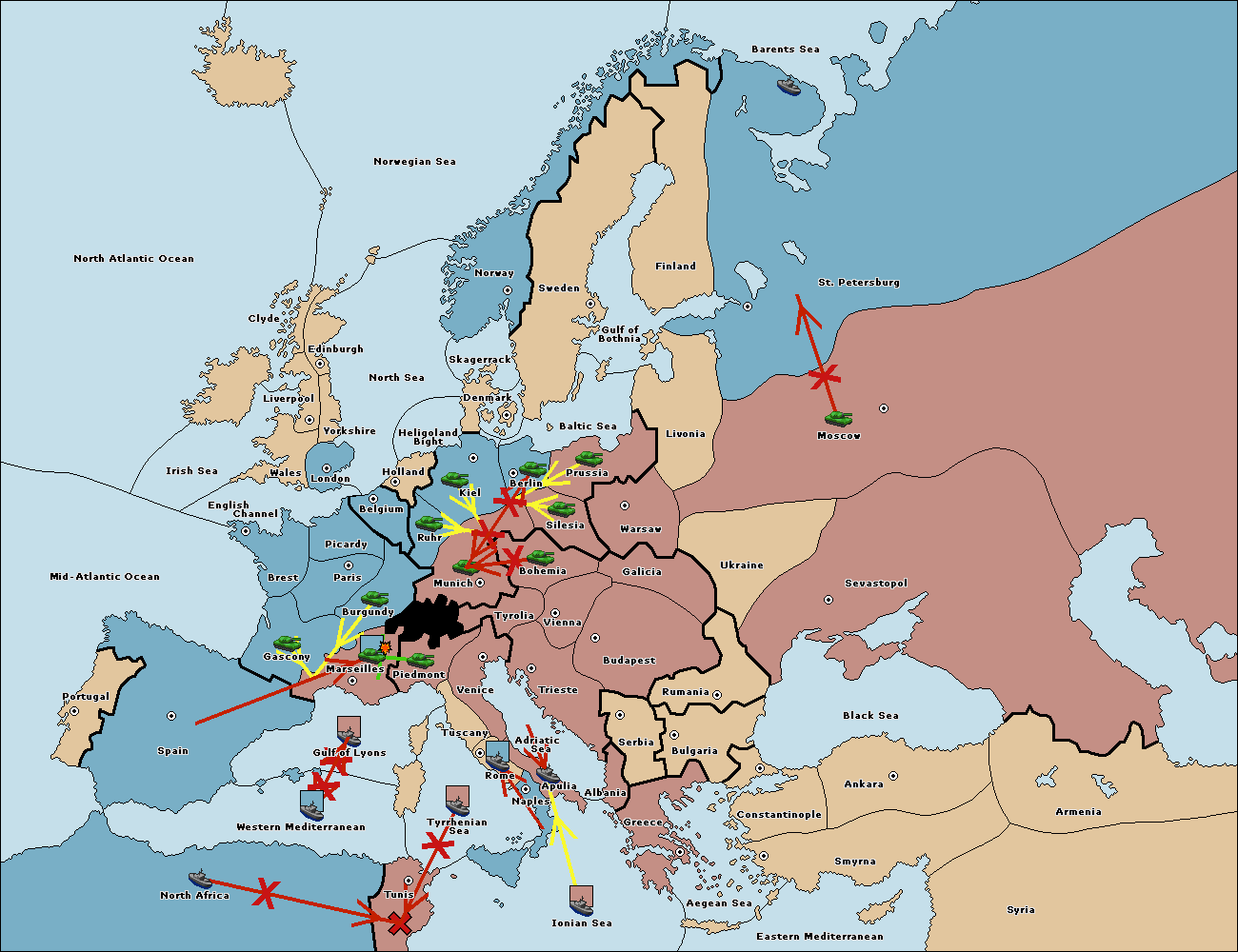 The fleet at Ionian Sea support move to Tunis from Western Mediterranean.