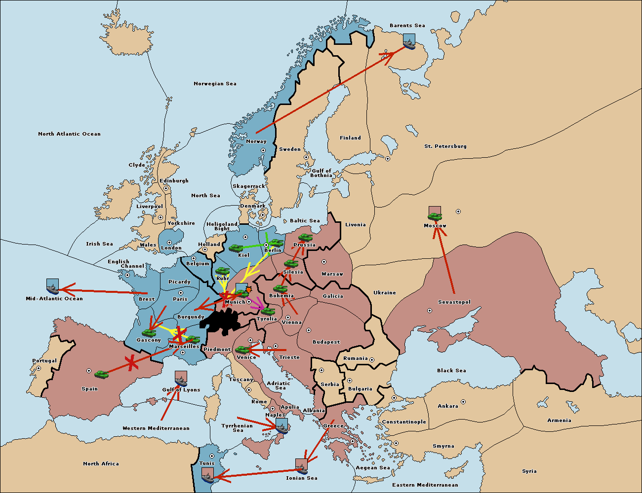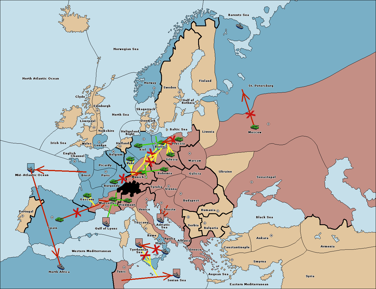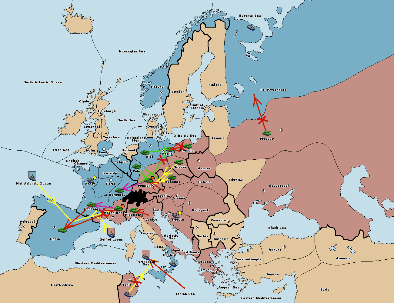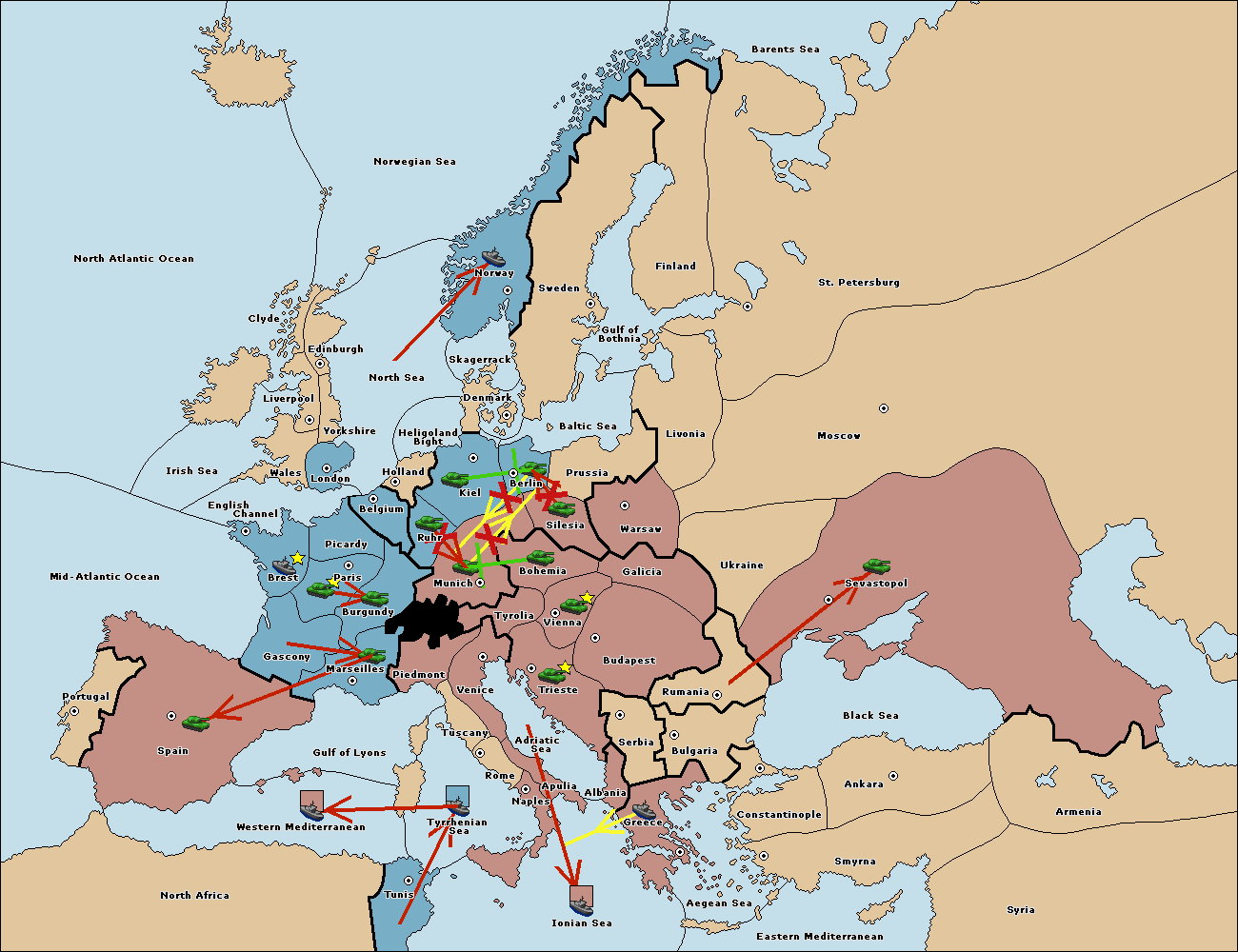 The fleet at Mid-Atlantic Ocean move to Western Mediterranean.