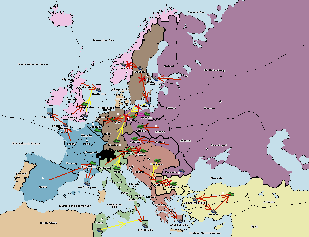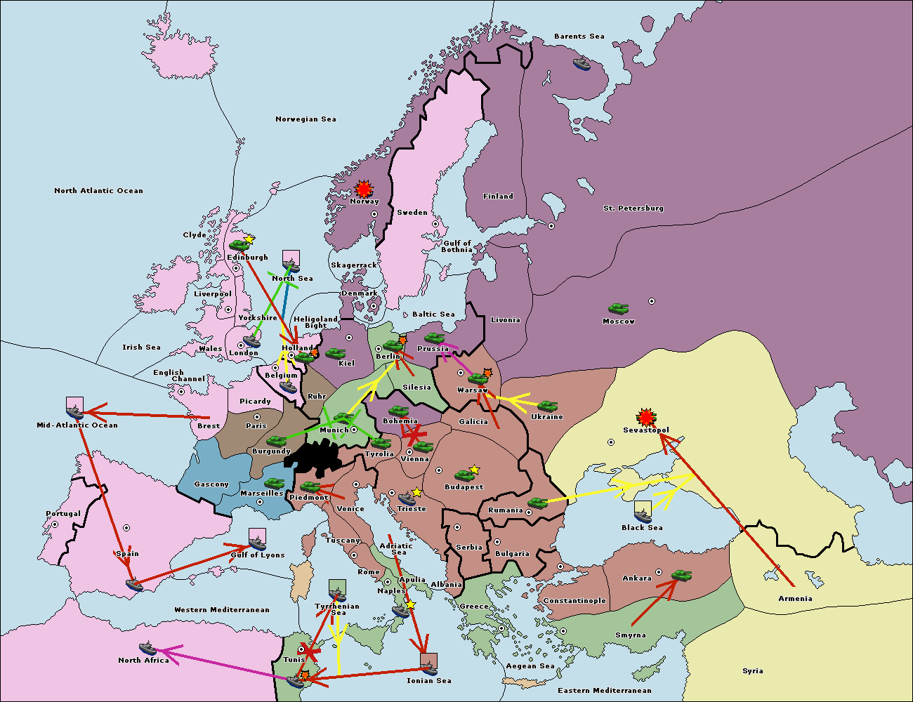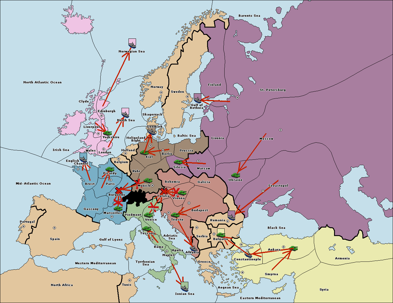 The fleet at Spain (South Coast) support move to Marseilles from Gulf of Lyons.