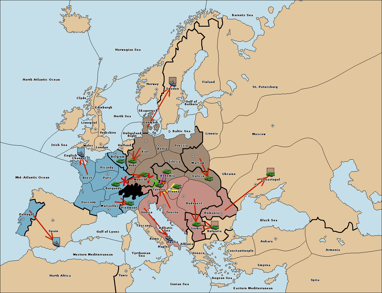 The army at Tyrolia move to Munich.