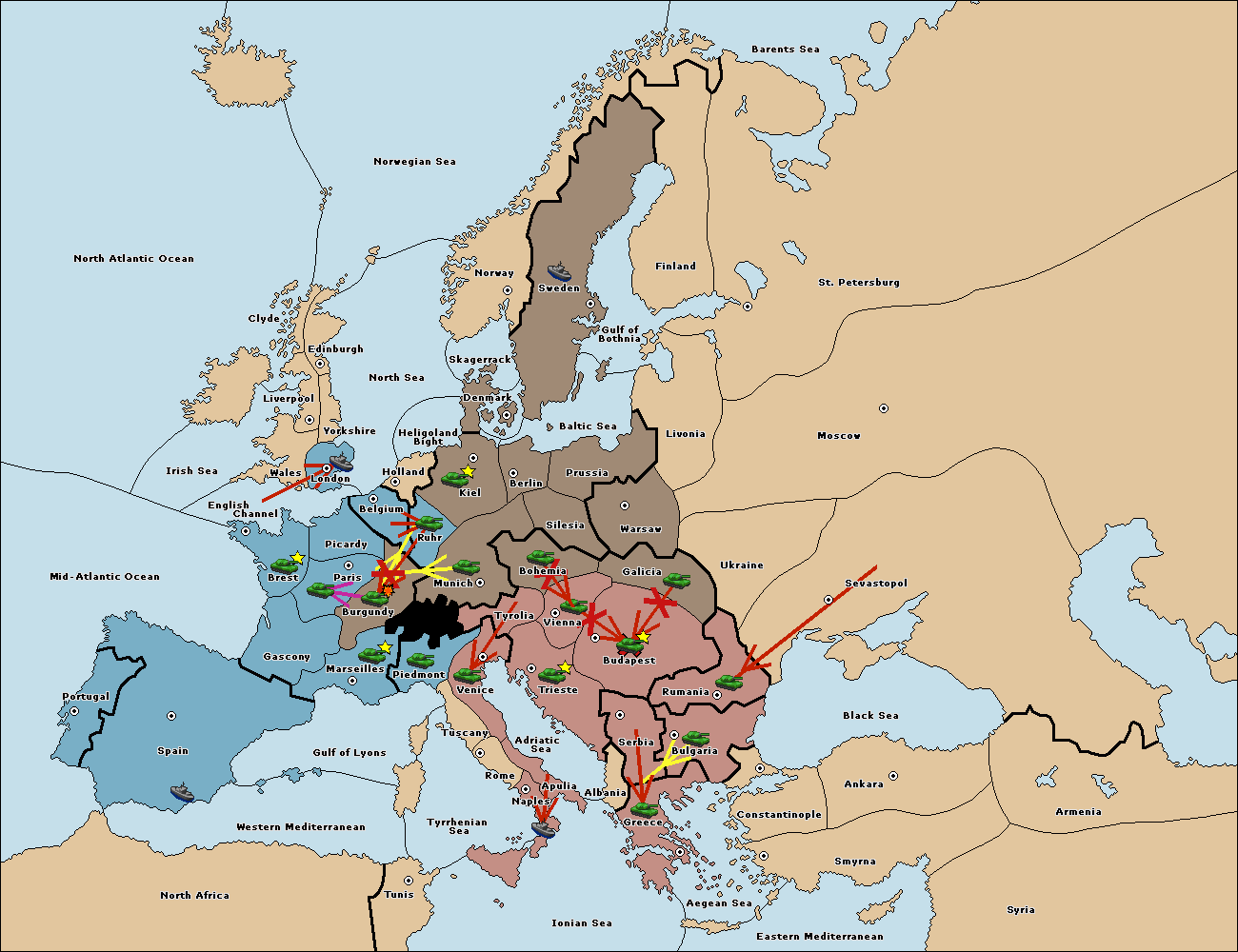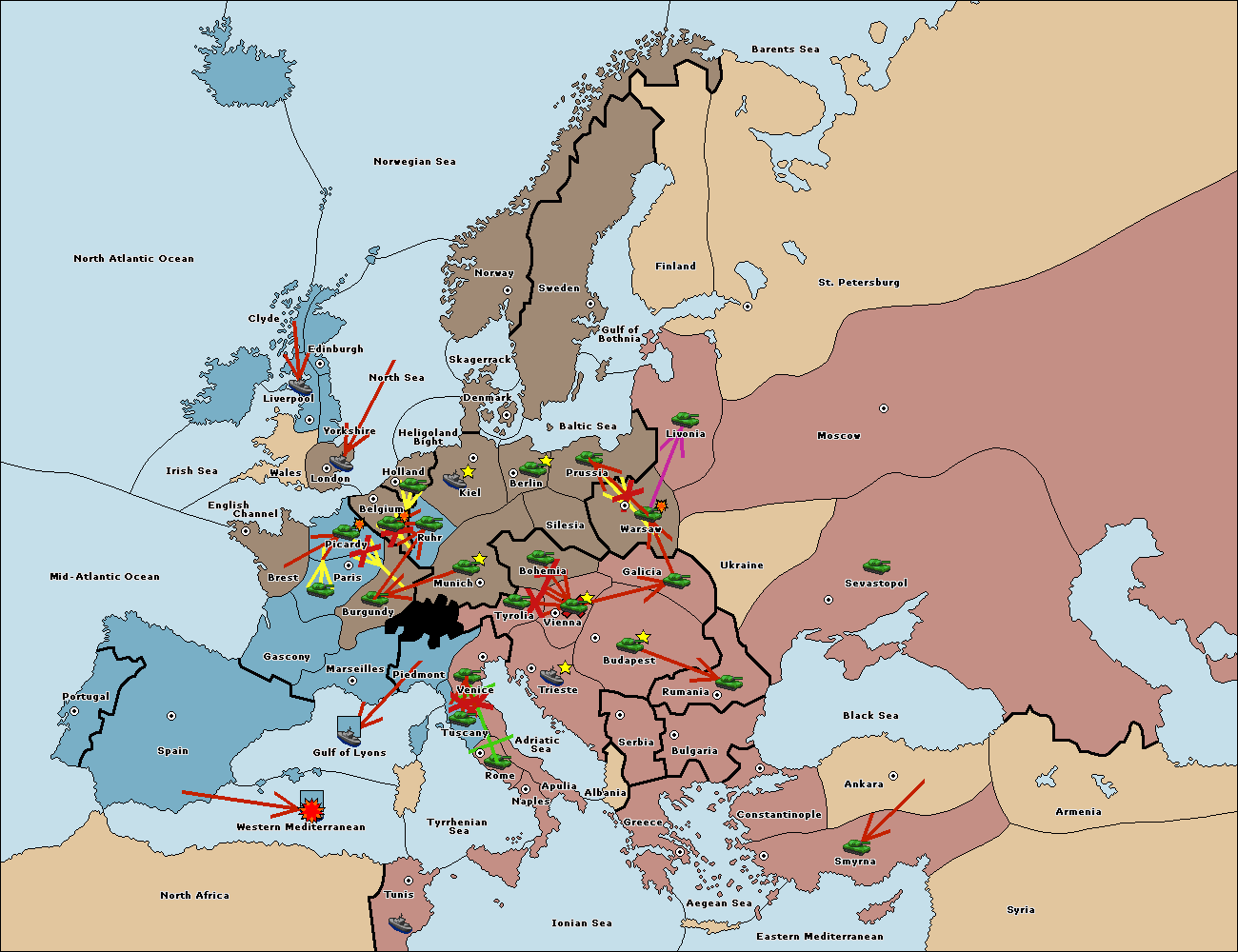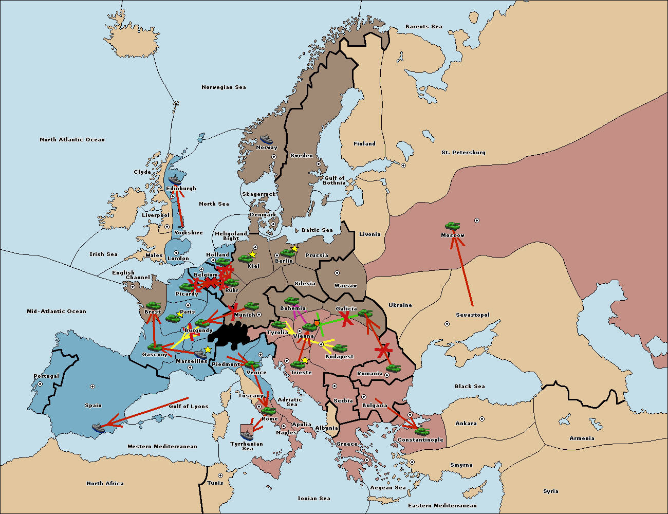 The army at Tyrolia support move to Vienna from Trieste.