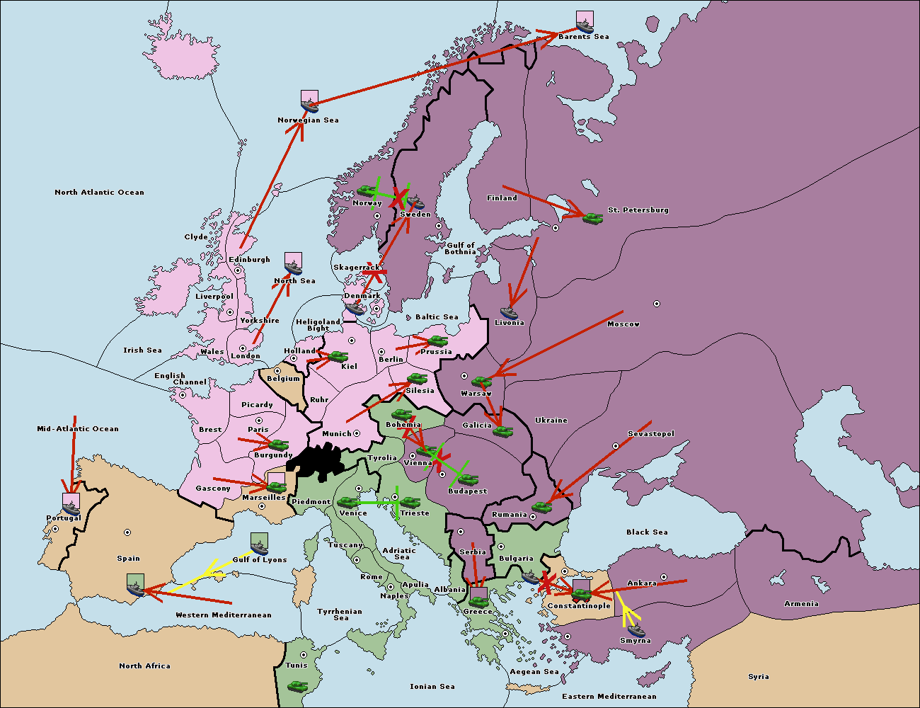 The fleet at Bulgaria (South Coast) move to Constantinople.