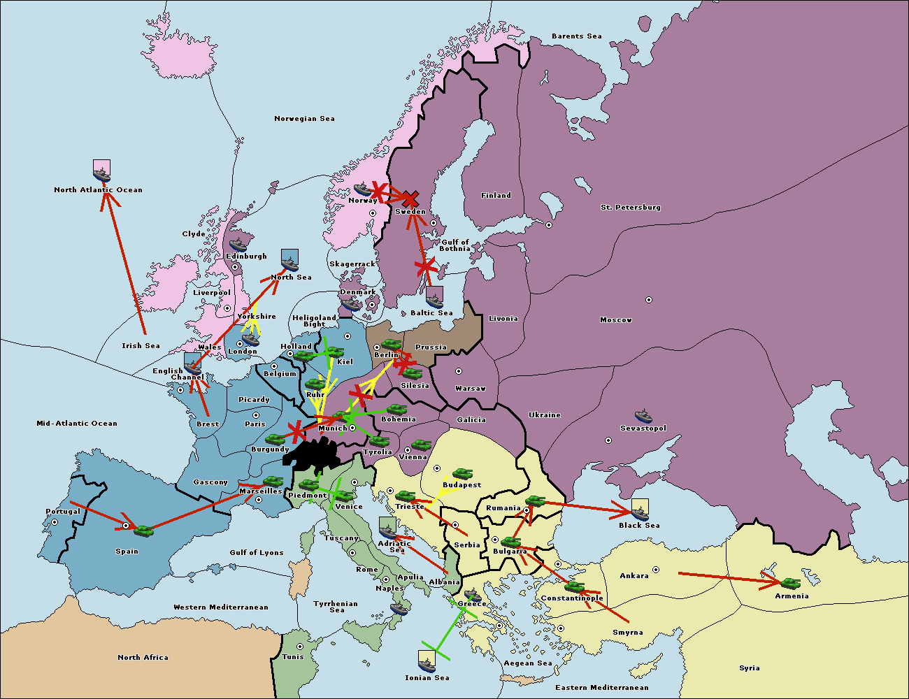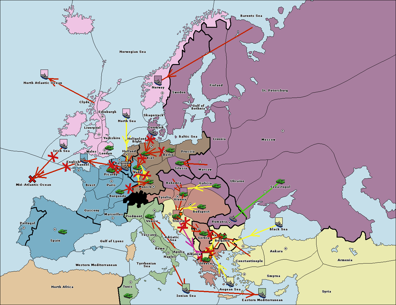 The fleet at Ionian Sea support move to Greece from Serbia.