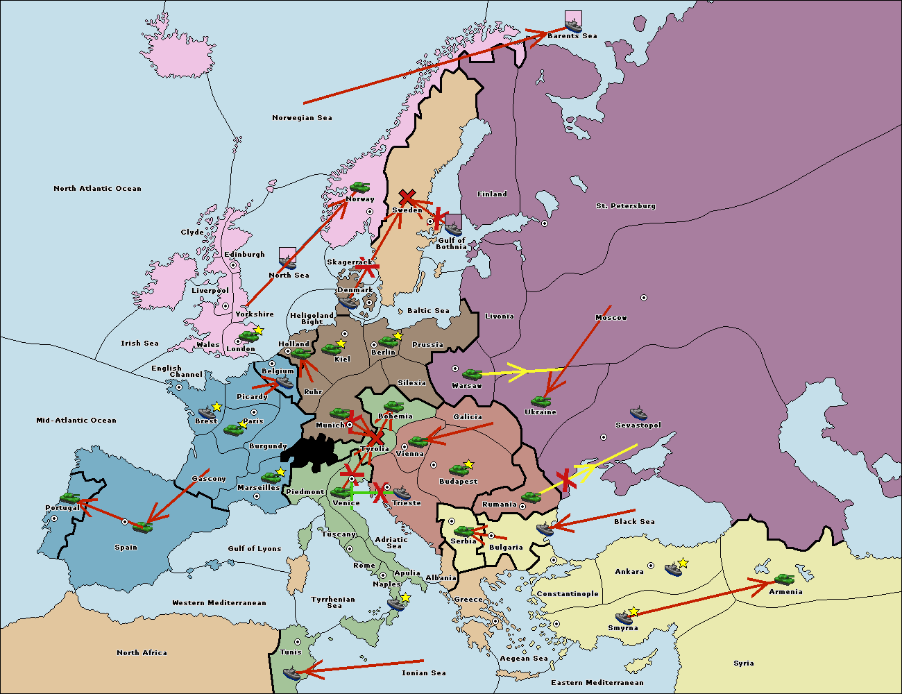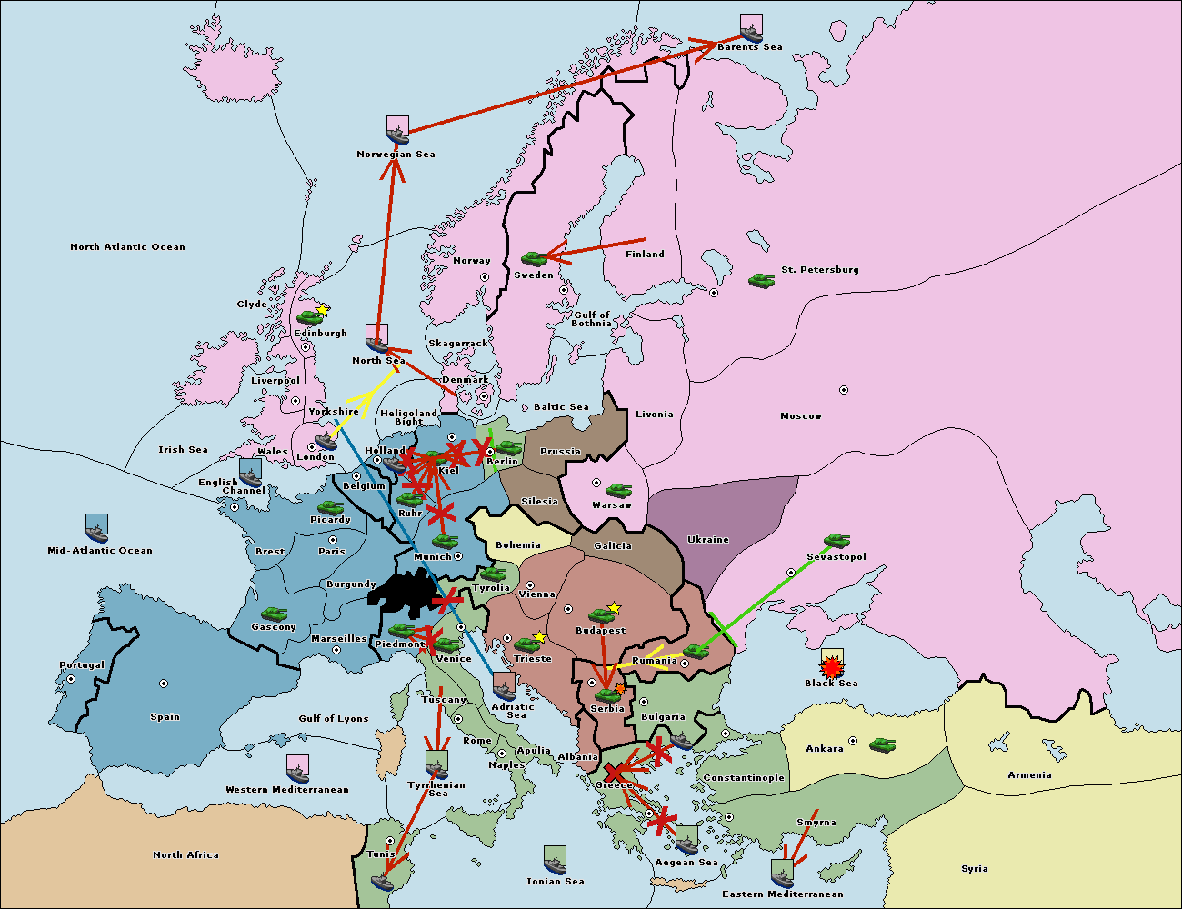 The fleet at Bulgaria (North Coast) move to Rumania.