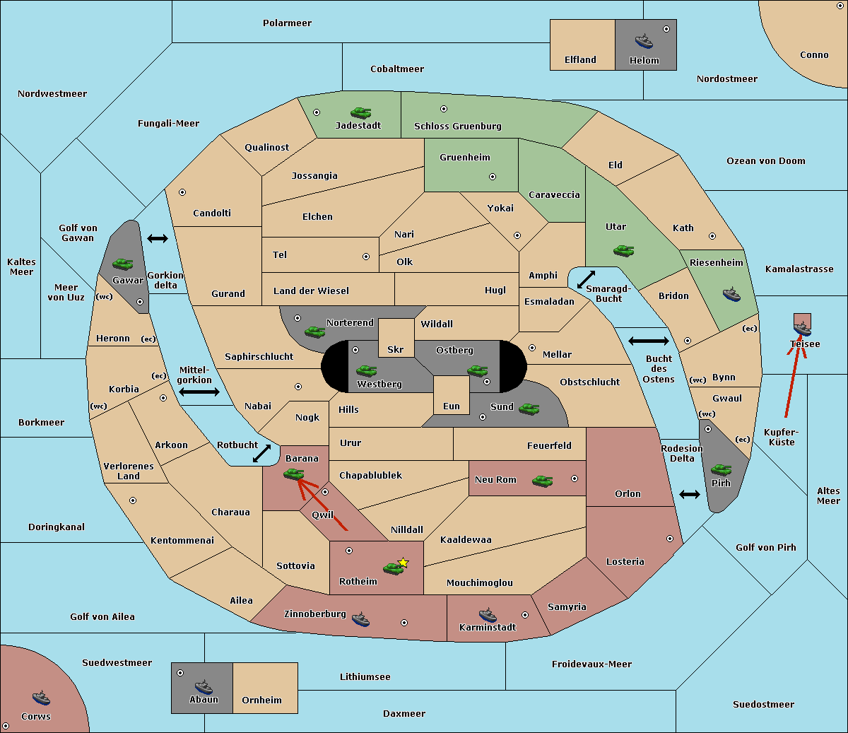 The fleet at Schloss Gruenburg move to Ozean von Doom.