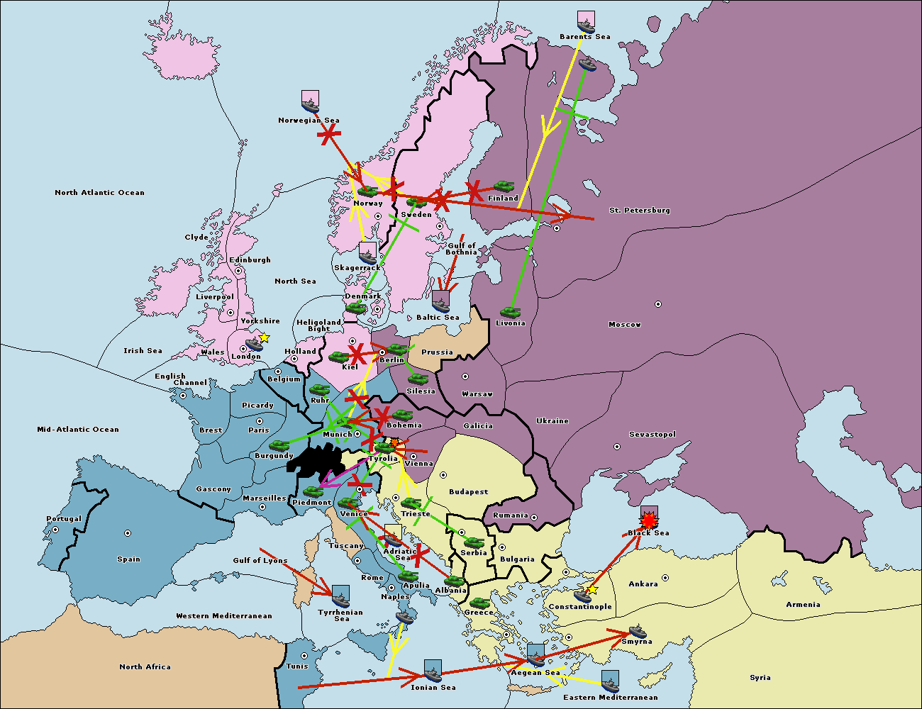 The fleet at Mid-Atlantic Ocean move to Western Mediterranean.