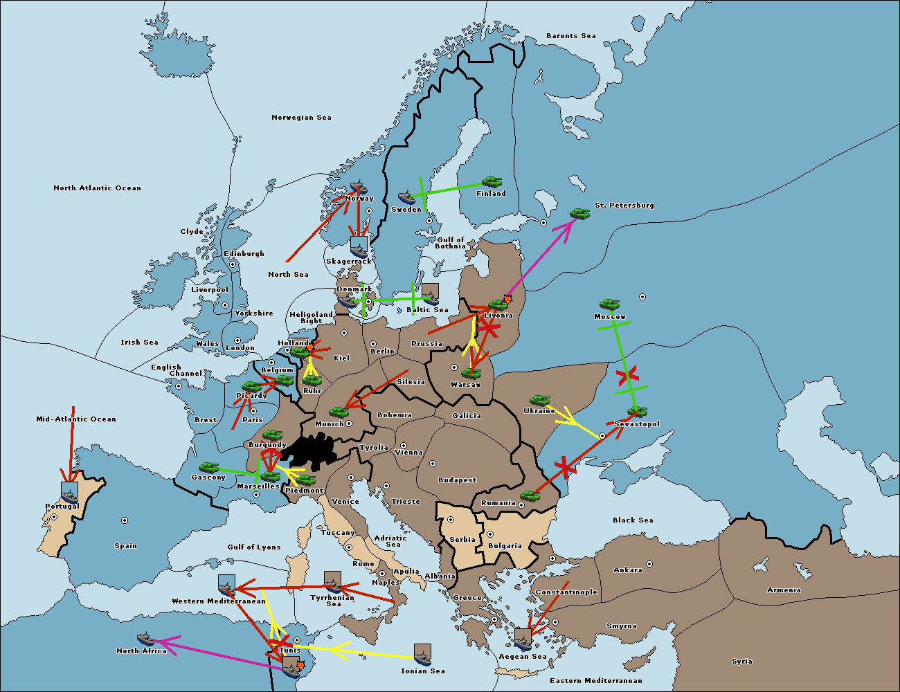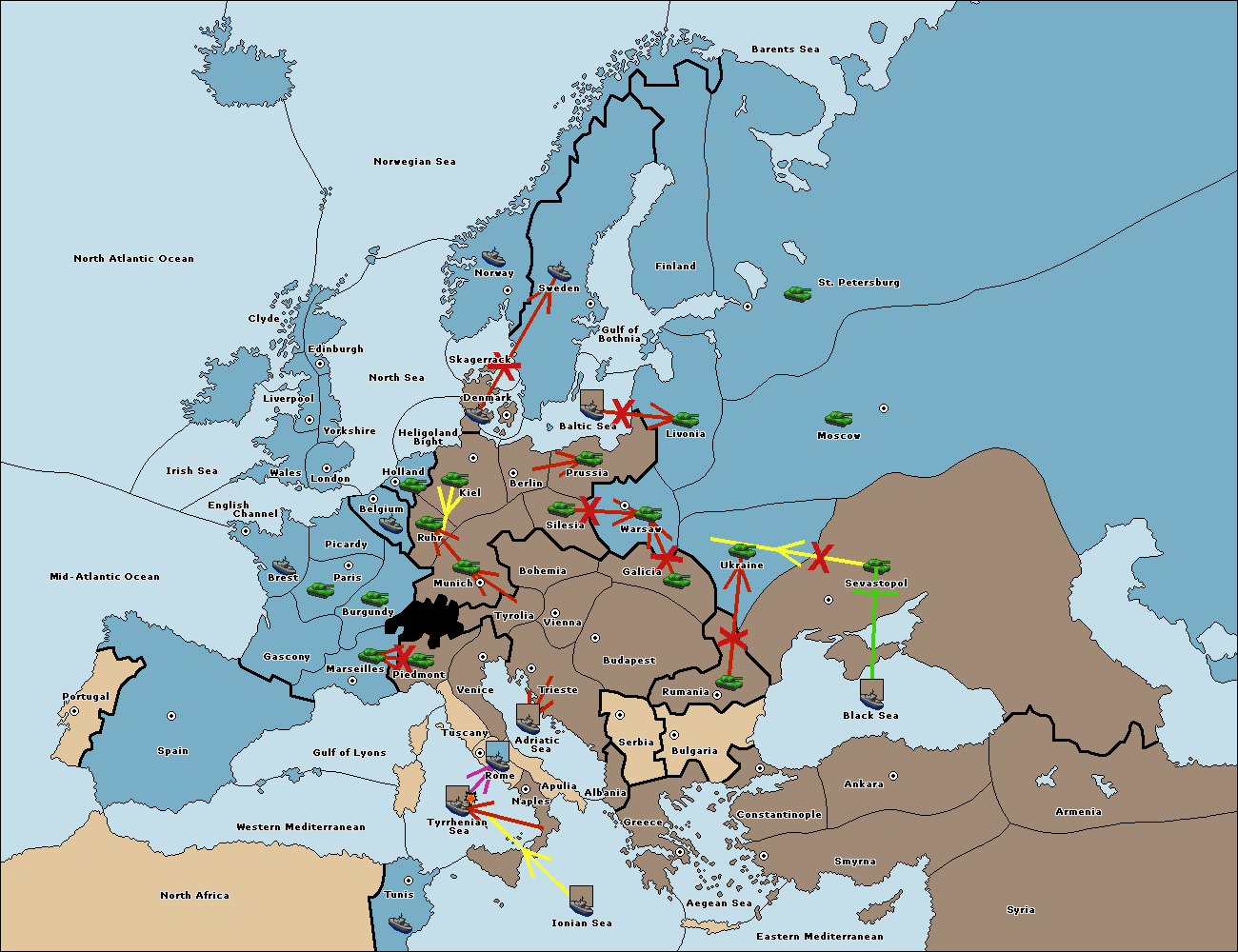 The fleet at St. Petersburg (South Coast) move to Livonia.