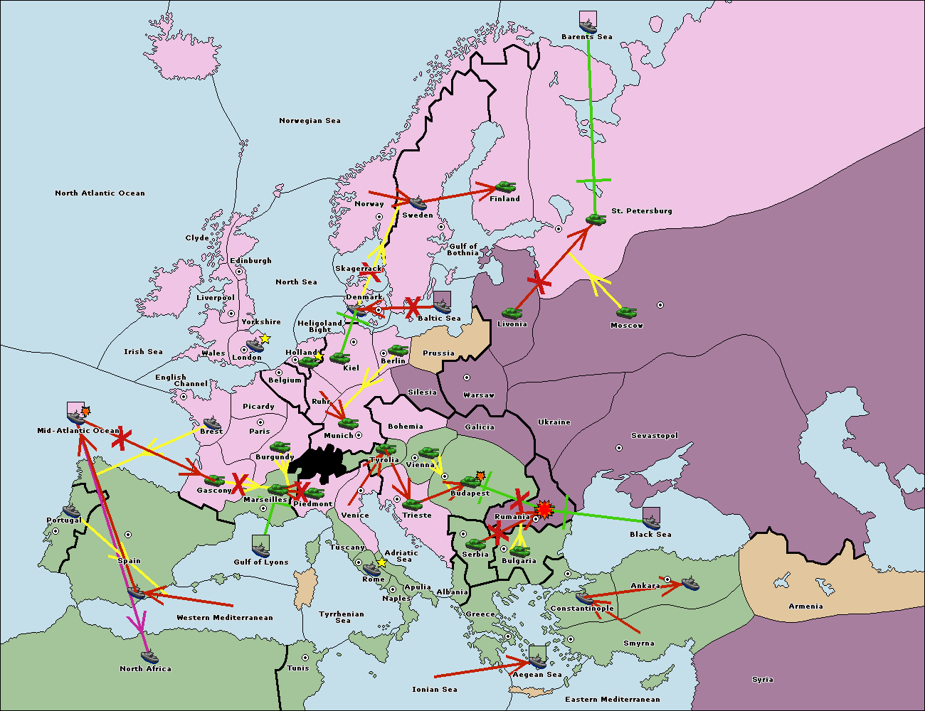 The fleet at Spain (South Coast) support hold to Marseilles.