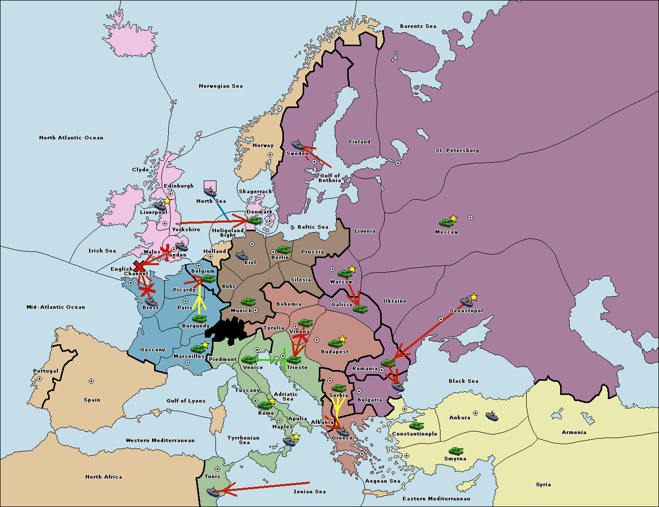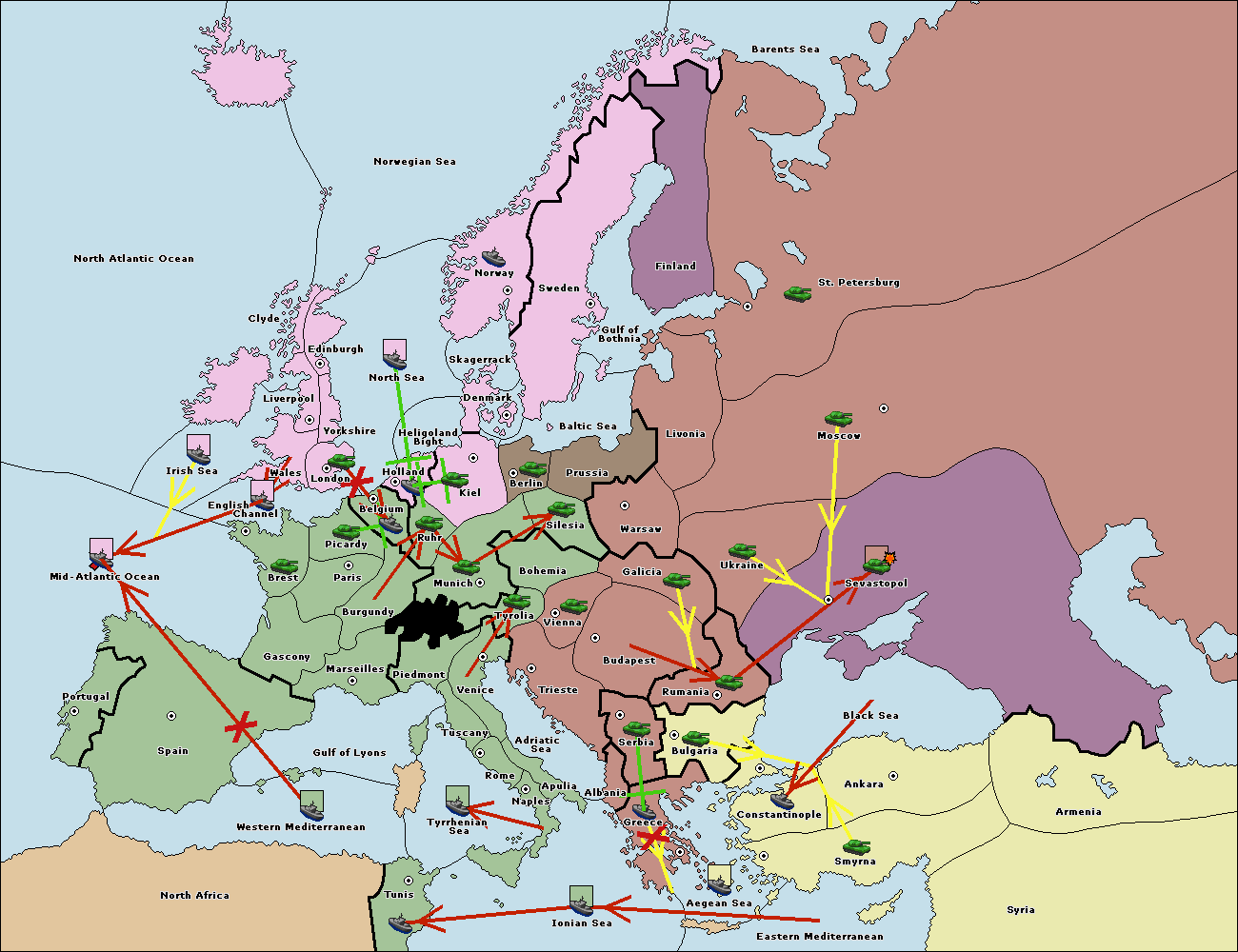 The fleet at Bulgaria (North Coast) move to Constantinople.