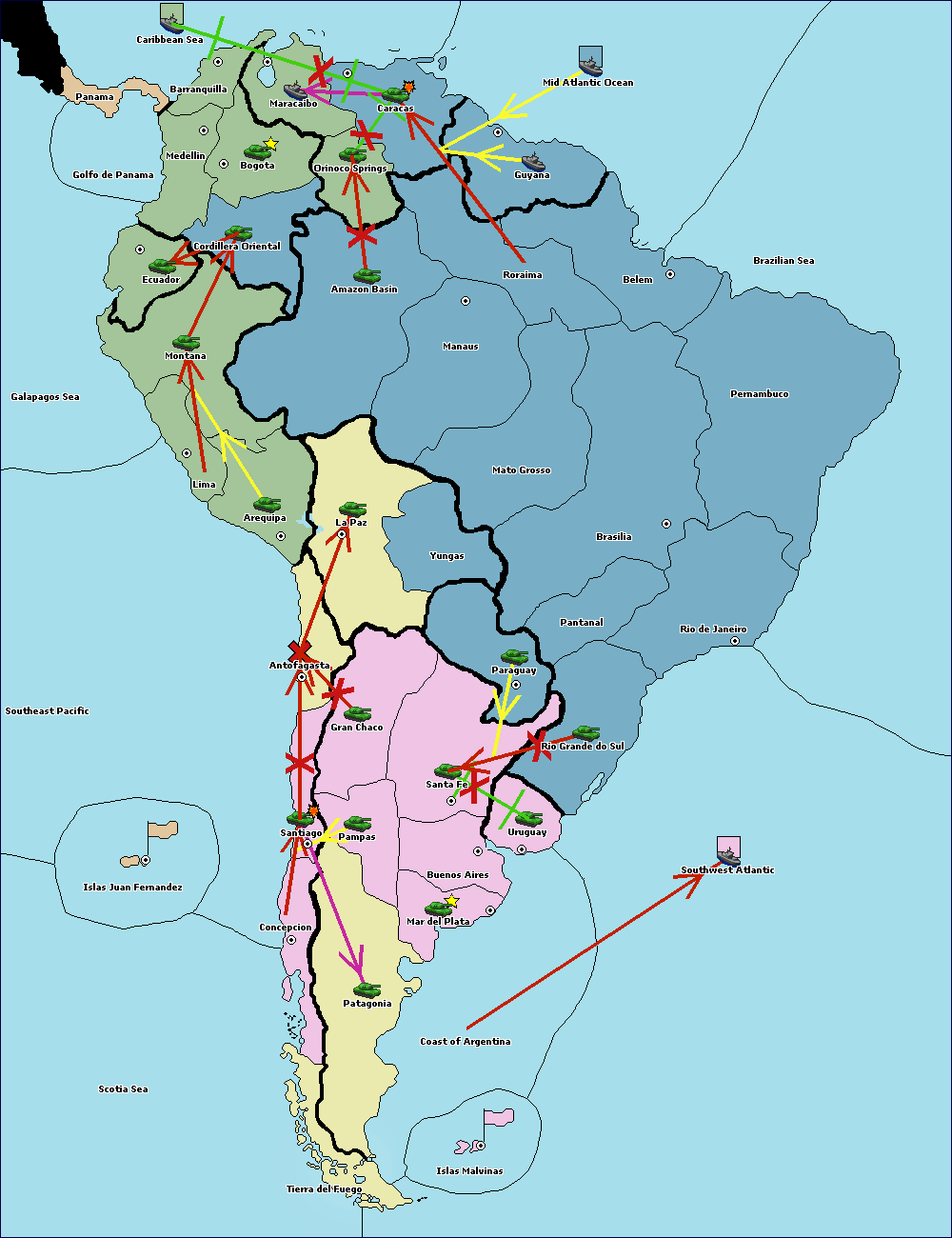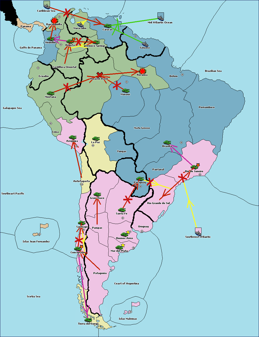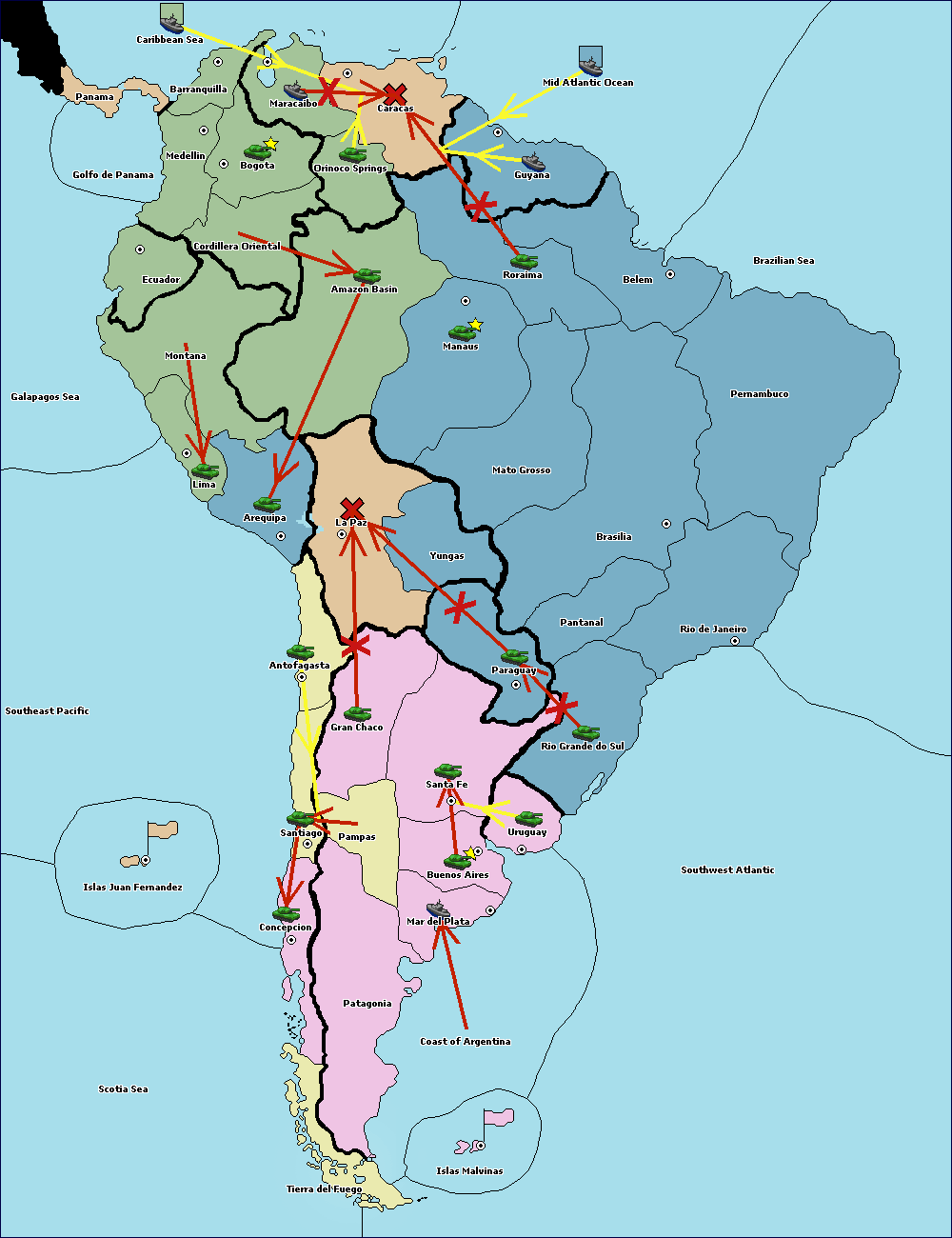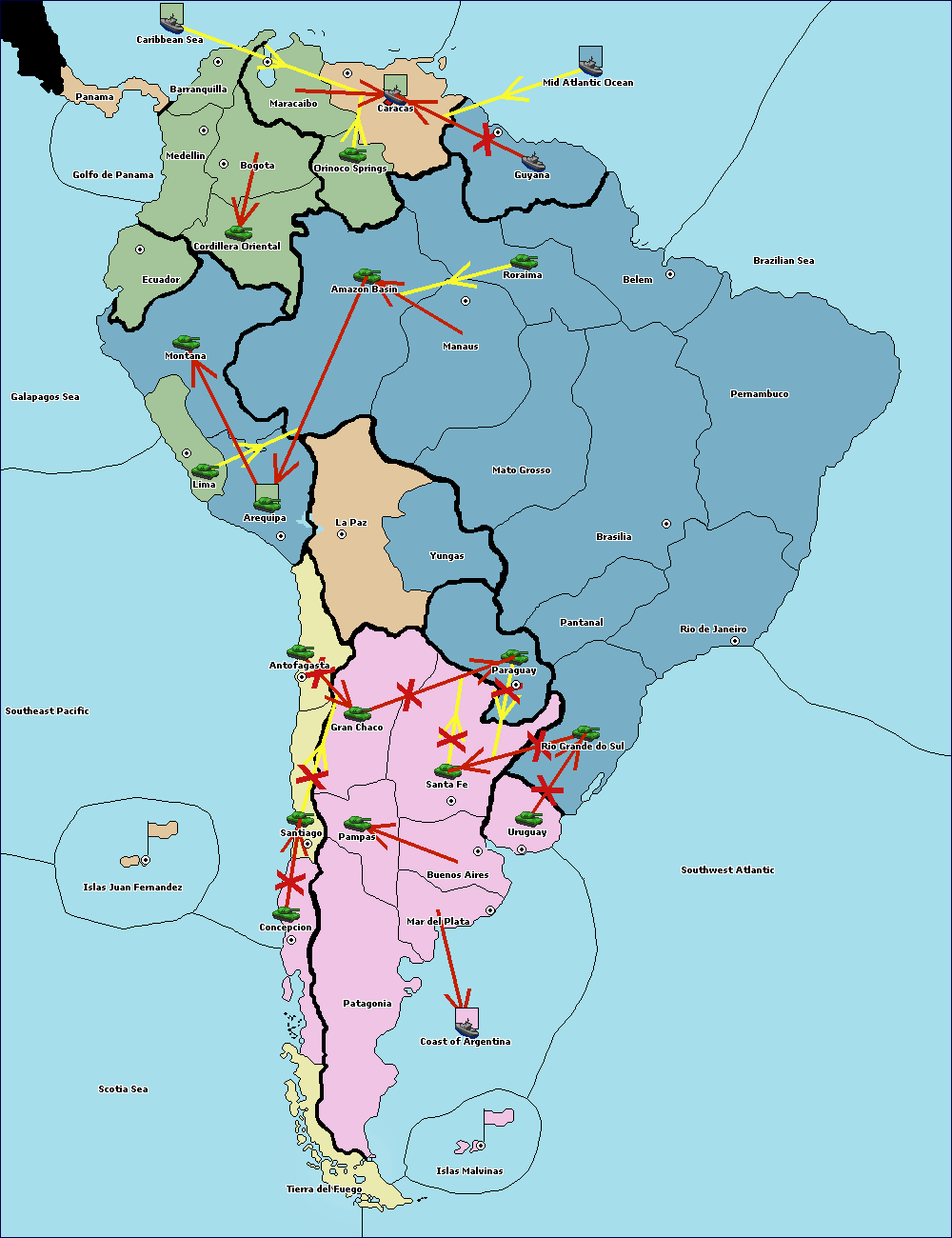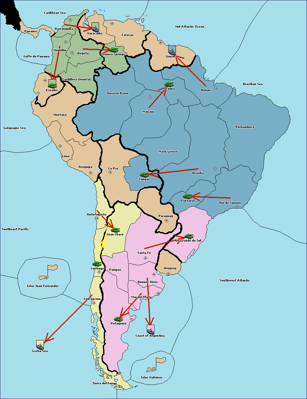 The army at Orinoco Springs support move to Amazon Basin from Arequipa.