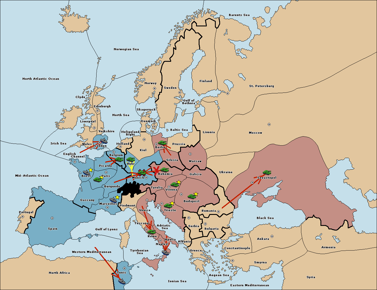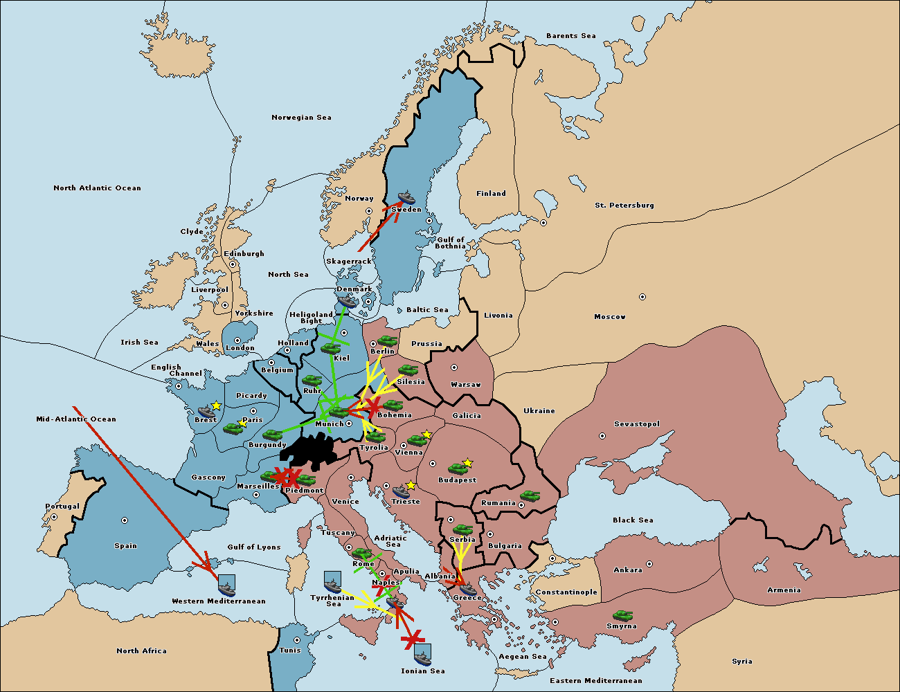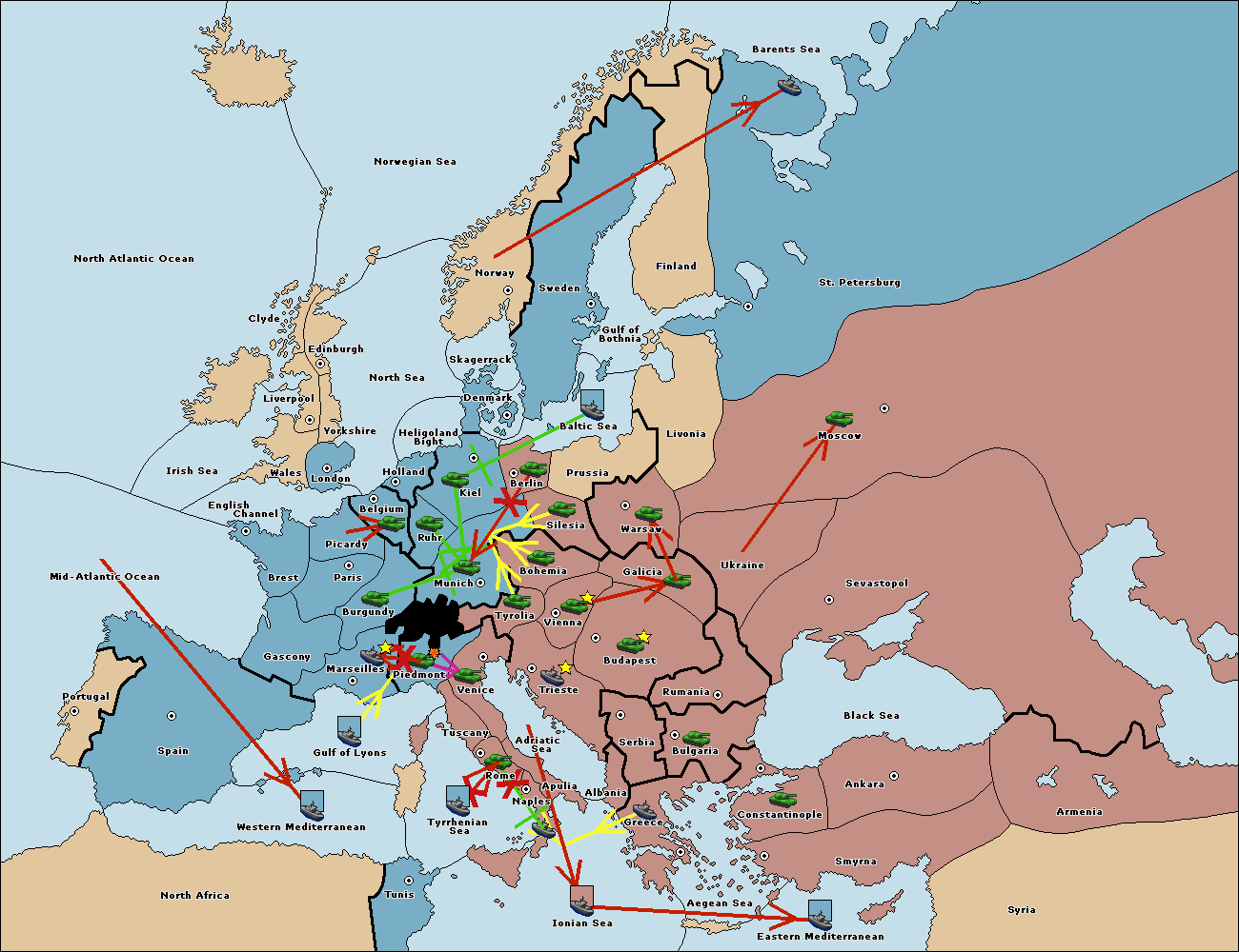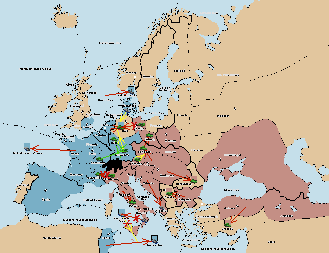 The fleet at Mid-Atlantic Ocean move to Western Mediterranean.