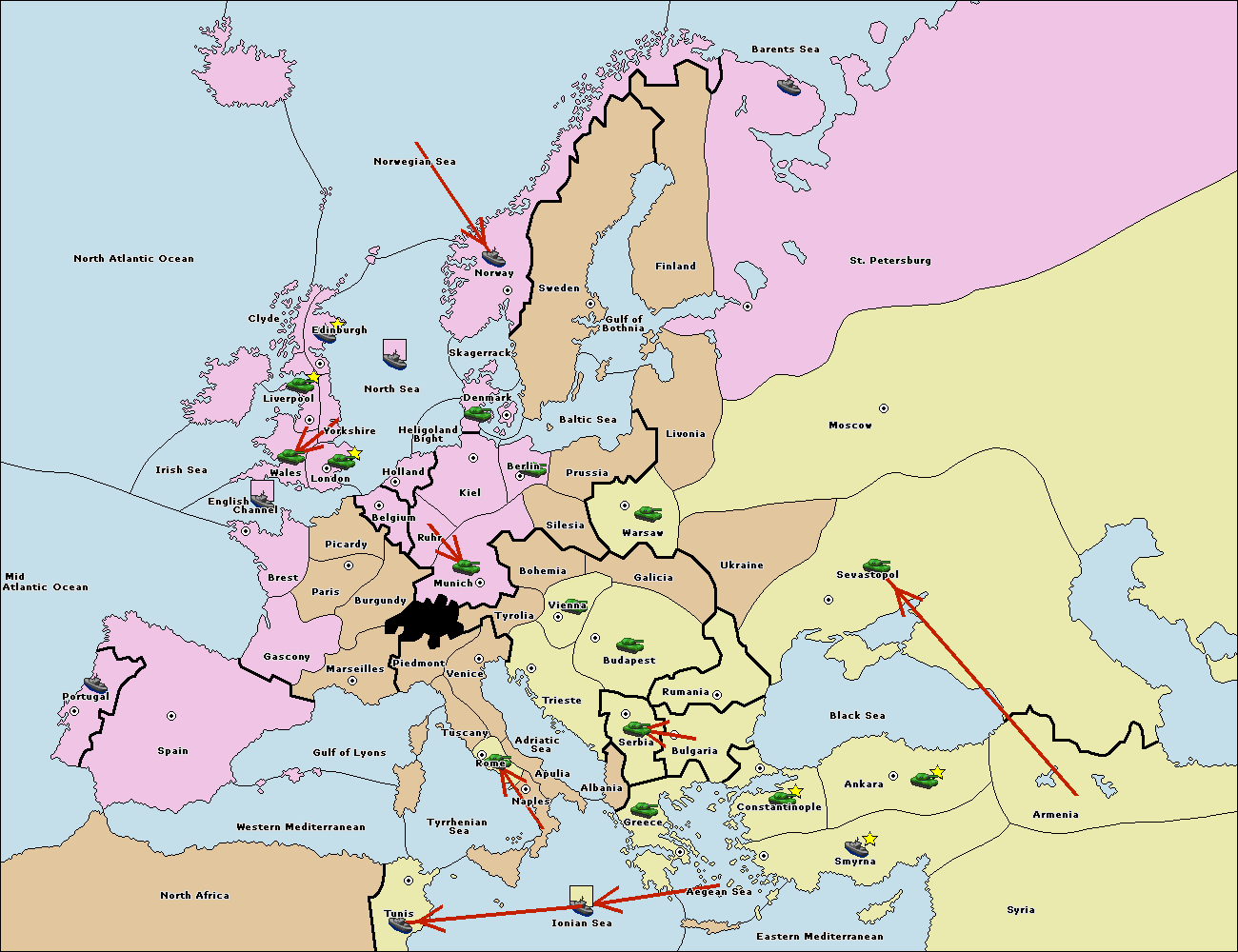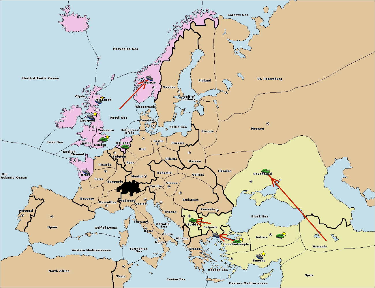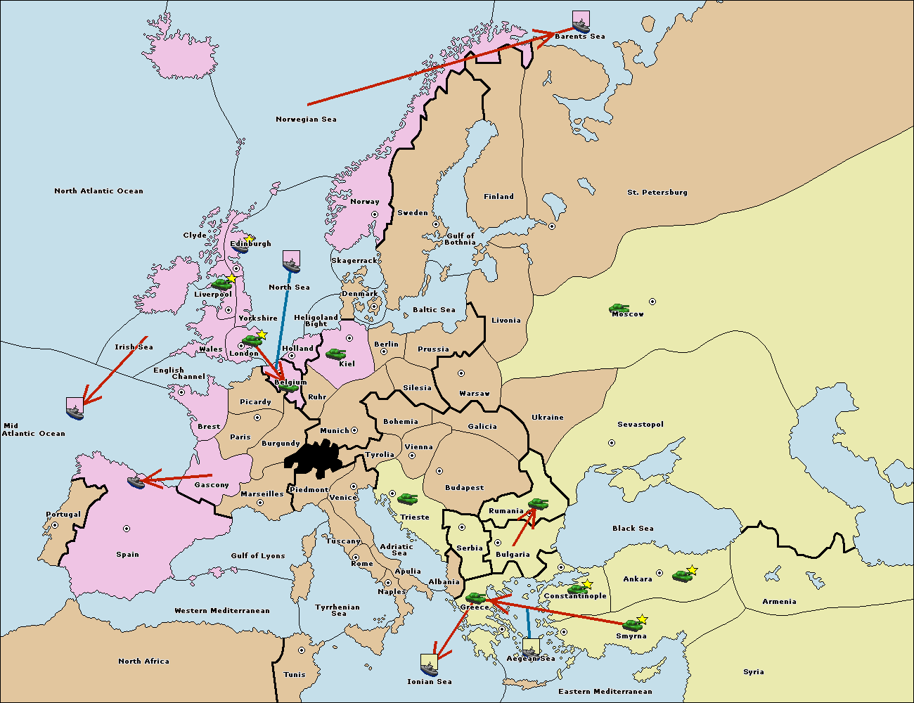 The fleet at Bulgaria (South Coast) move to Greece.