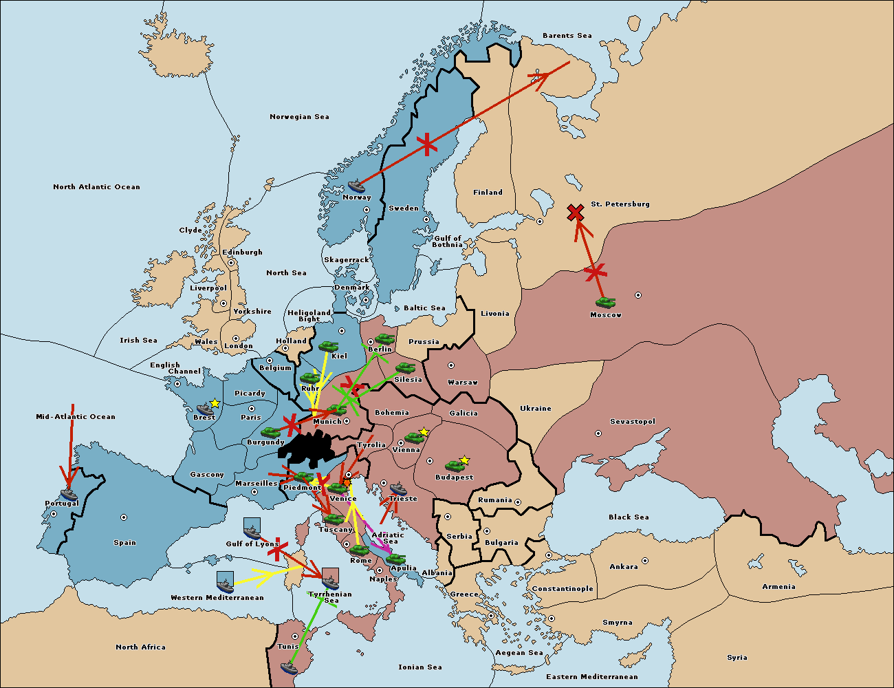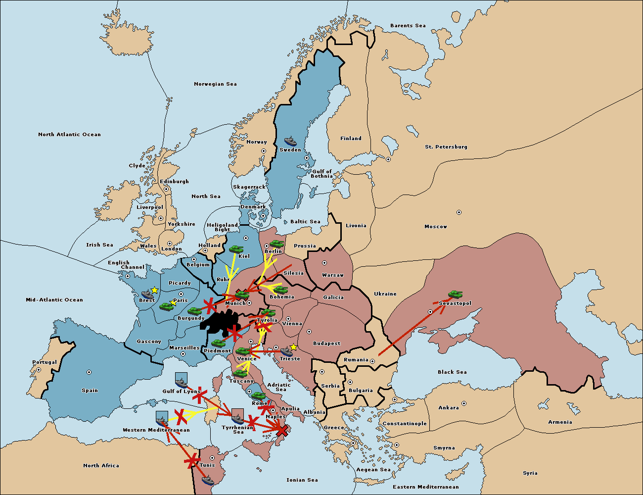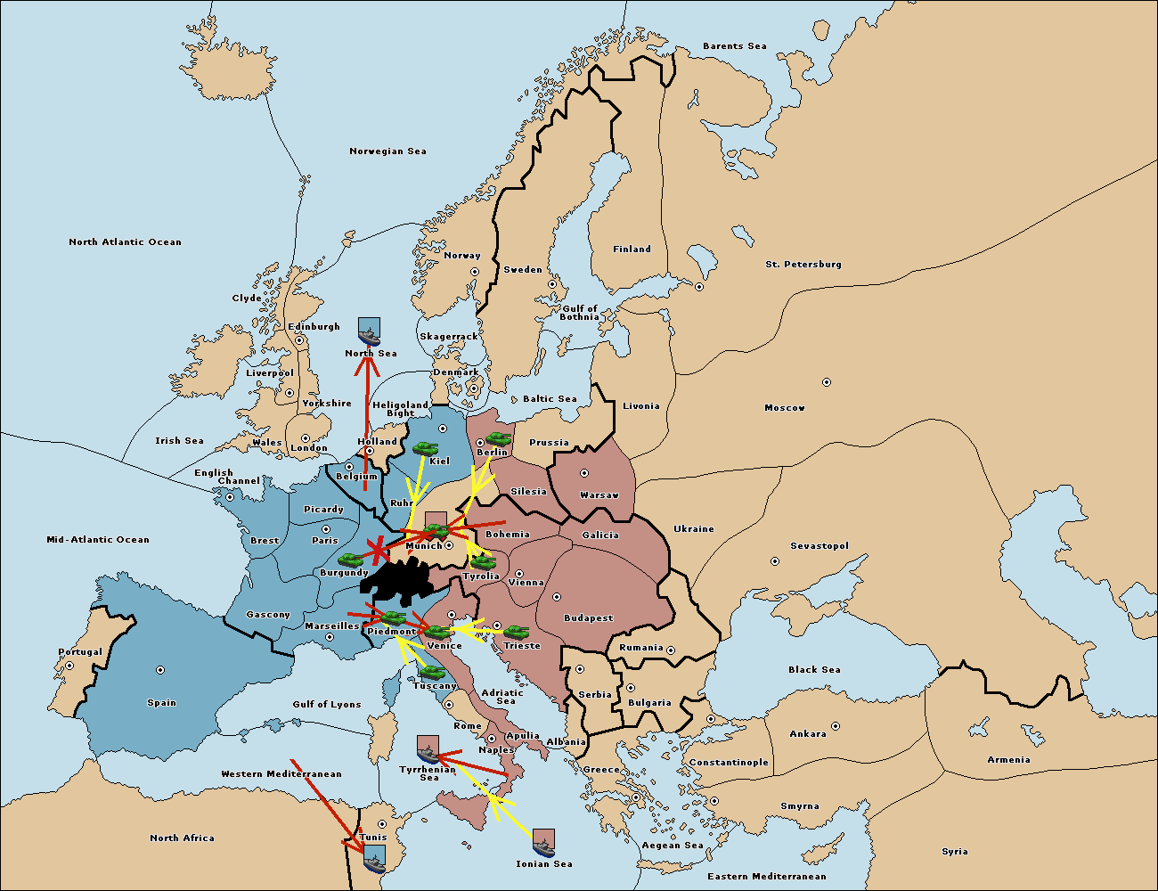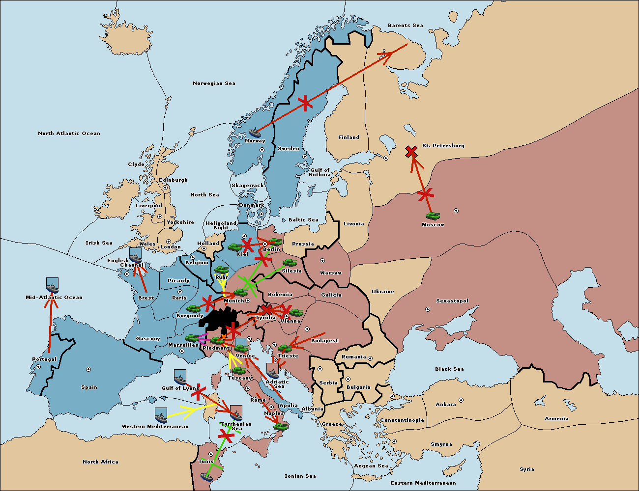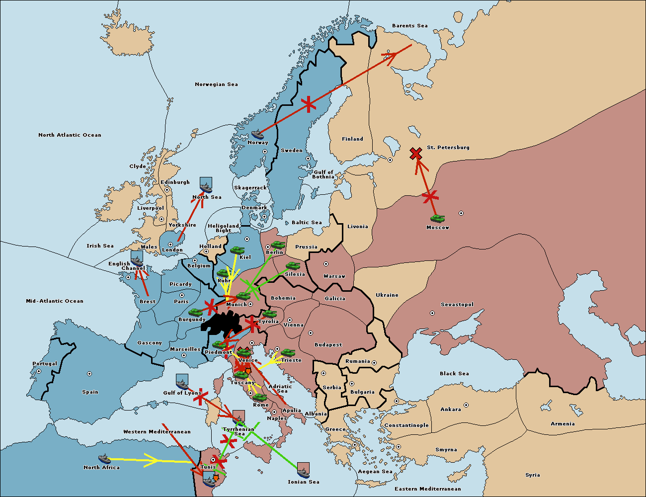 The fleet at Tyrrhenian Sea support hold to Tunis.