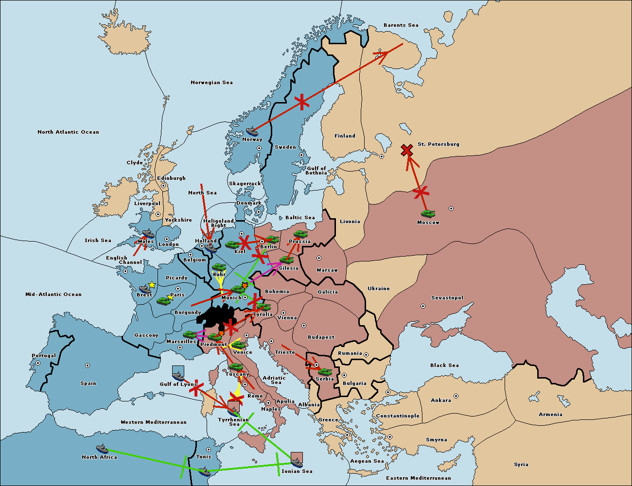 The army at Tyrolia support move to Munich from Berlin.