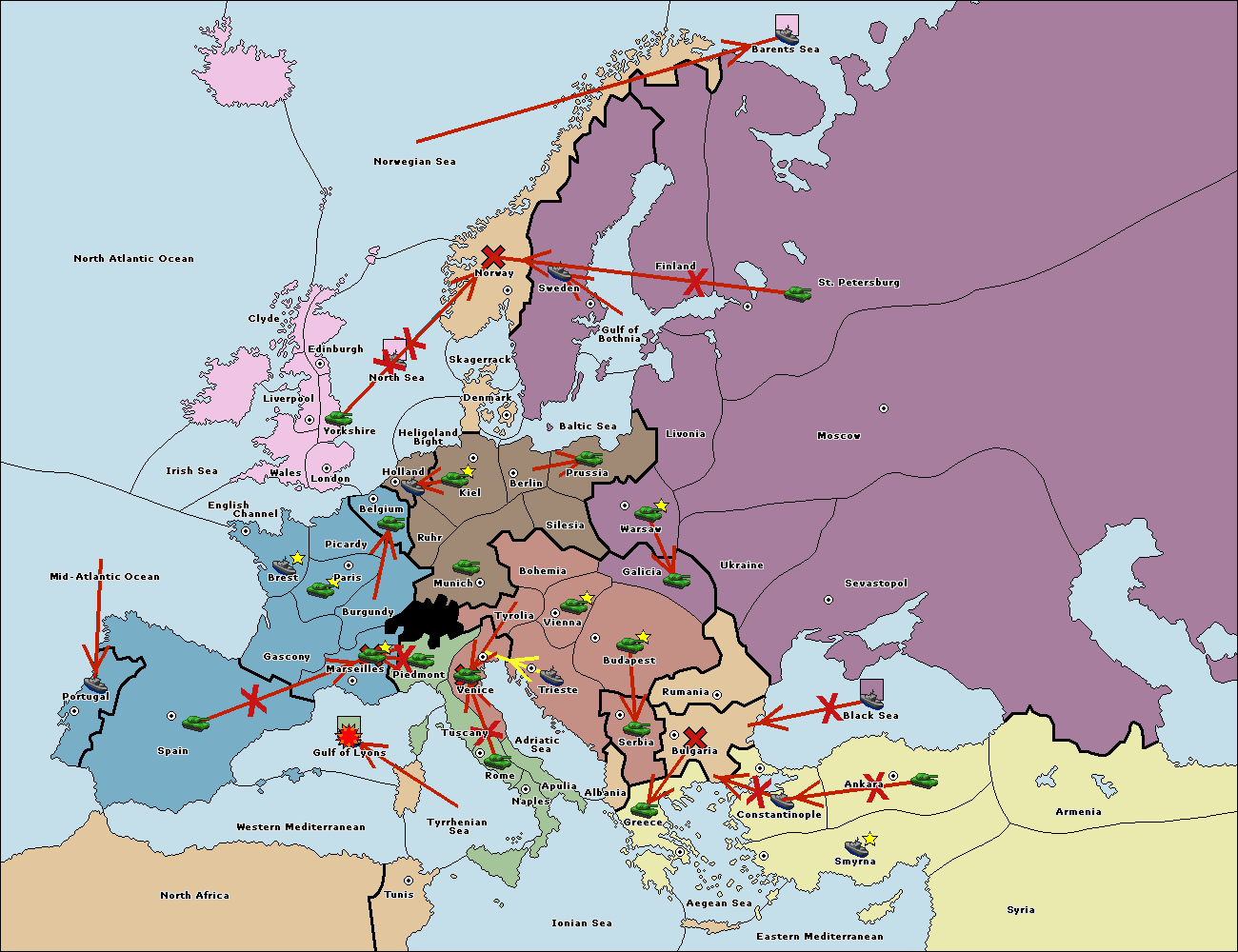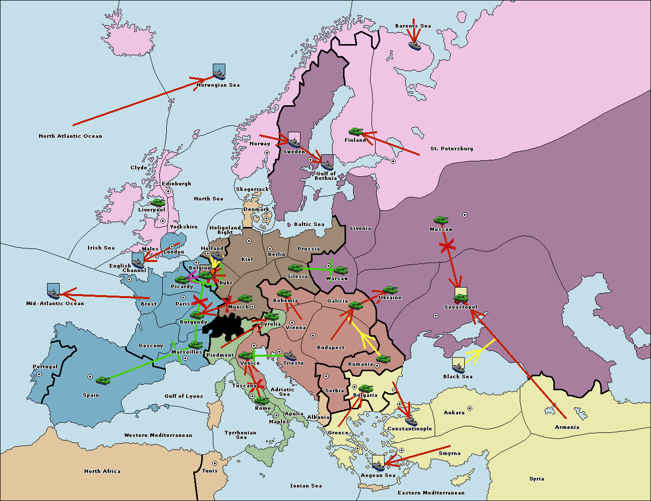 The fleet at Bulgaria (North Coast) move to Constantinople.