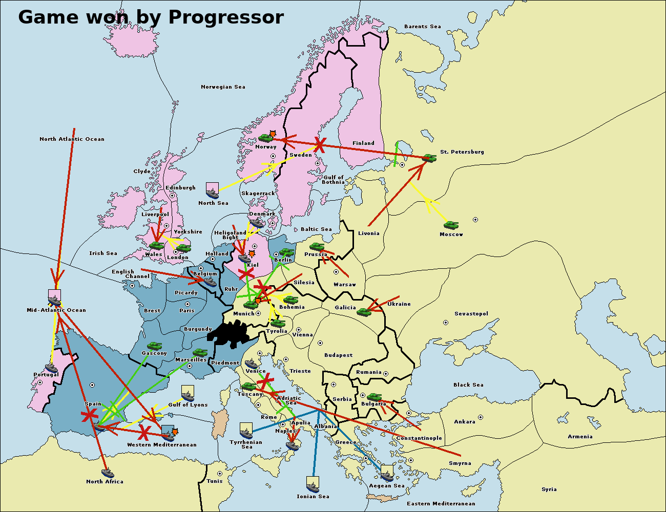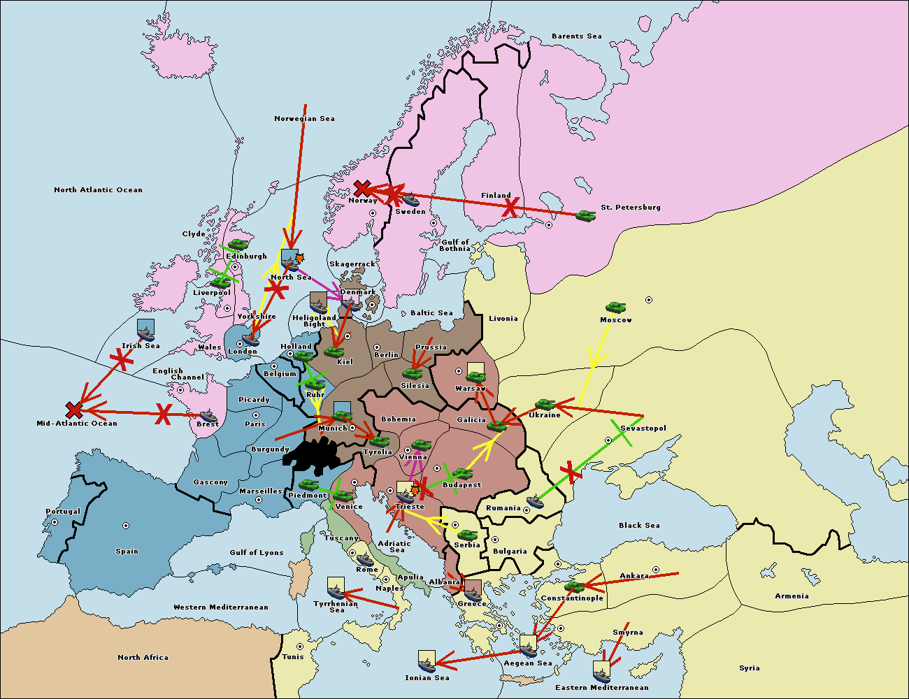The fleet at North Africa move to Mid-Atlantic Ocean.