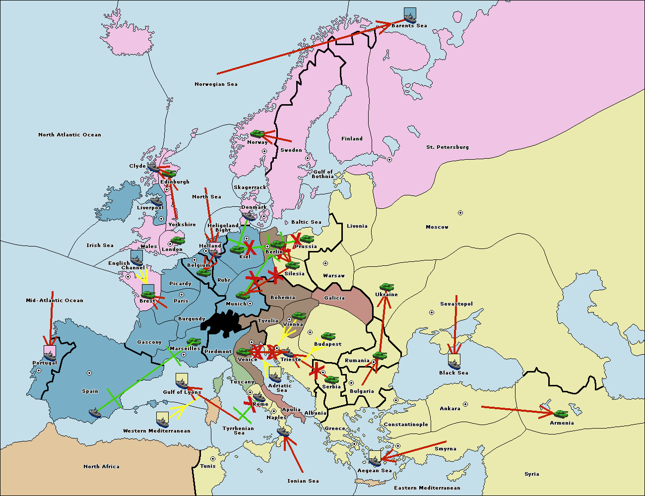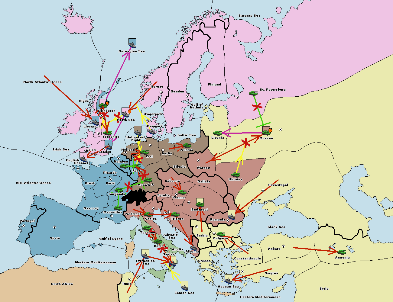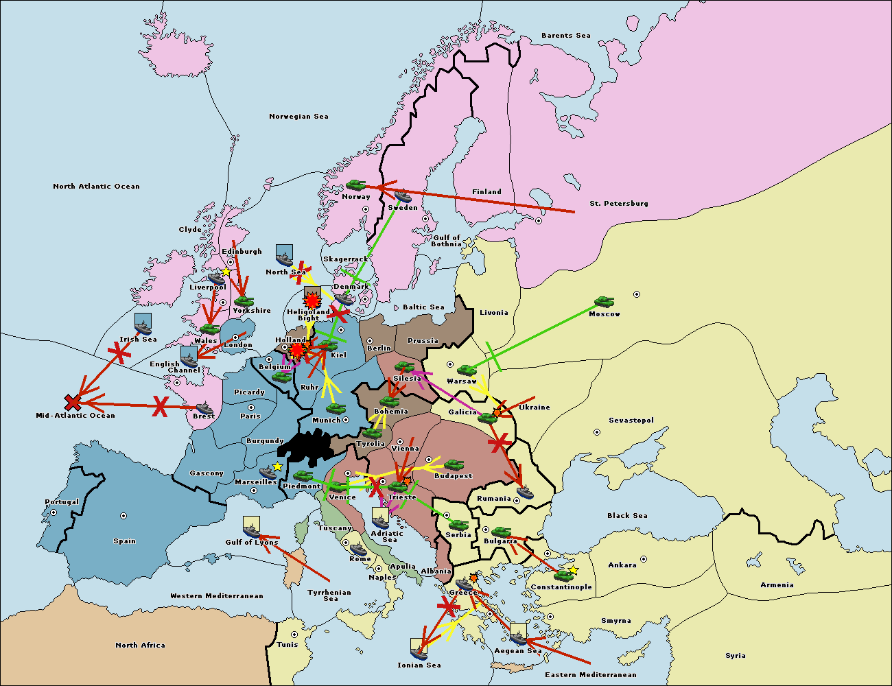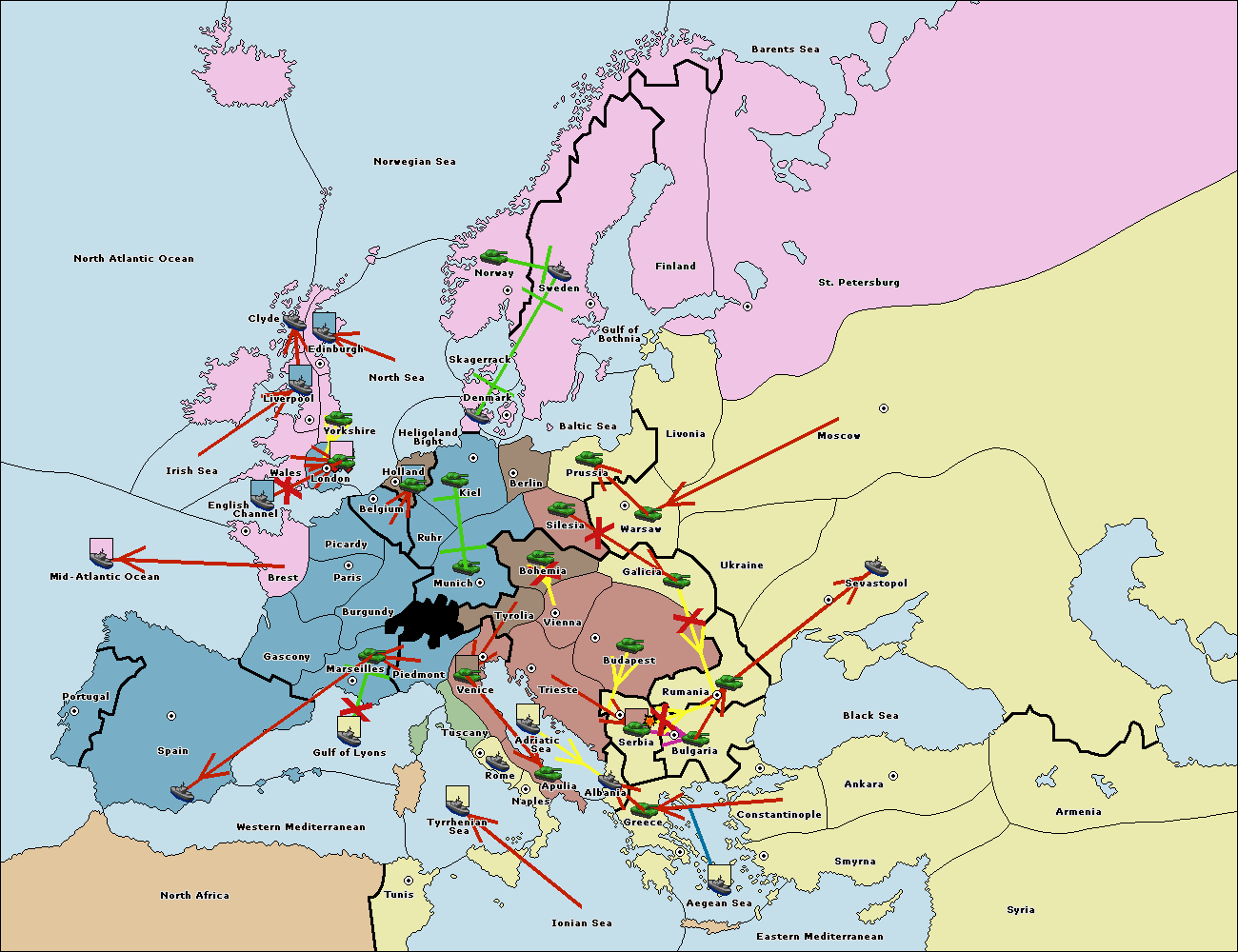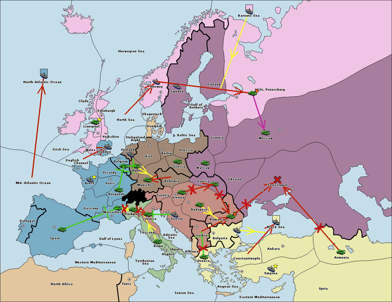 The fleet at Bulgaria (North Coast) support move to Black Sea from Constantinople.
