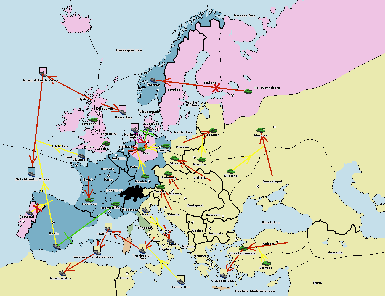 The fleet at Spain (South Coast) support move to Western Mediterranean from Mid-Atlantic Ocean.