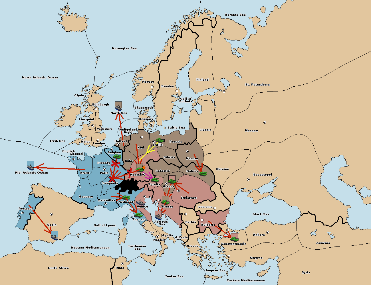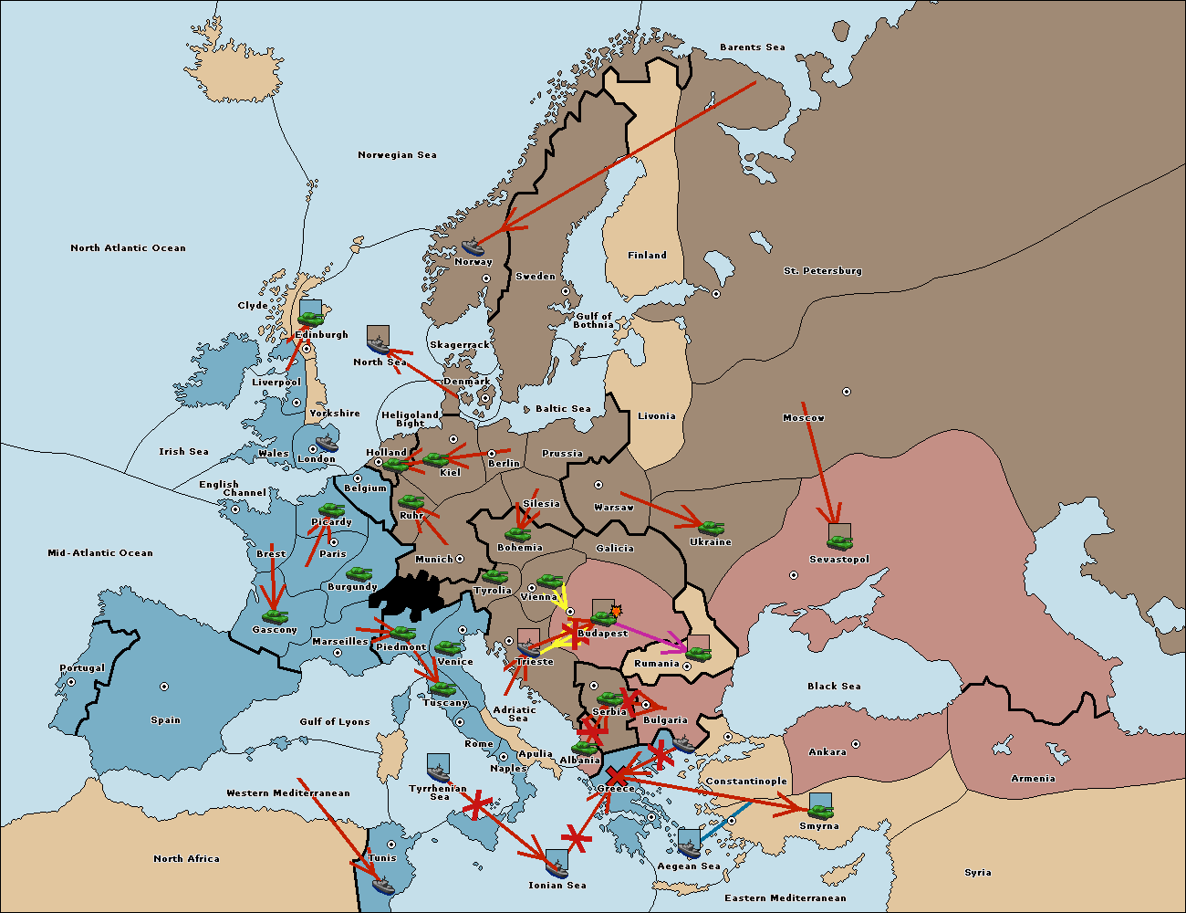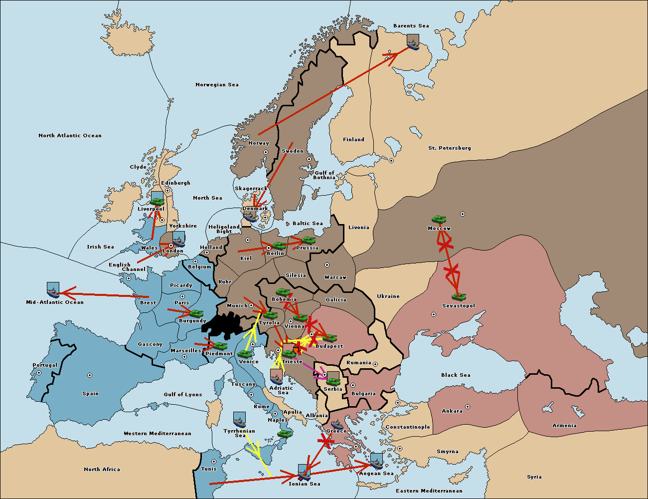 The fleet at Adriatic Sea support move to Trieste from Tyrolia.