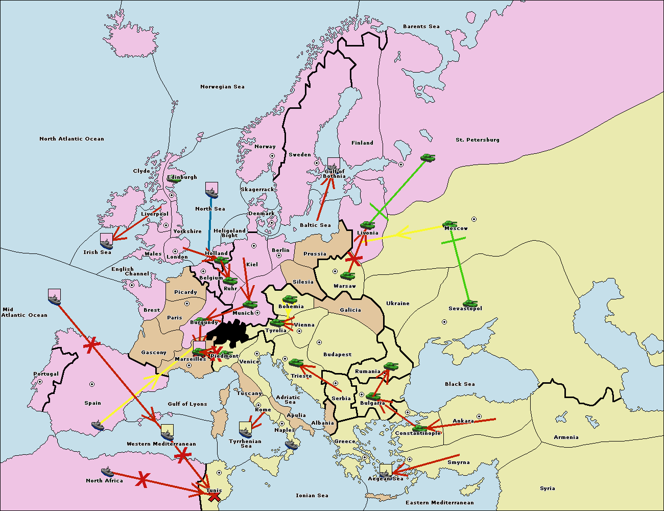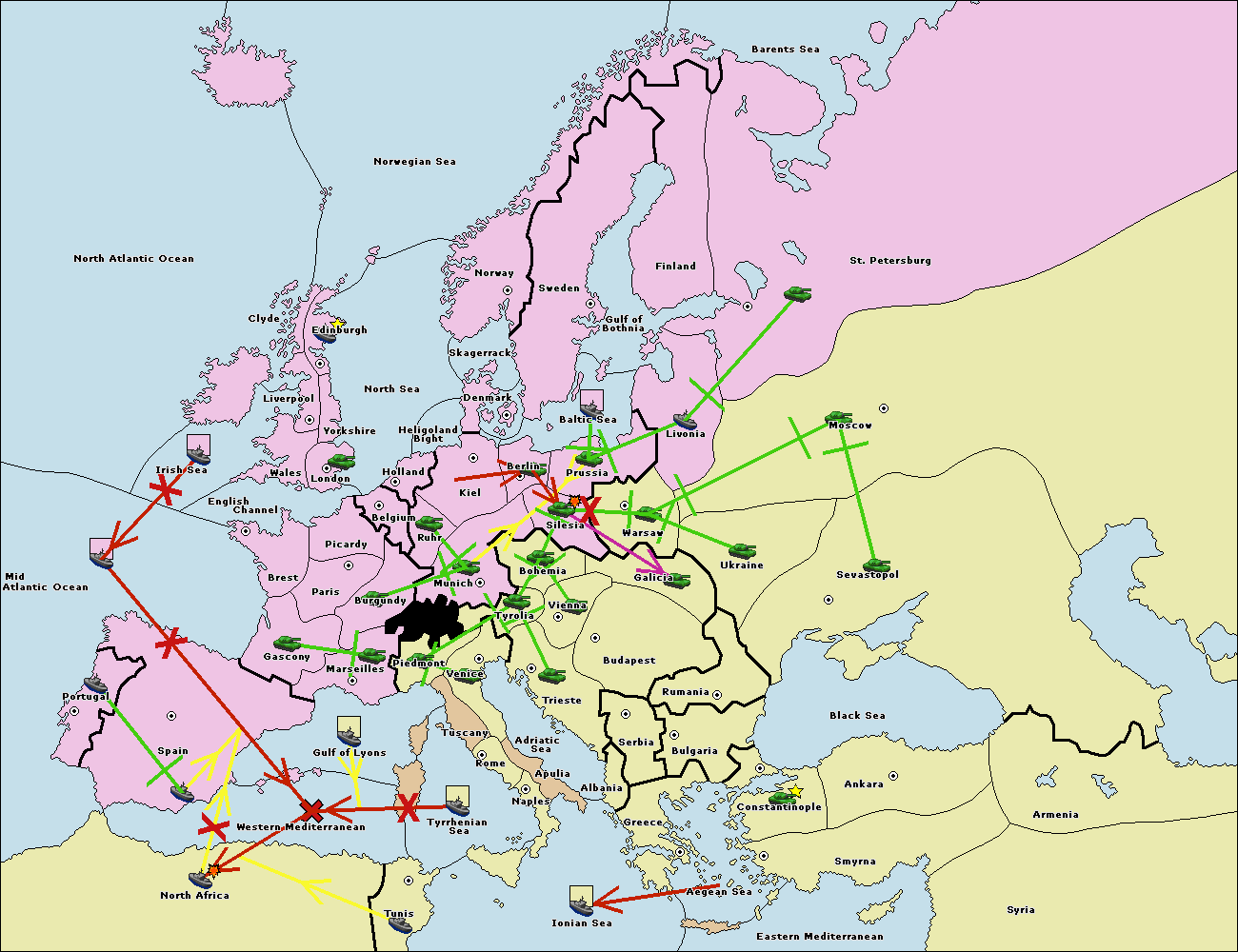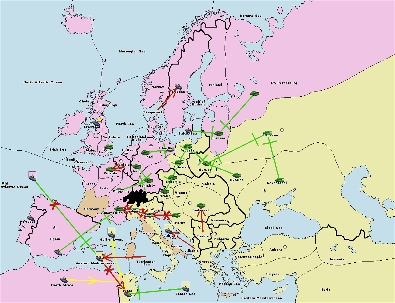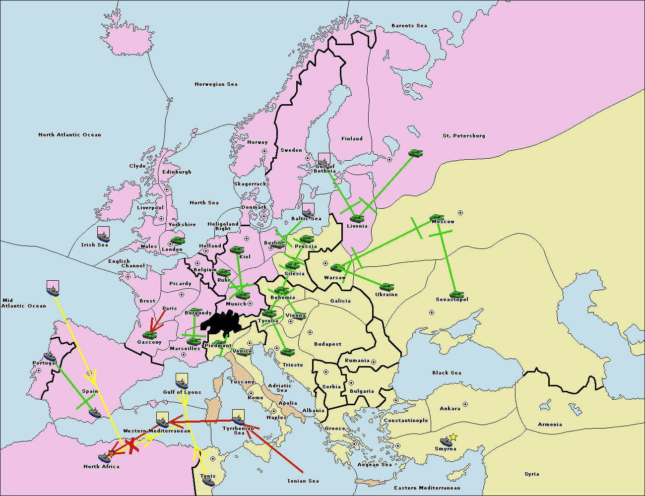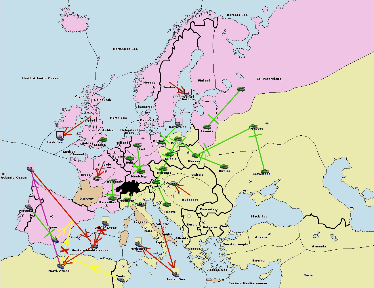 The fleet at Mid-Atlantic Ocean move to Western Mediterranean.