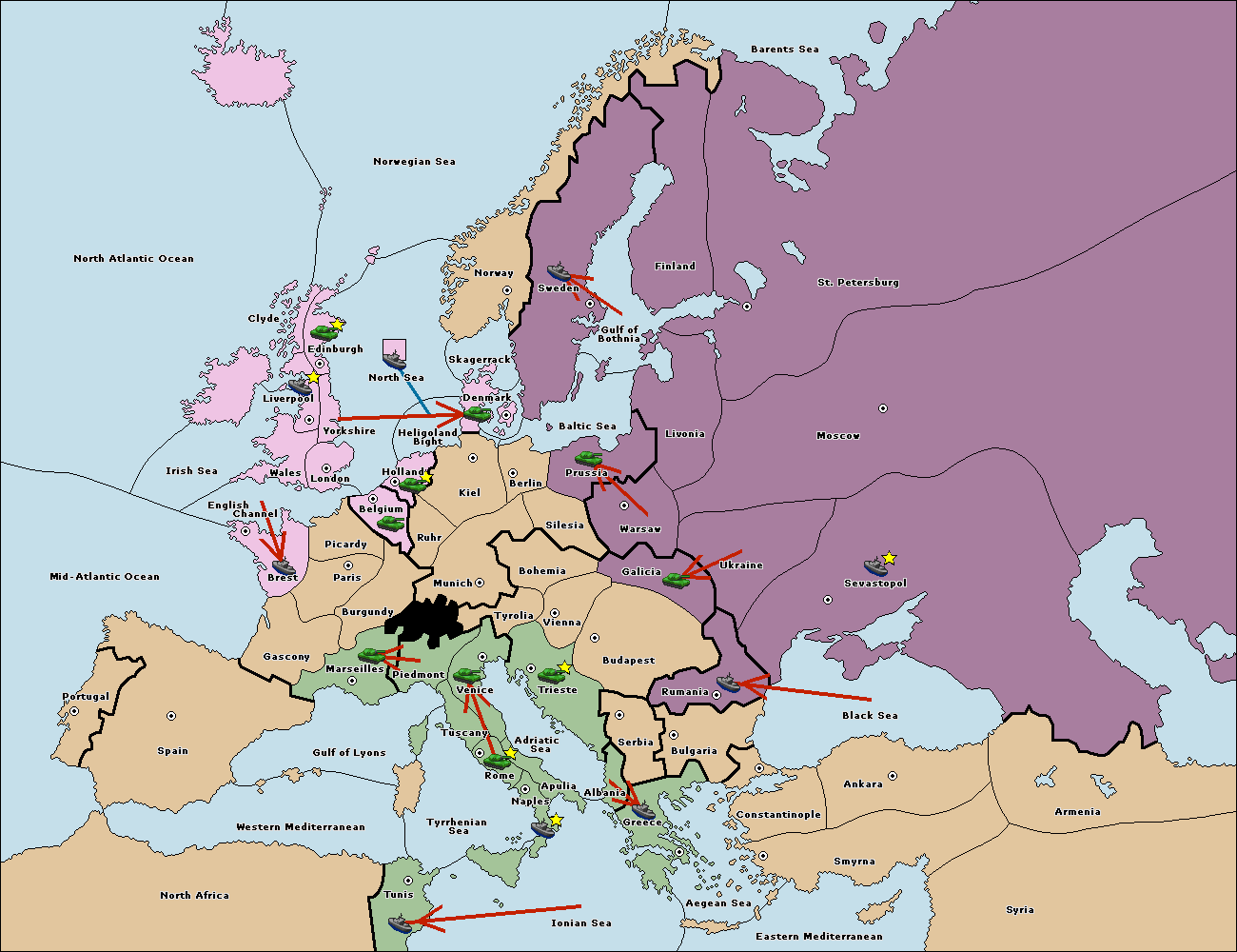 The fleet at Greece move to Bulgaria (South Coast).
