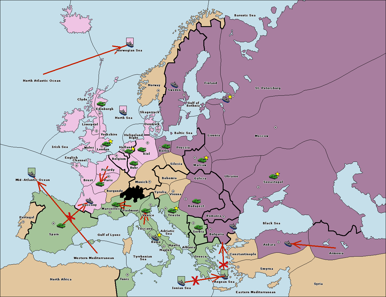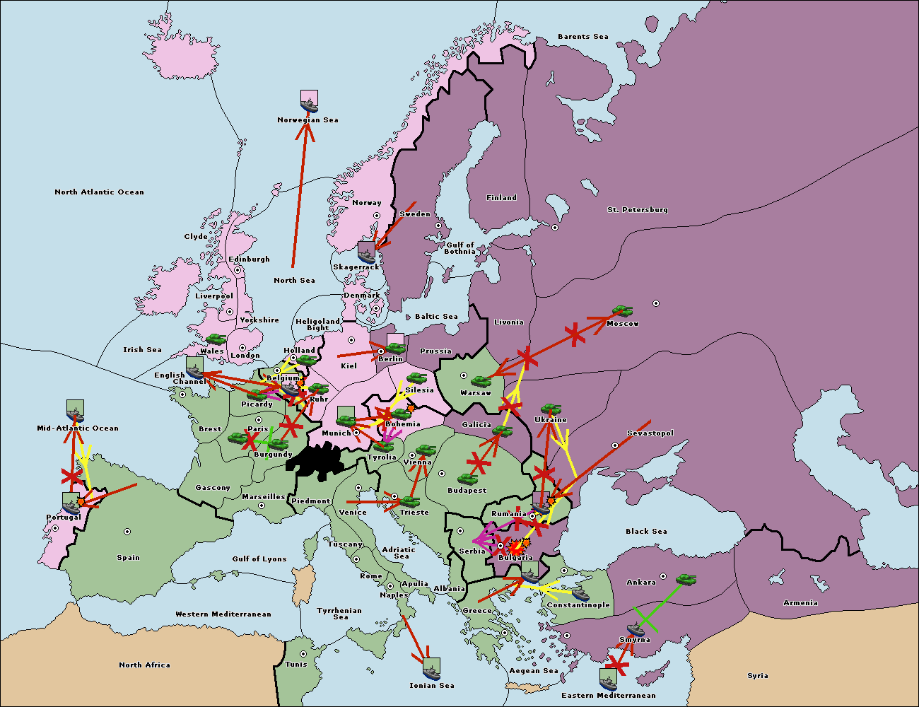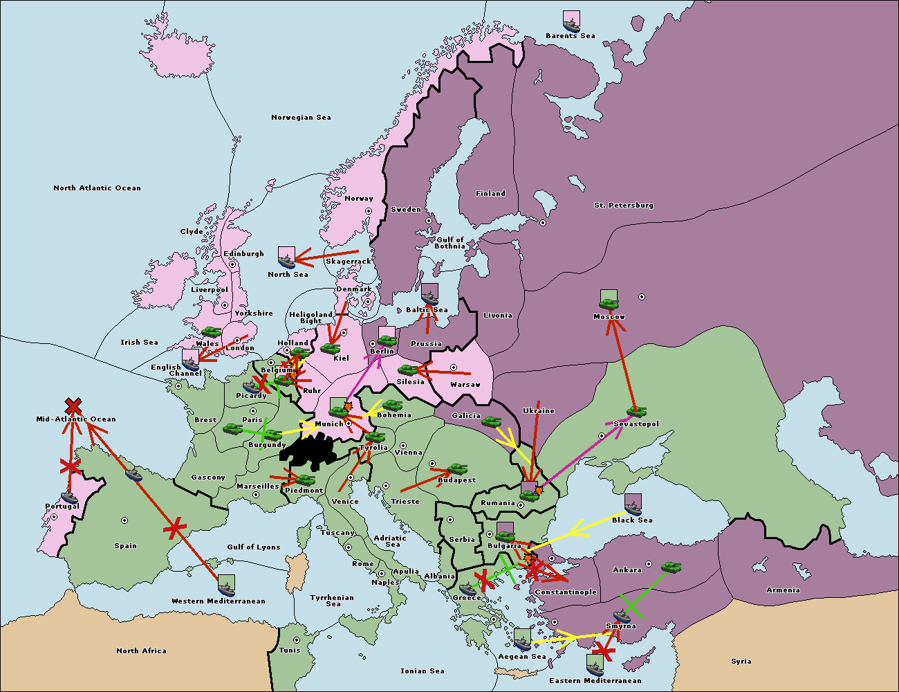 The fleet at Bulgaria (South Coast) support move to Constantinople from Smyrna.