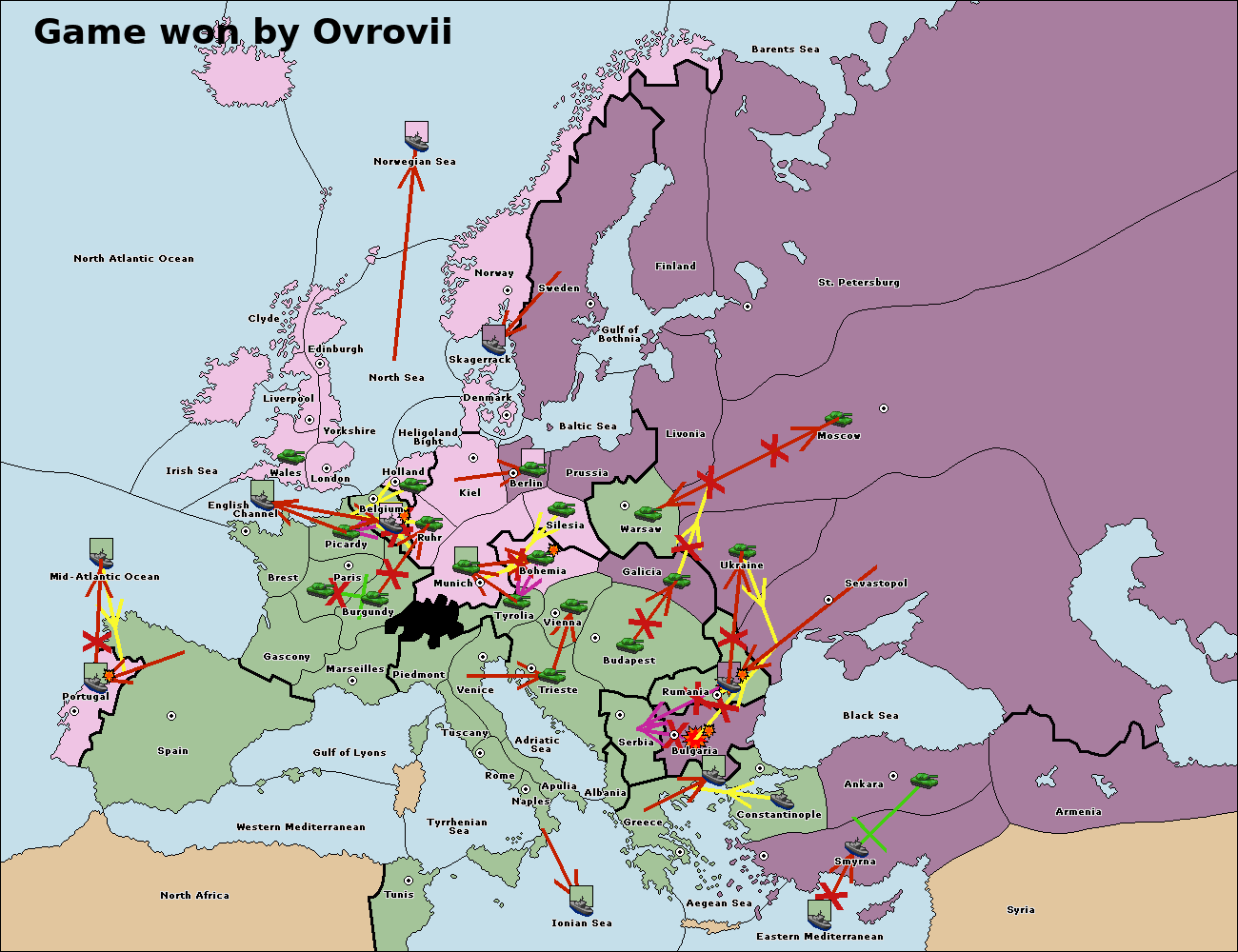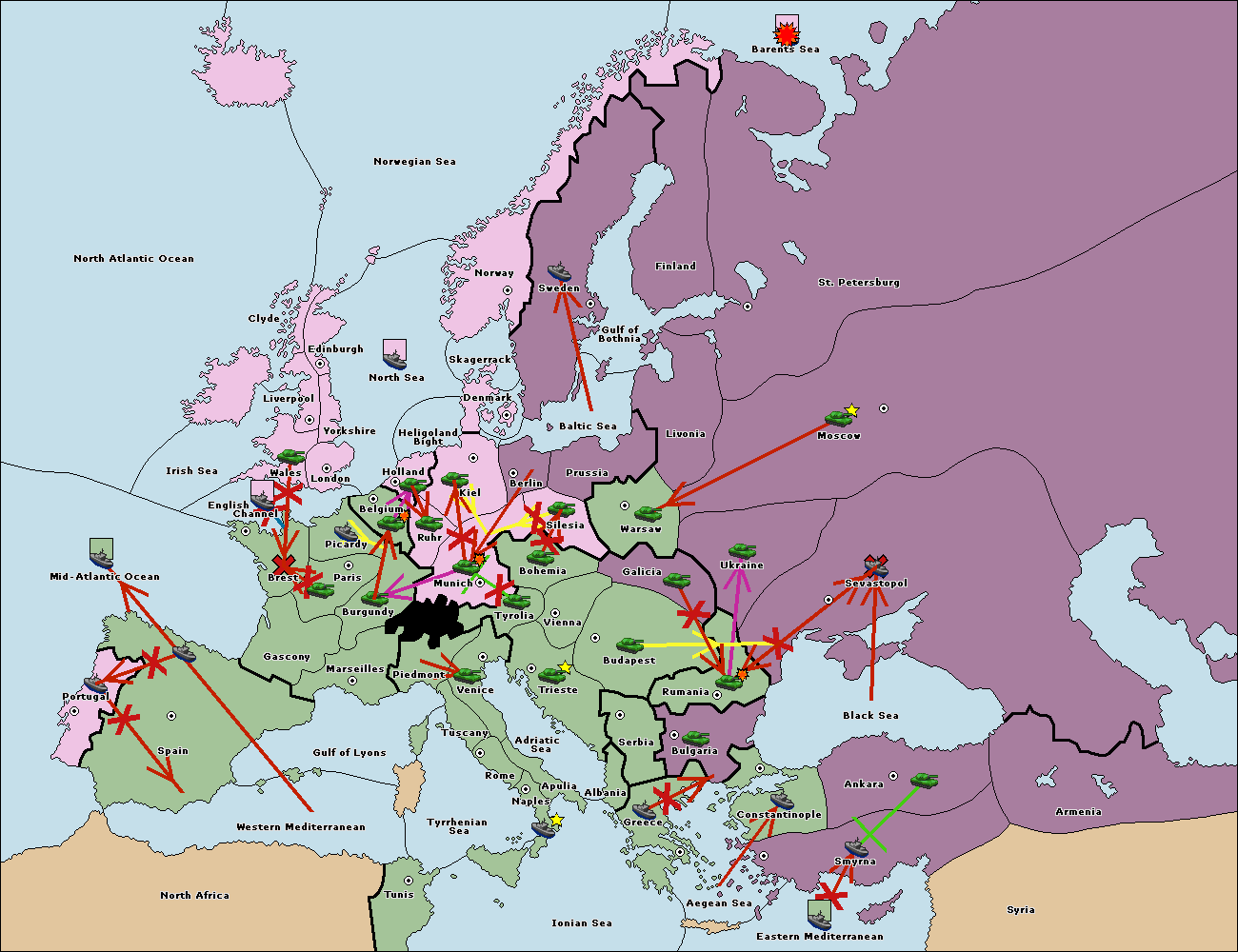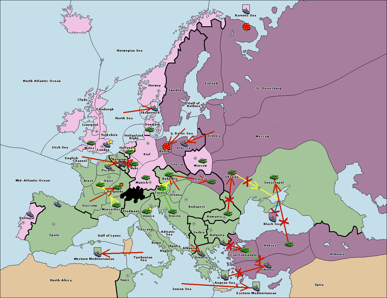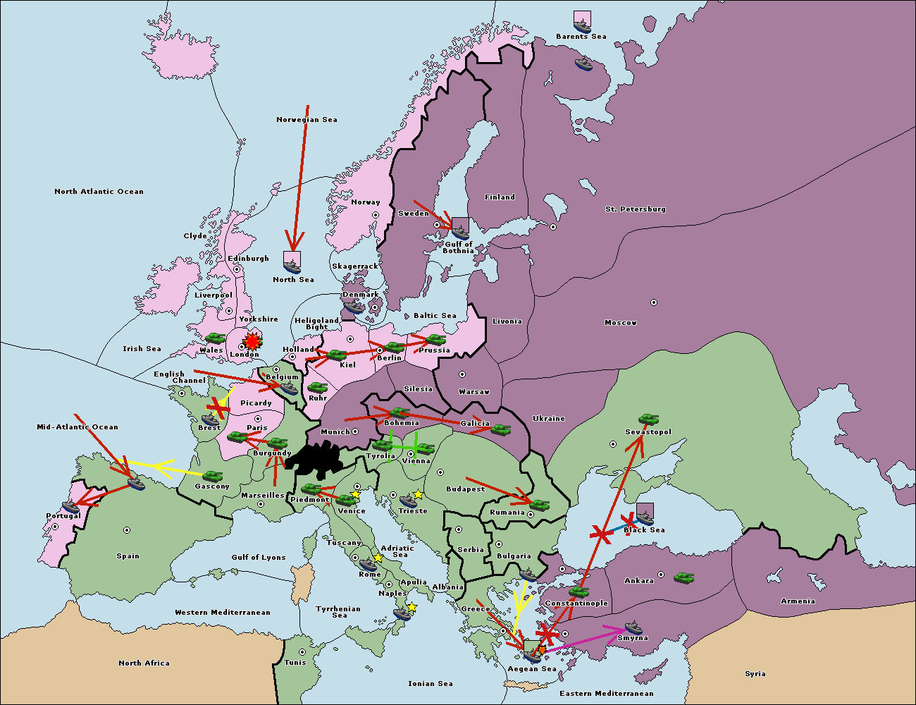 The fleet at Bulgaria (South Coast) support move to Constantinople from Smyrna.