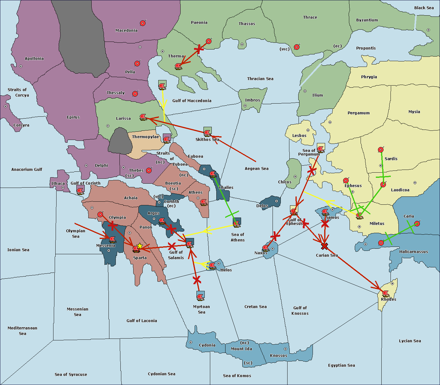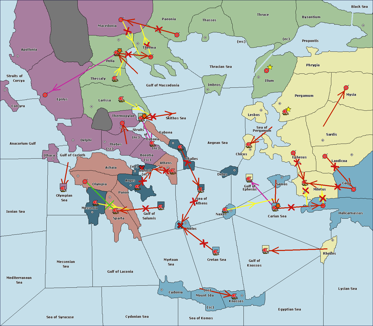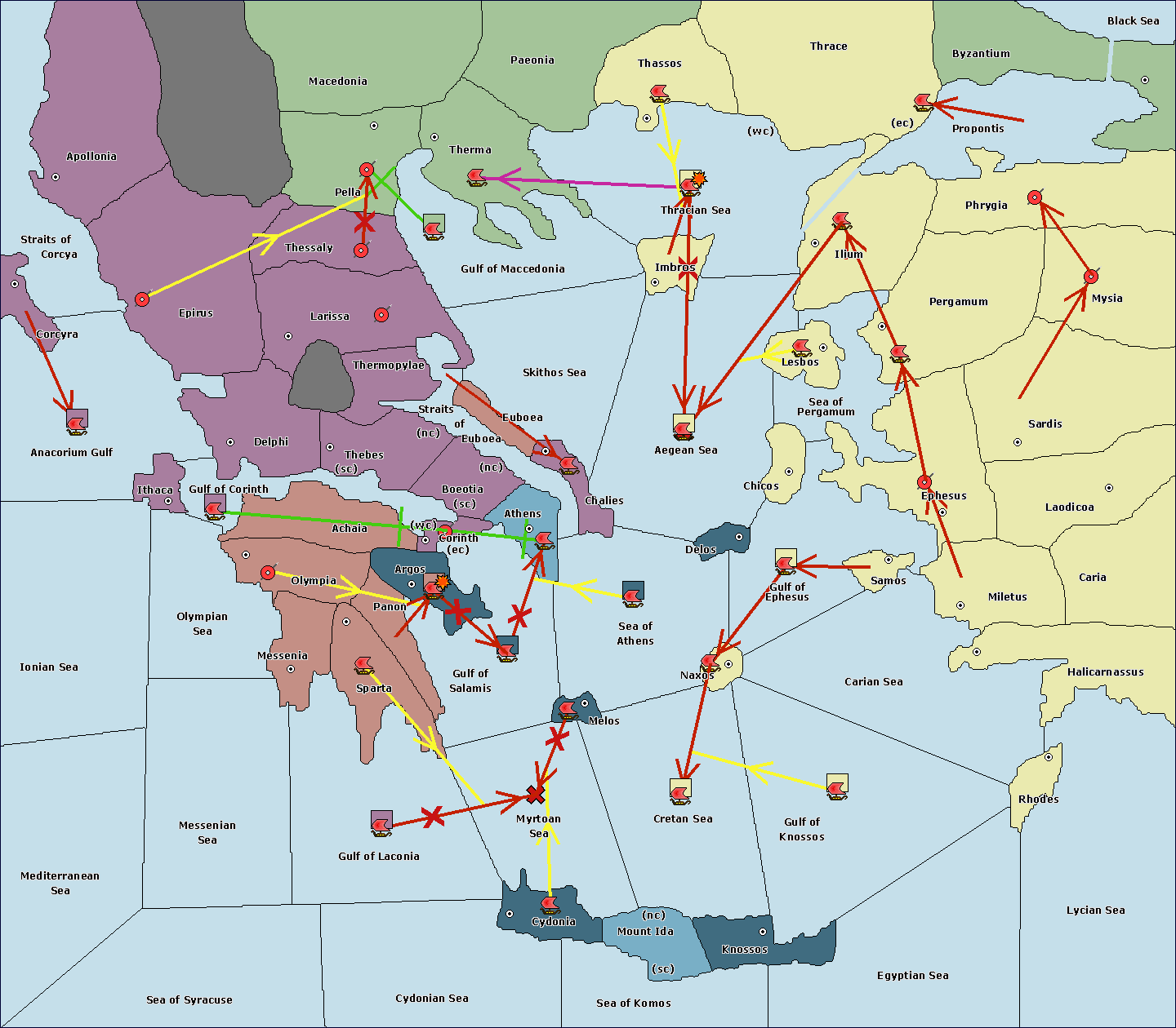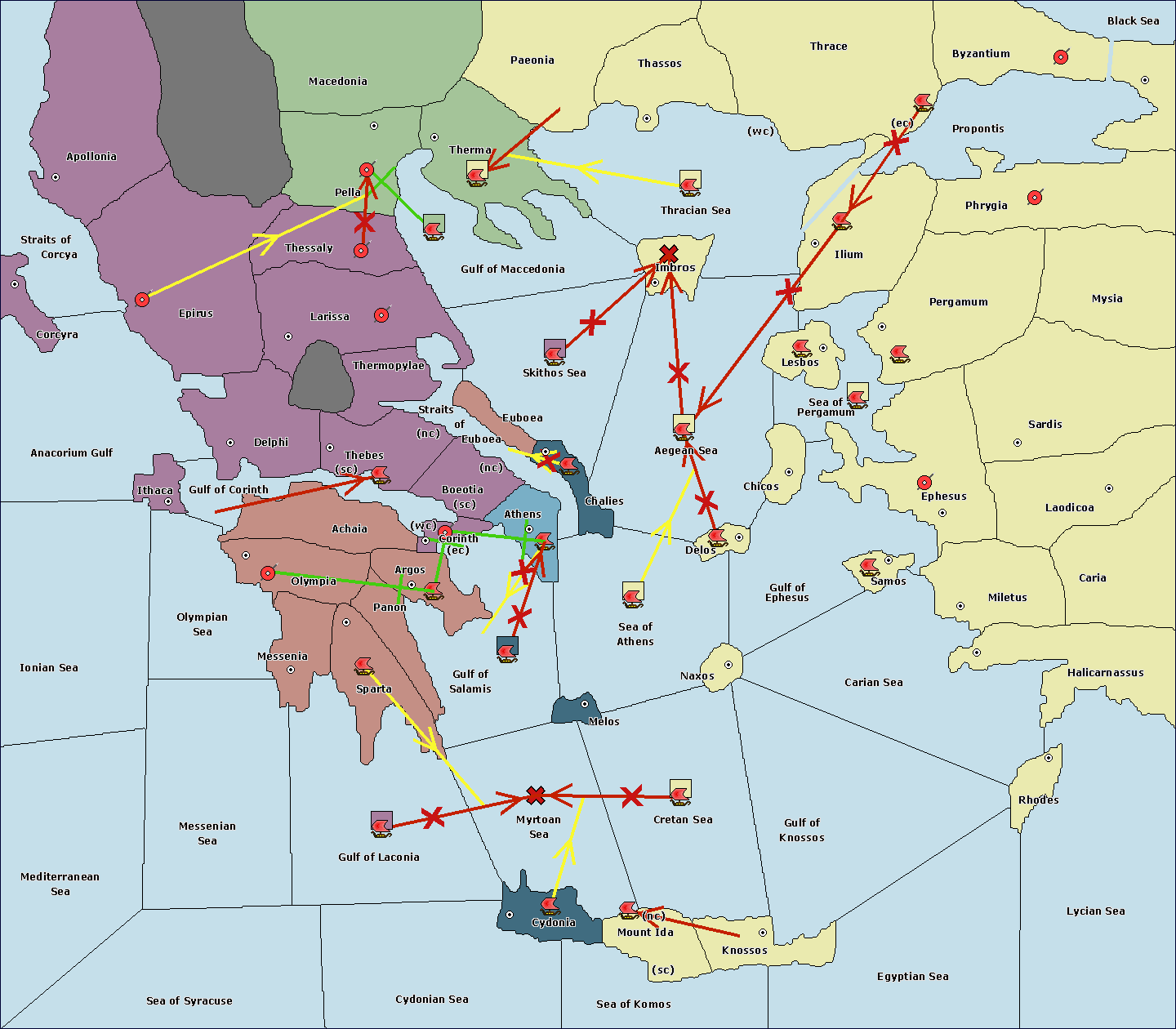 The fleet at Cydonia support move to Myrtoan Sea from Cretan Sea.
