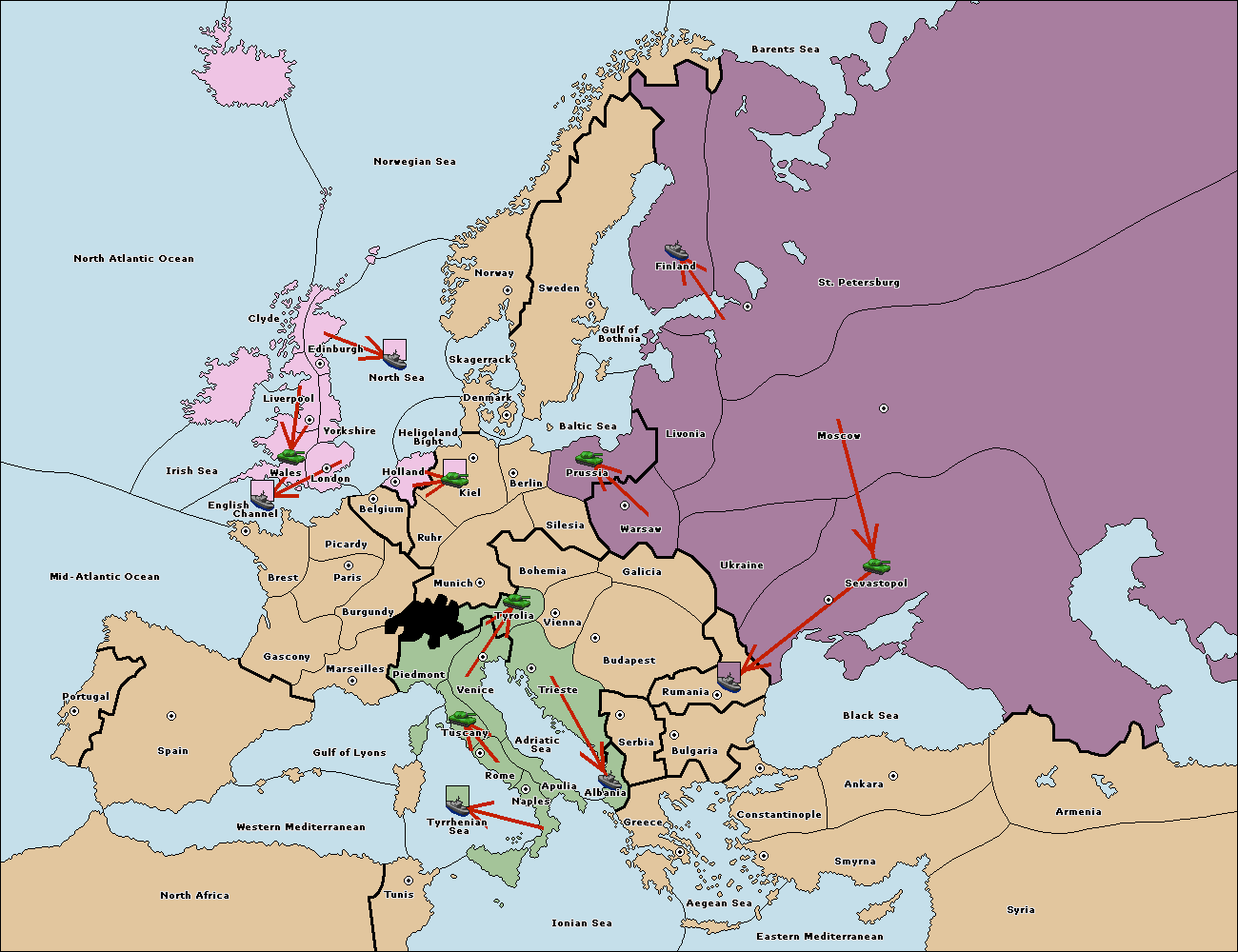 The fleet at St. Petersburg (South Coast) move to Gulf of Bothnia.