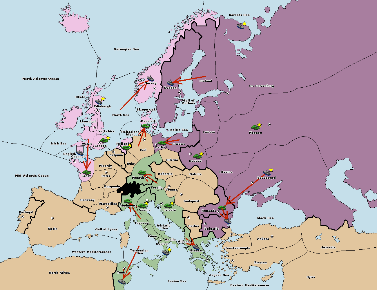 The fleet at Bulgaria (South Coast) move to Constantinople.