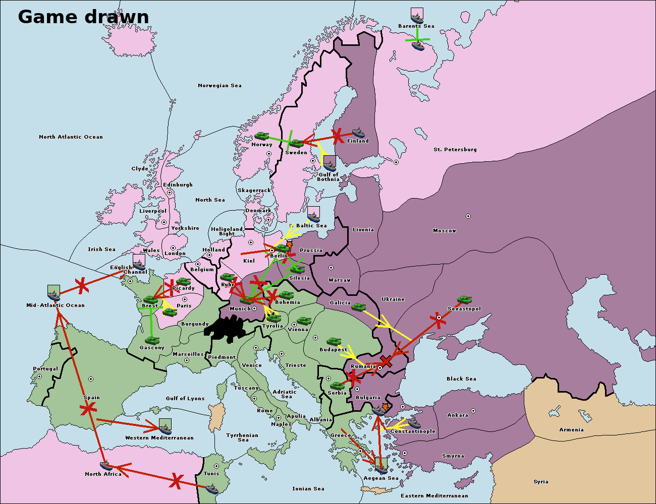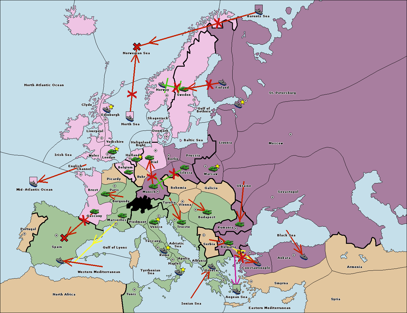 The fleet at Bulgaria (South Coast) retreat to Aegean Sea.