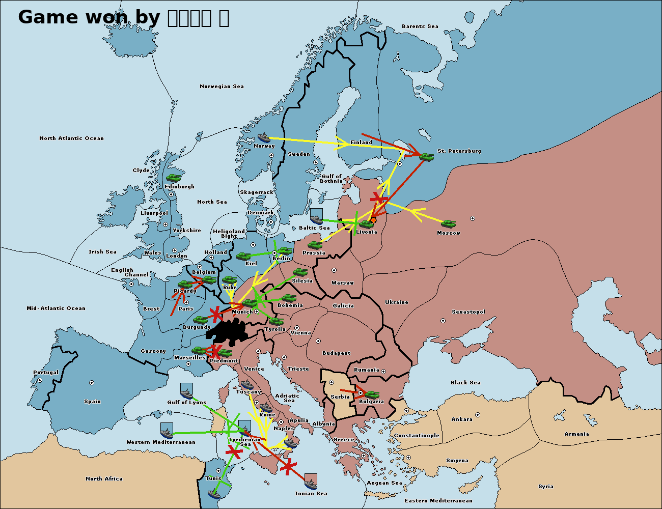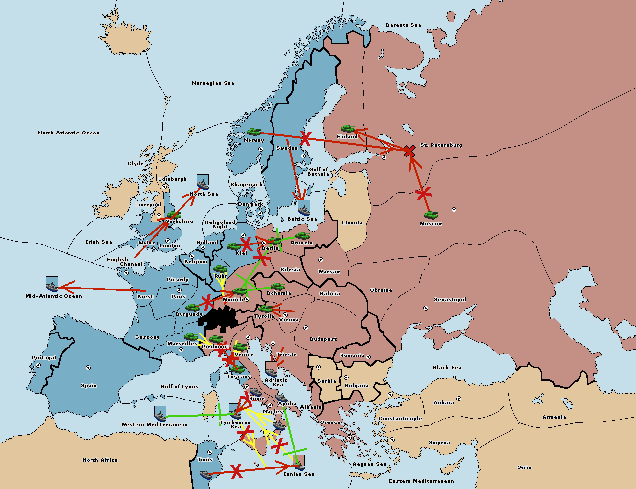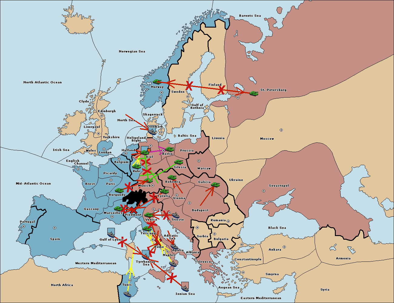 The fleet at Tyrrhenian Sea support hold to Tunis.