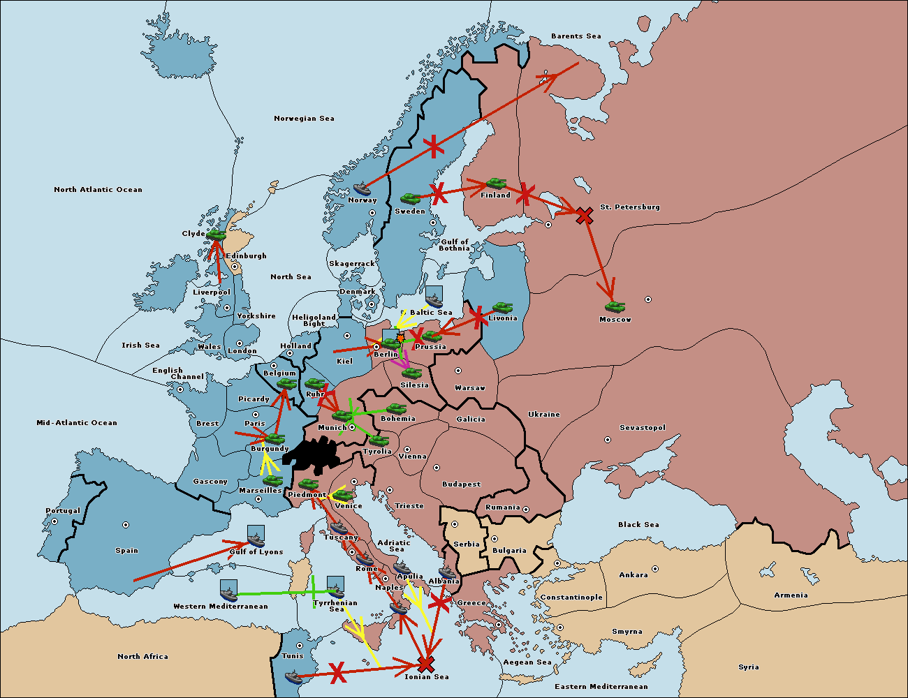 The fleet at Rome support move to Tyrrhenian Sea from Ionian Sea.
