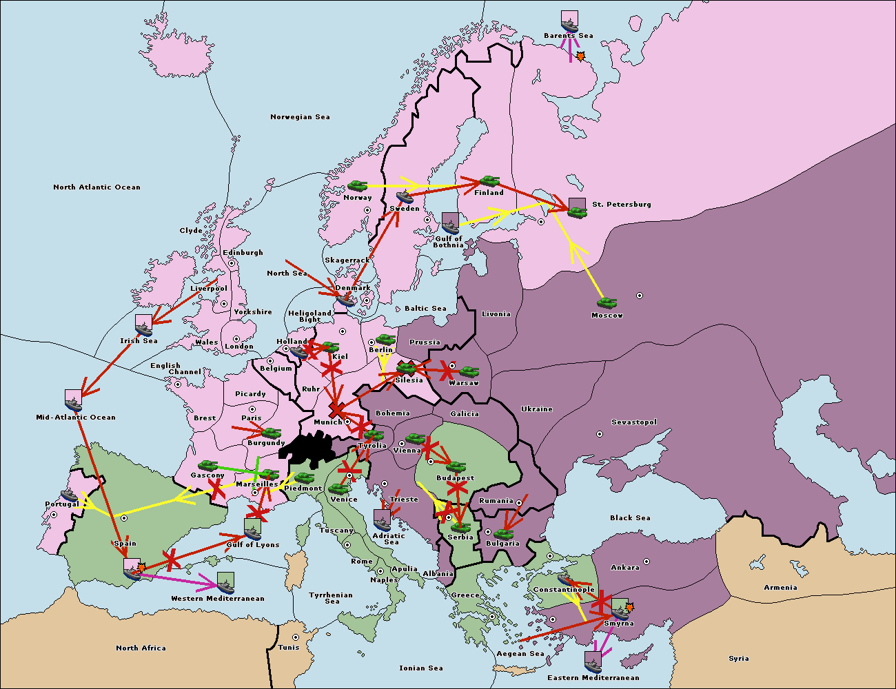 The fleet at Mid-Atlantic Ocean move to Western Mediterranean.