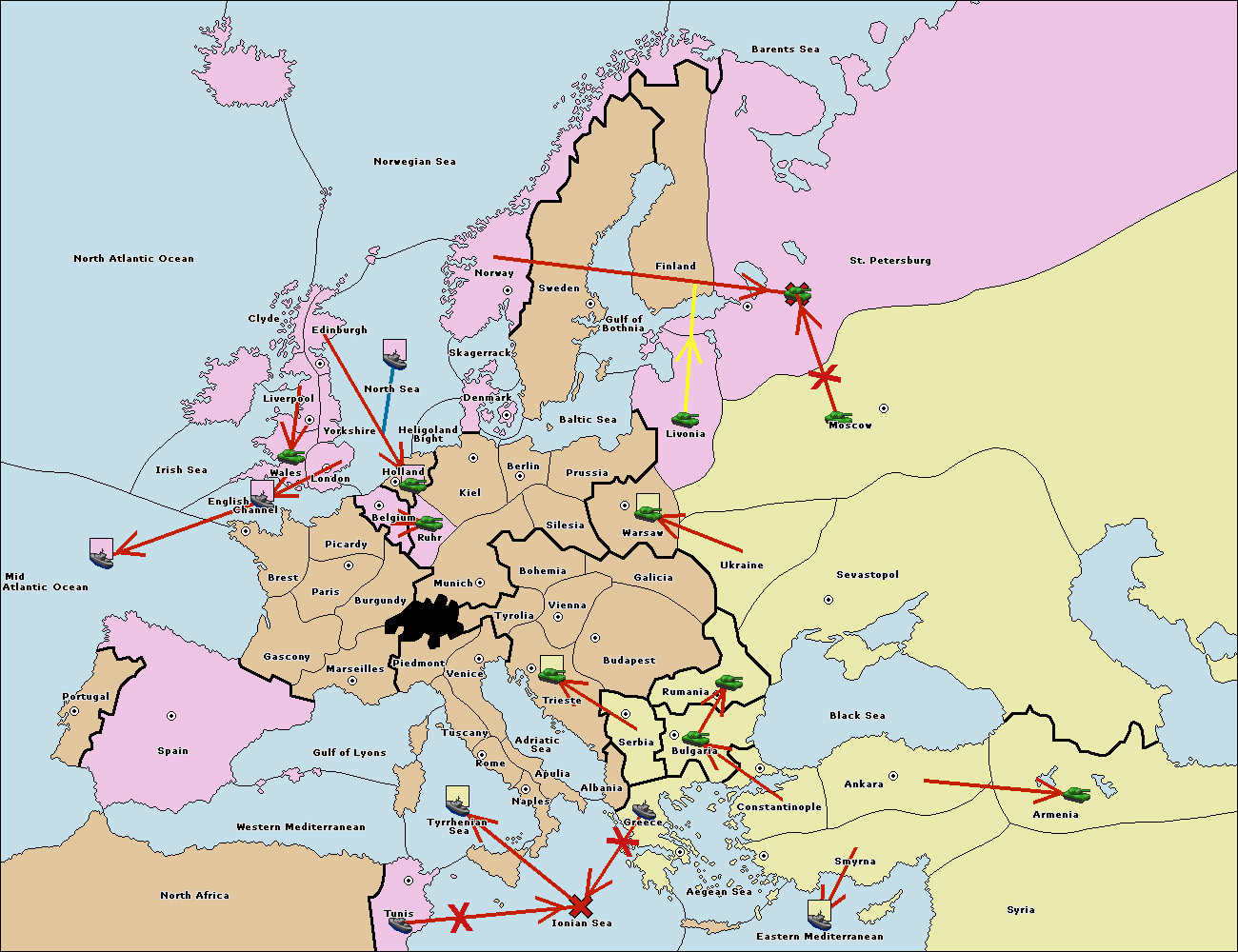The fleet at Bulgaria (South Coast) move to Greece.