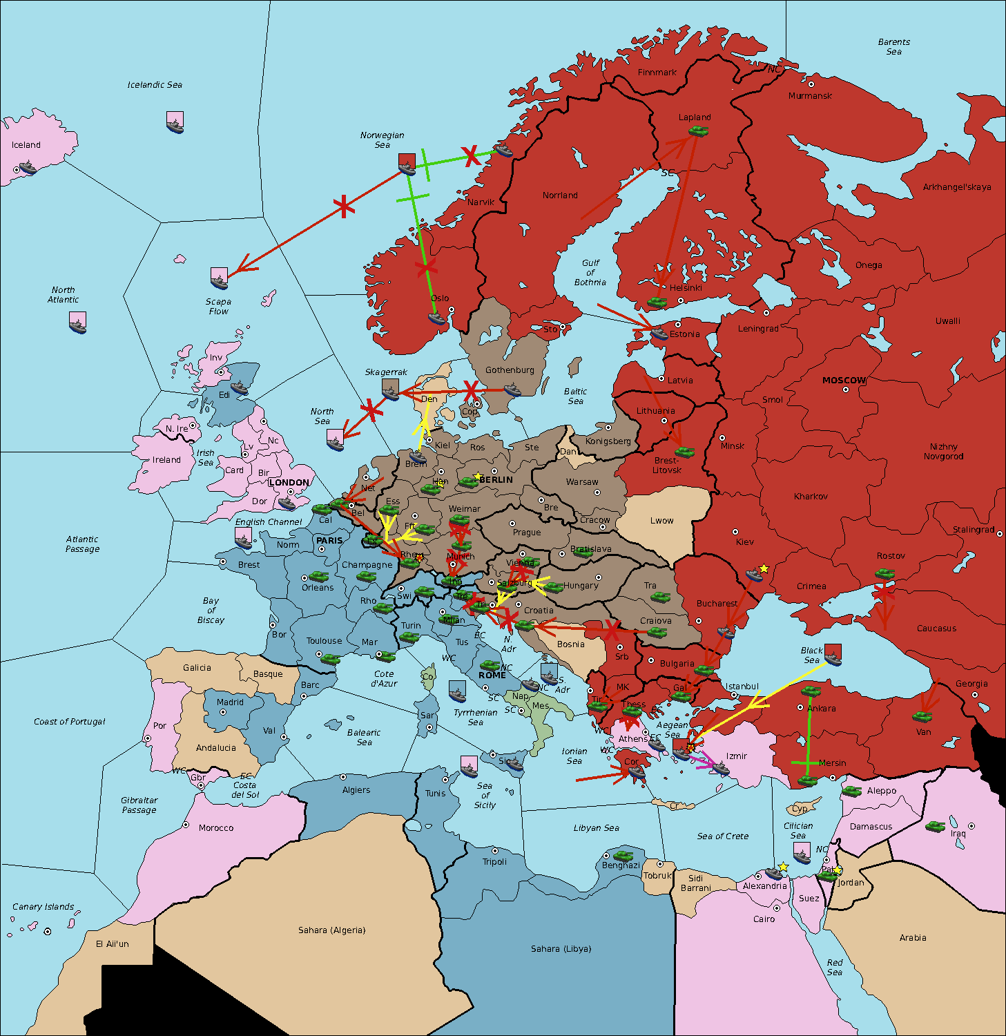 The fleet at Konigsberg move to Baltic Sea.